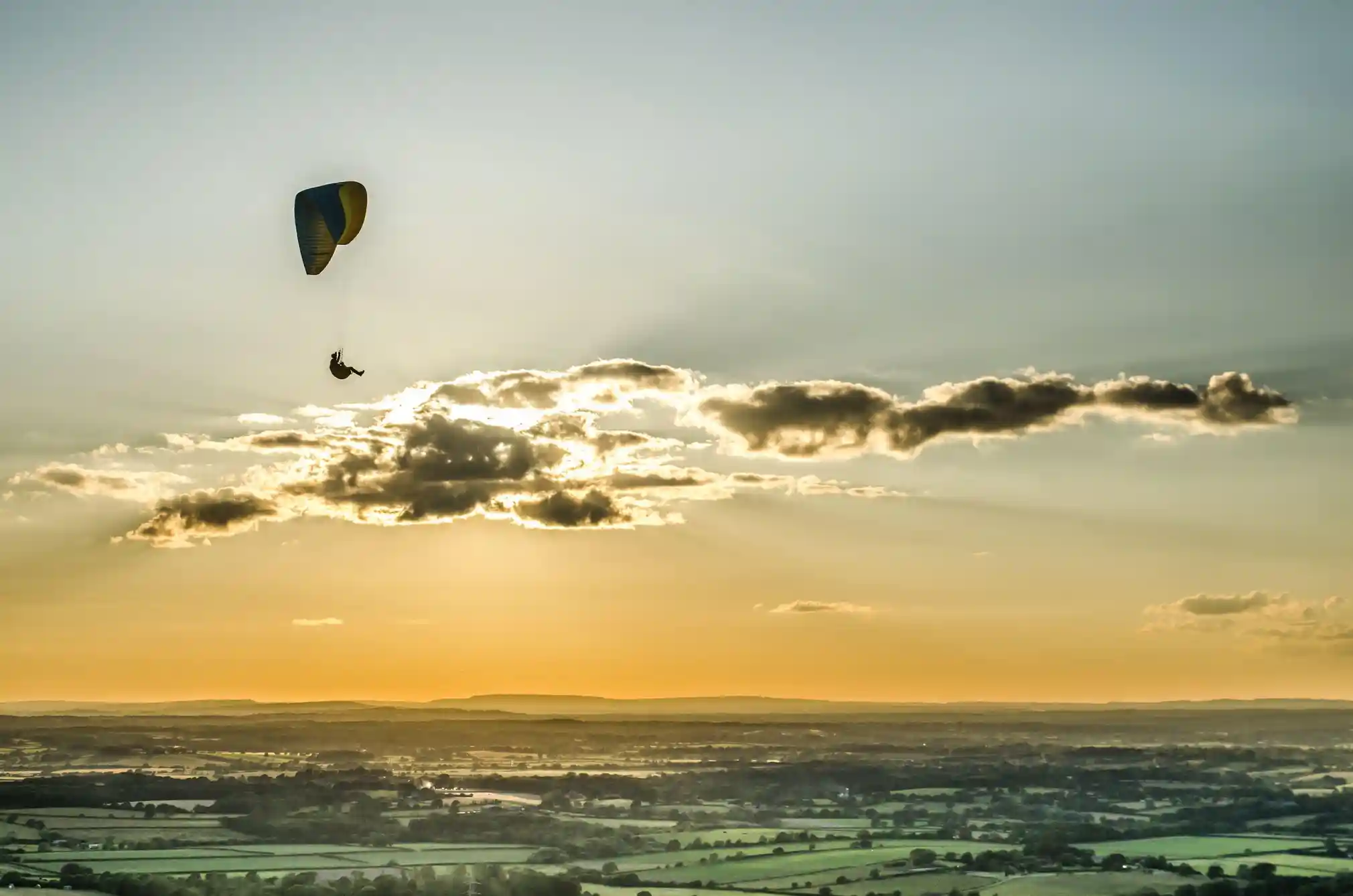 Полеты на параплане на закате в Дьявольской дамбе в Саут-Даунс Фотография: Дэвид Берр/Alamy Live News/Alamy Live News.