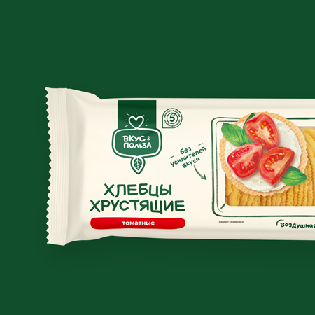 Лаконичное, но ёмкое смысловое название «HleBIO» одновременно сообщает и категорию товара, и намекает на его натуральность. Продуктовое окно в форме кусочка хлеба позволяет потребителю увидеть товар во всей его аппетитной привлекательности.