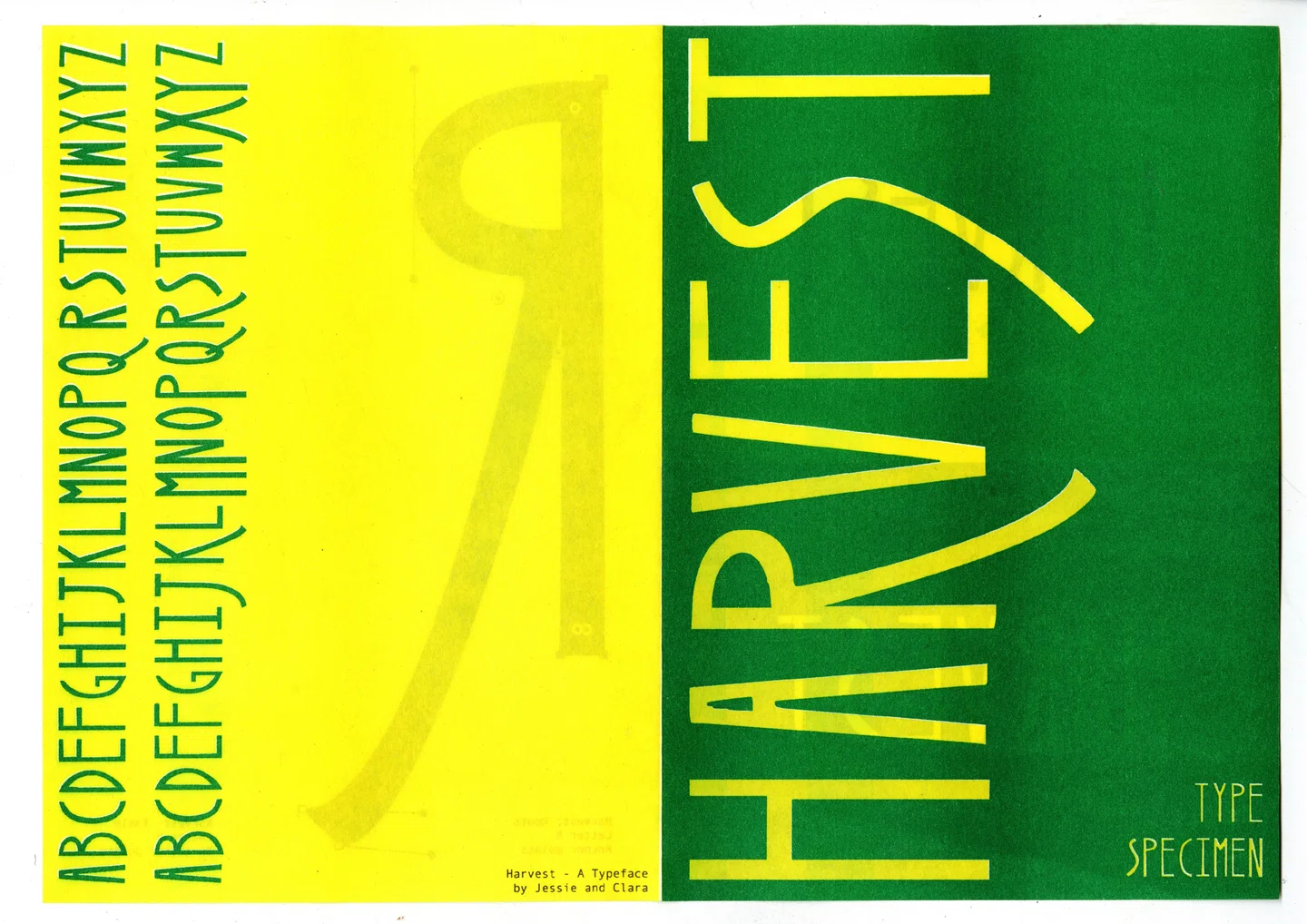 Начав с типографики, Клара и Джесси работали над вырезанными вручную формами букв, прежде чем остановились на нарисованном вручную шрифте Harvest, представленном в двух вариантах: один был вдохновлен органическими формами корней растений, а другой — смелыми ножками стола.