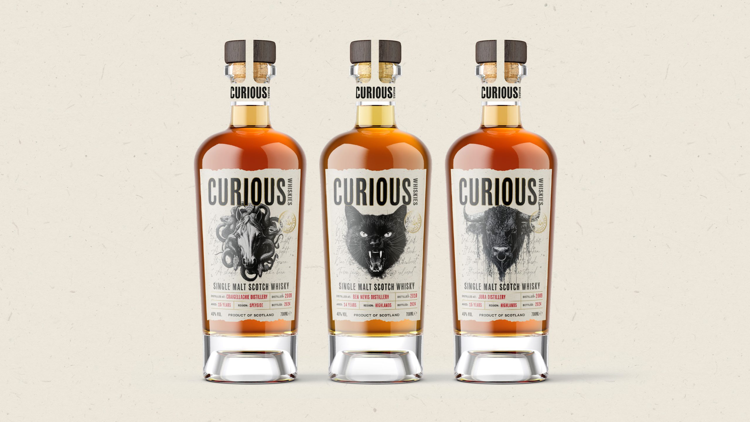 Название «Curious» («Любопытный») идеально отражает суть бренда — это исследование неизвестного, углубление в истории и легенды, определяющие культурное наследие Шотландии. Этот дух любопытства воплощен в упаковке, которая является смелой, динамичной и безапелляционно отличающейся. Каждая этикетка содержит захватывающие иллюстрации мифических существ из шотландского фольклора — от завораживающе красивых келпи до устрашающих кат-ши — выполненные с тщательной детализацией, чтобы перенести потребителей в мир магии и тайн. Дизайн сопровождается поэтическими повествованиями, которые переплетают уникальный характер виски с вдохновившими его легендами, создавая захватывающий опыт для ценителя.