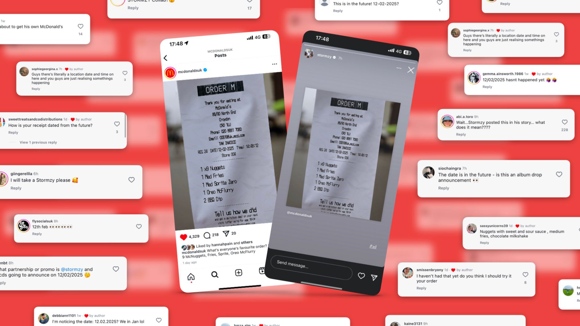McDonald’s запустил кампанию «Закажи как Stormzy», сотрудничая с британским музыкантом Stormzy. Его фирменный заказ включает 9 наггетсов, картофель фри, Sprite, Oreo McFlurry и BBQ соус. В рамках кампании выпущен ролик, где посетители McDonald’s по всей Великобритании заказывают этот набор голосом Stormzy. Также представлены черно-белые фотографии артиста, наслаждающегося своим заказом, и ограниченная серия мерча, доступная через приложение MyMcDonald’s Rewards.