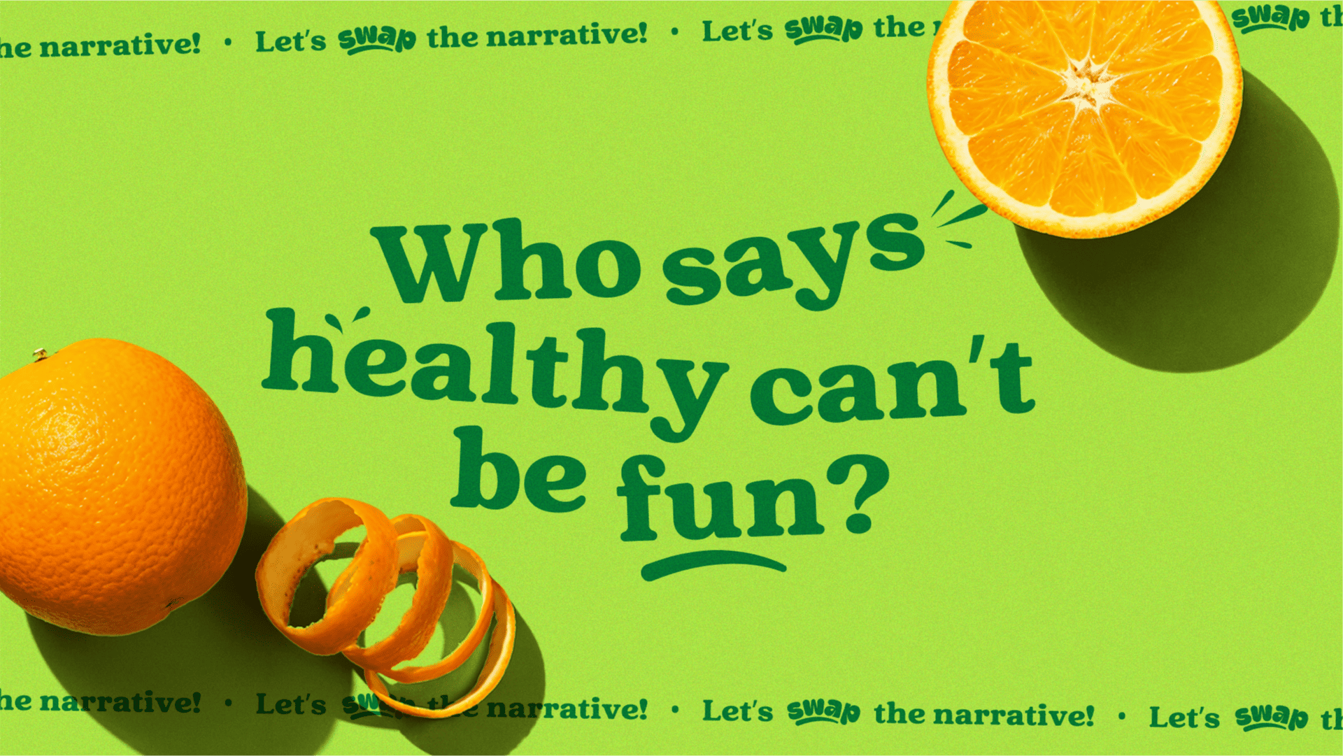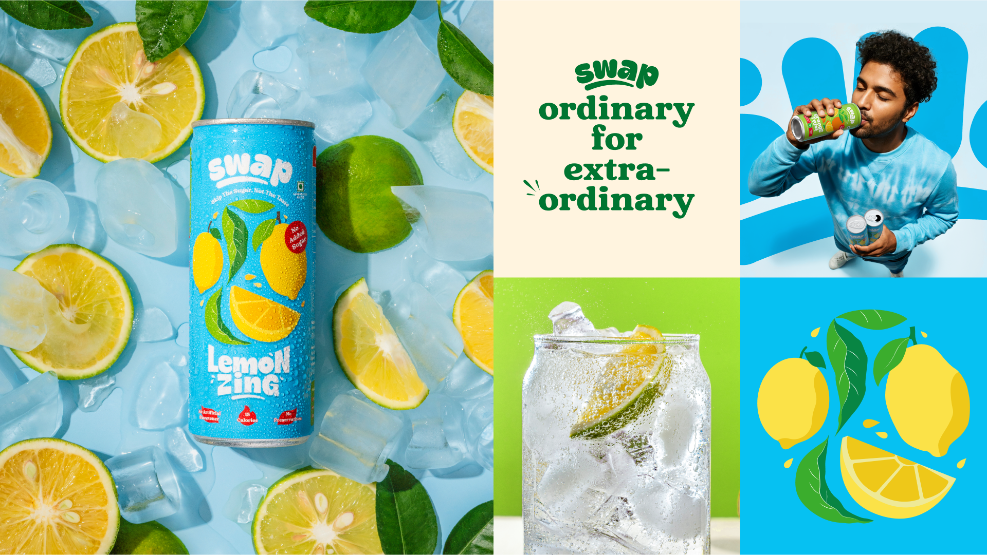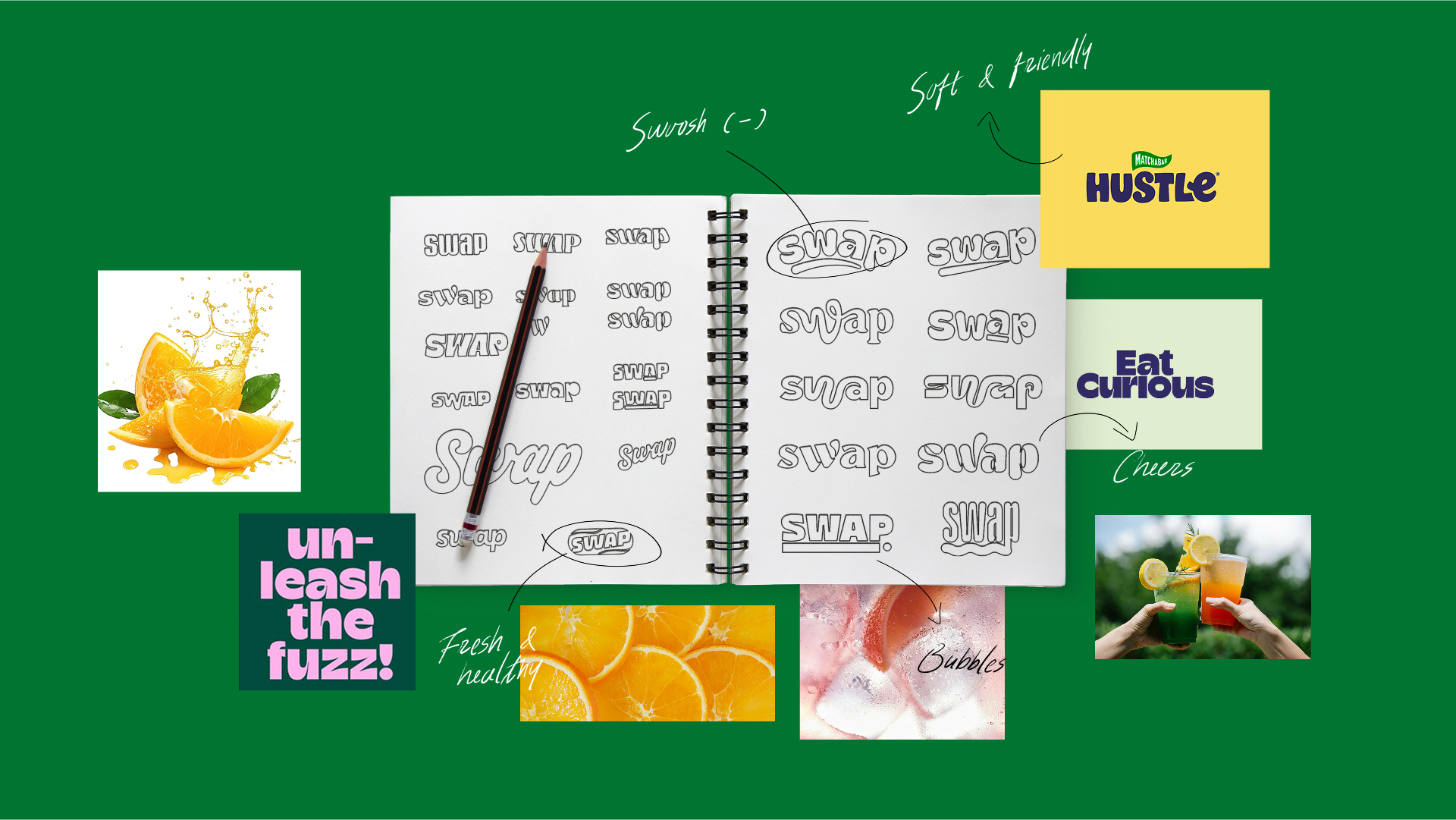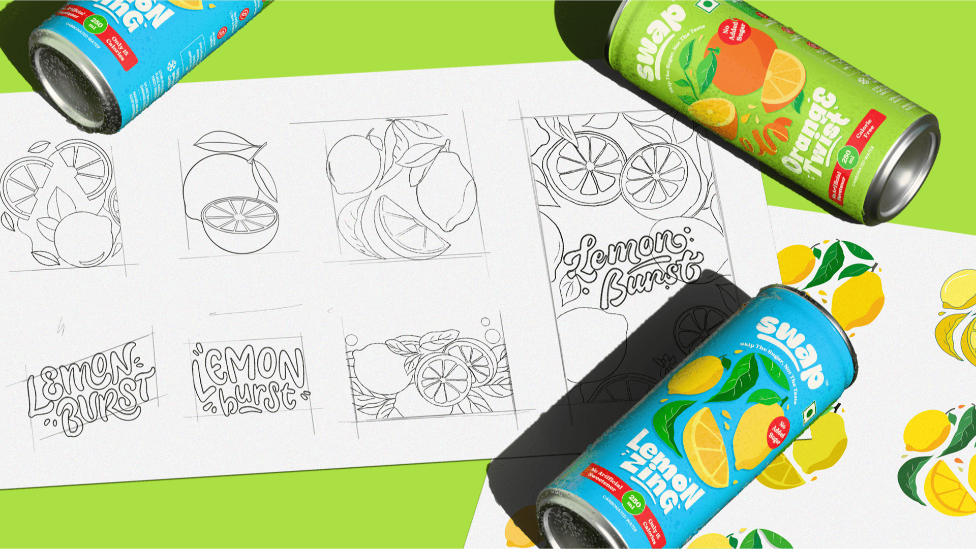 Яркая, выразительная упаковка гарантирует сильное присутствие на полке, сразу транслируя чистый состав, низкое содержание сахара и легкость без чувства вины. Типографика и иллюстрации подчеркивают свежий, авантюрный и ориентированный на здоровье характер бренда, позволяя SWAP выделяться среди конкурентов, которые чрезмерно искусственны. Каждое дизайнерское решение — от динамичного, пузырькового логотипа до насыщенной цветовой палитры — отражает главную миссию бренда: заменяй сахар, но не вкус.