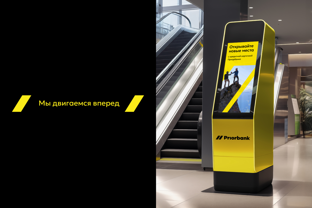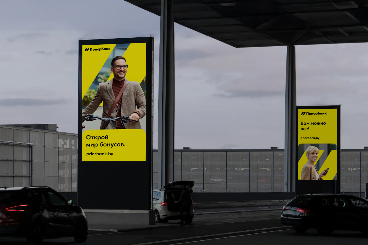 Выводы, сделанные в ходе исследований, помогли найти графическое решение, которое сохранило преемственность и подчеркнуло движение «Приорбанка» вперед. А также создать вербальную коммуникацию для успешного общения с аудиторией.