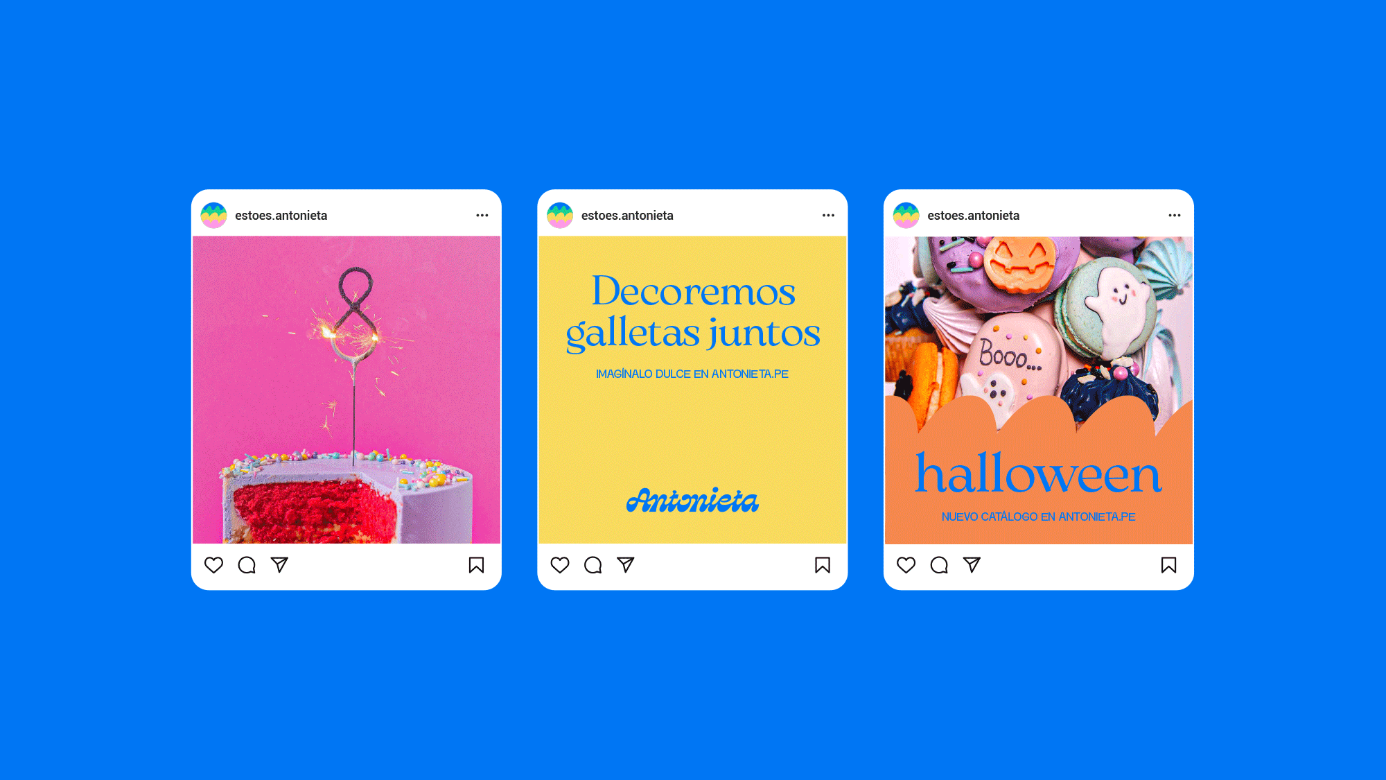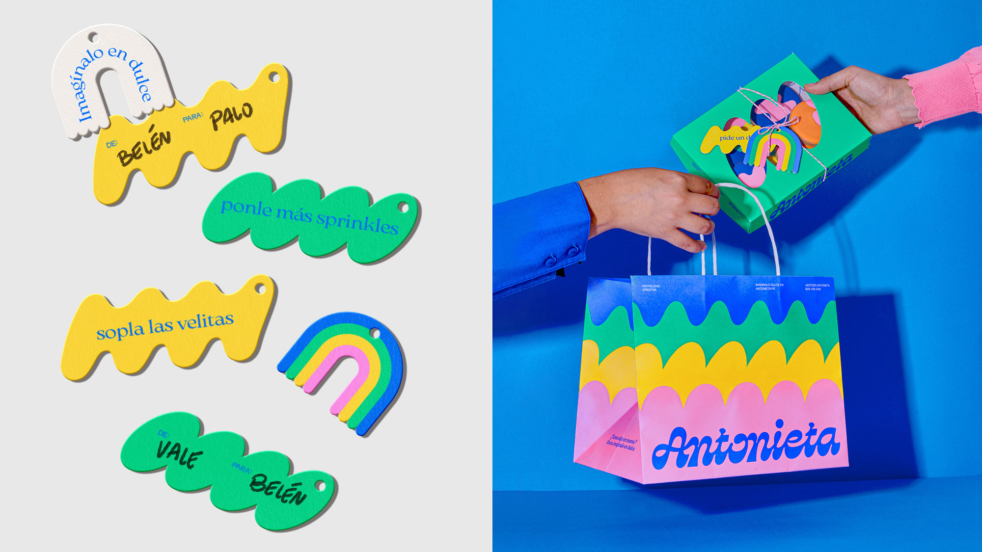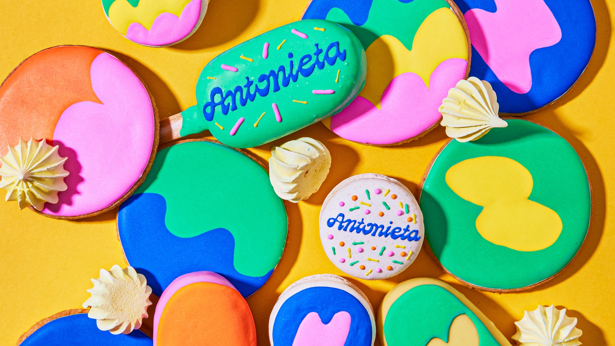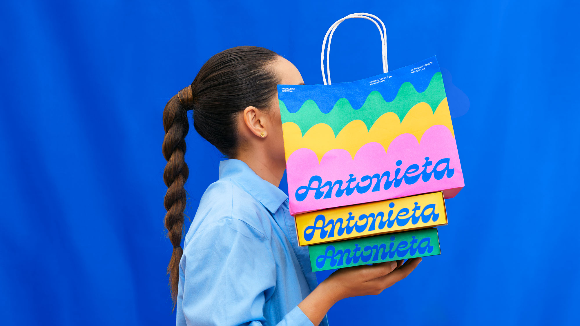 Antonieta — креативный кондитерский бренд, который спустя семь лет решил кардинально обновить свою визуальную айдентику, сделав её более мощной и весёлой. Вдохновившись текстурами кремов и формами кондитерских мешков, команда ESTUDIO PALOMA разработала леттеринг с мягкими и волнистыми линиями. Также была создана графическая система, органично сочетающаяся с брендом и включающая уникальные, запоминающиеся элементы, навеянные сладким миром.