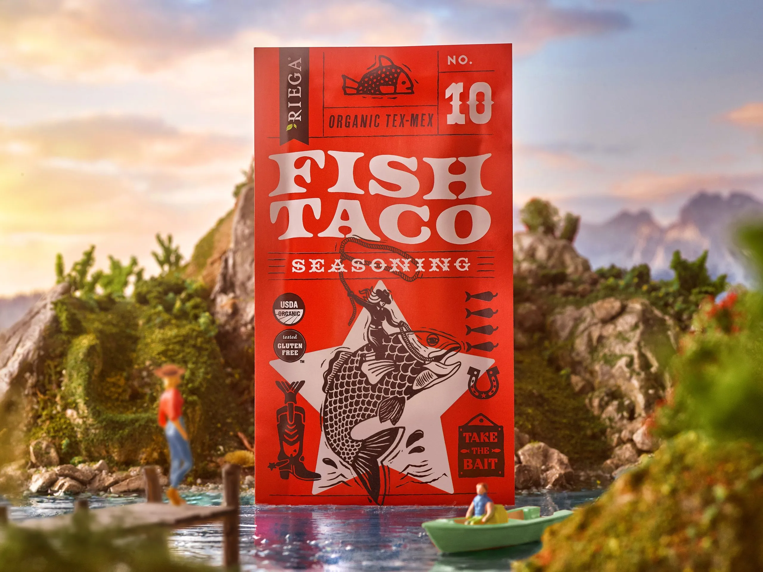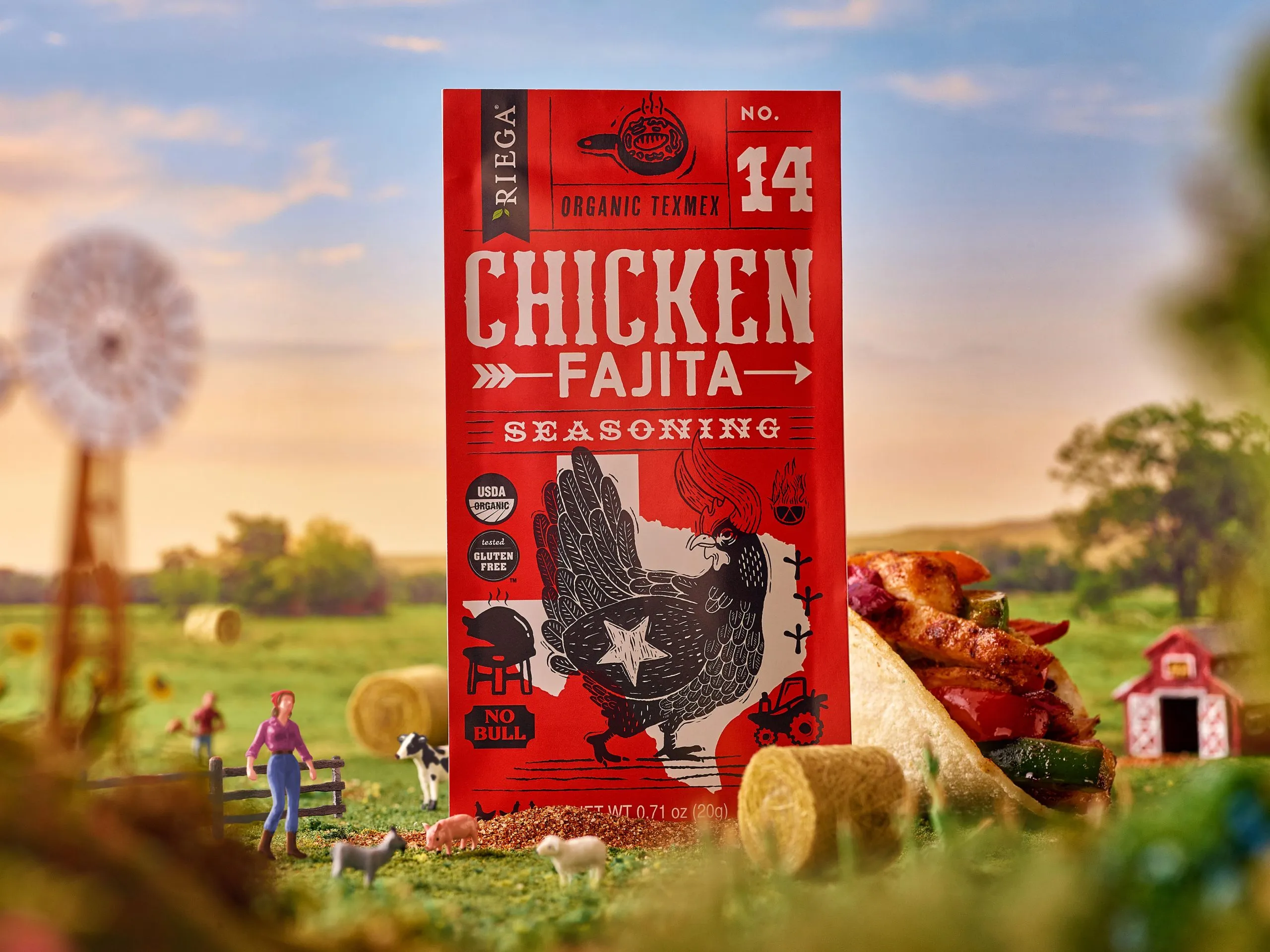Riega Foods, одна из ведущих компаний по производству специй в США, обратилась в Whiskey Design с задачей обновить дизайн линейки органических приправ в стиле TEX-MEX. Эти пакетики используются для приготовления вкуснейших тако, фахитас и гуакамоле.
