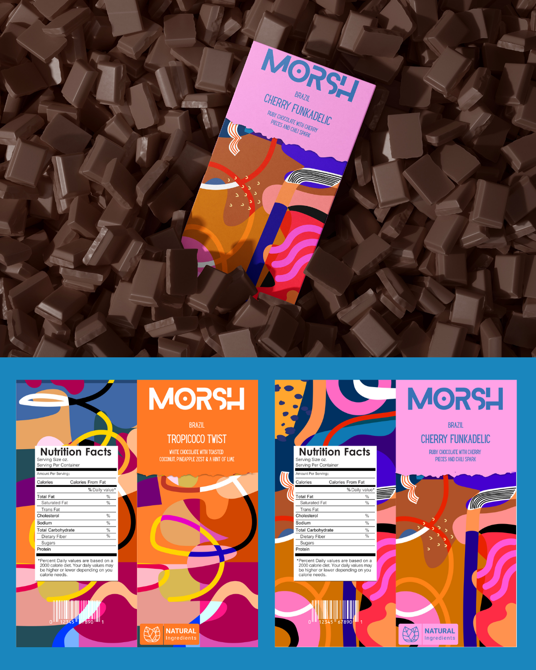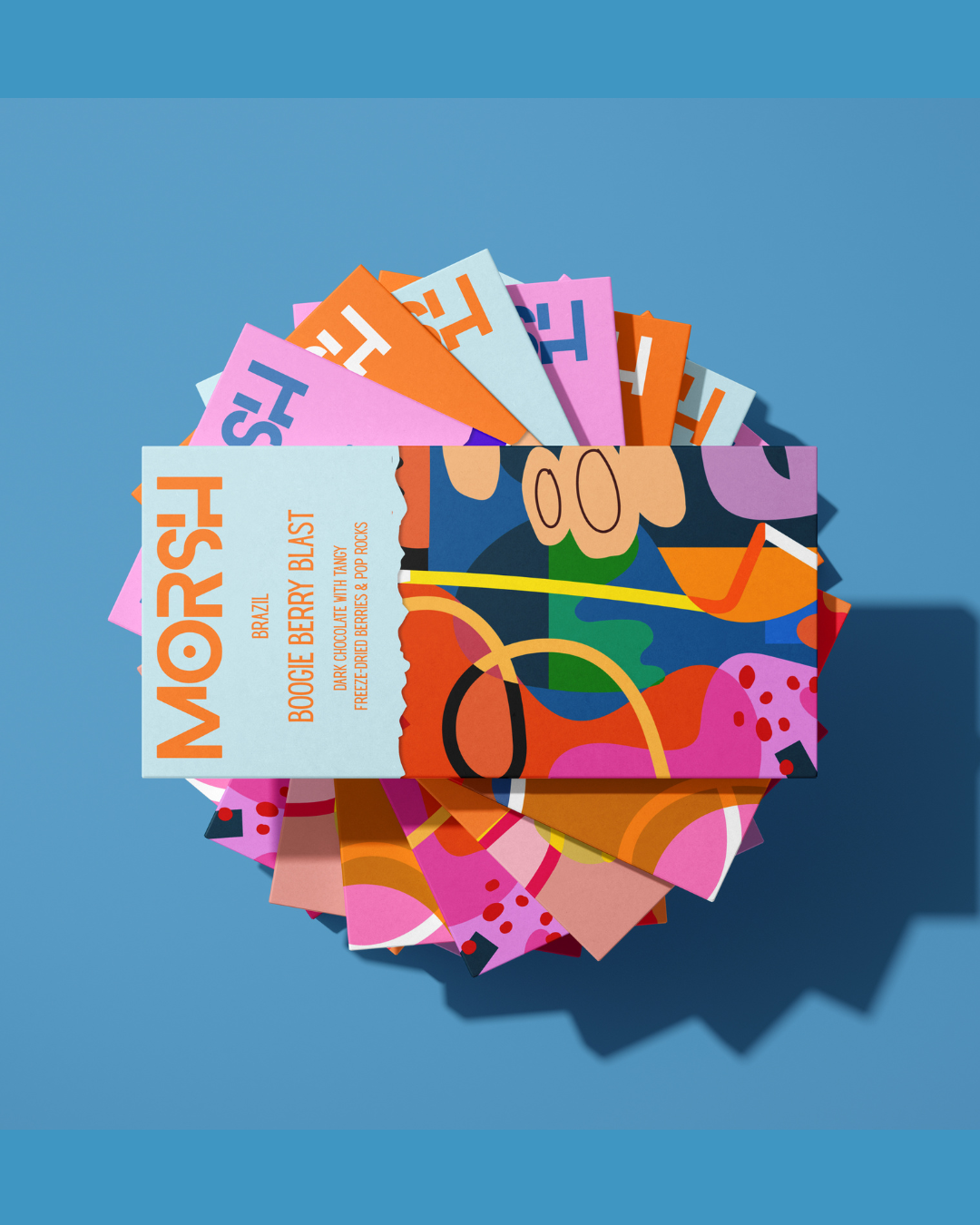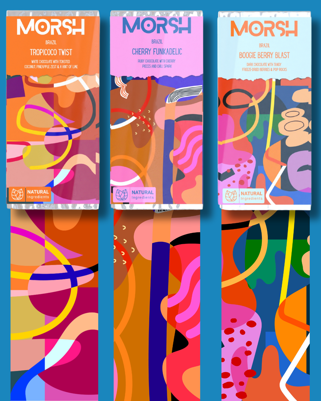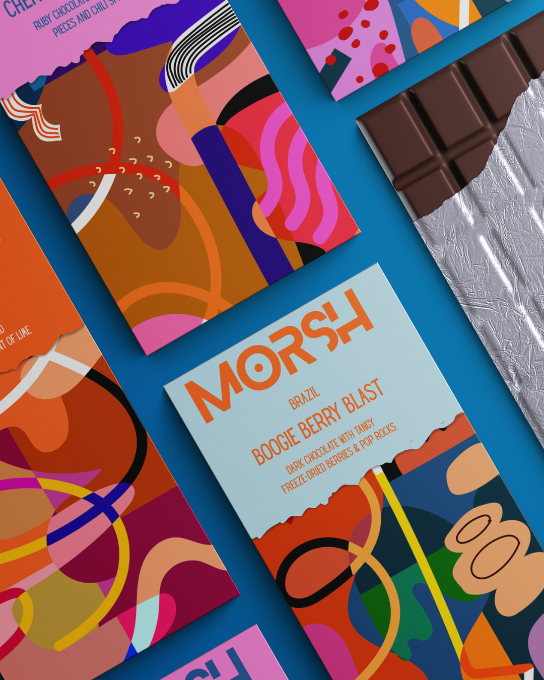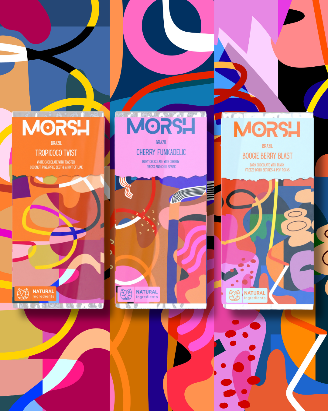 Каждая плитка MORSH рассматривается как визуальный носитель истории: дизайн продукта призван вовлекать потребителя ещё до первого контакта с содержимым. Такое внимание к упаковке отражает философию бренда, согласно которой внешний облик должен вызывать не меньшее желание, чем сам вкус.