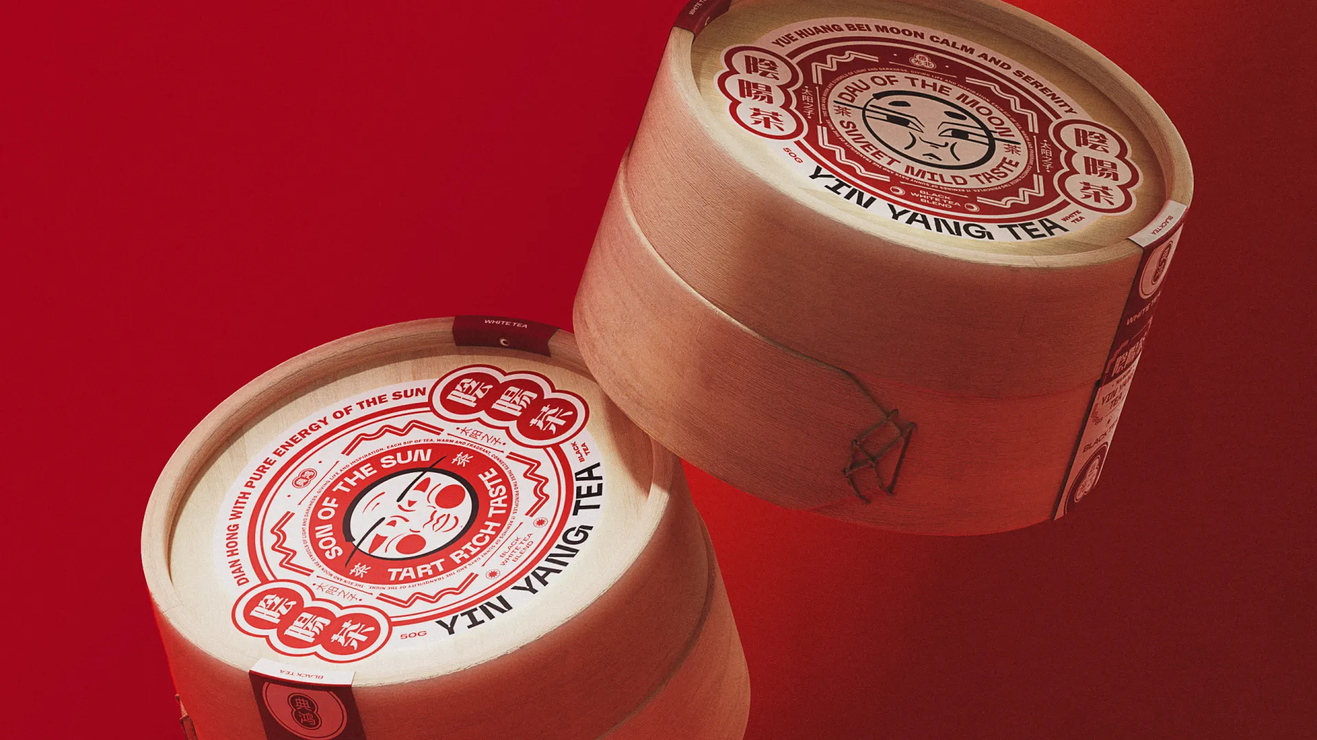 Дизайн явно и эффективно передает идею дуальности и гармонии, заложенную в названии «Инь-Ян» и описании чая (сочетание нежного белого и насыщенного красного). Использование двух отдельных, но визуально связанных упаковок для каждого вида чая является сильным концептуальным решением.