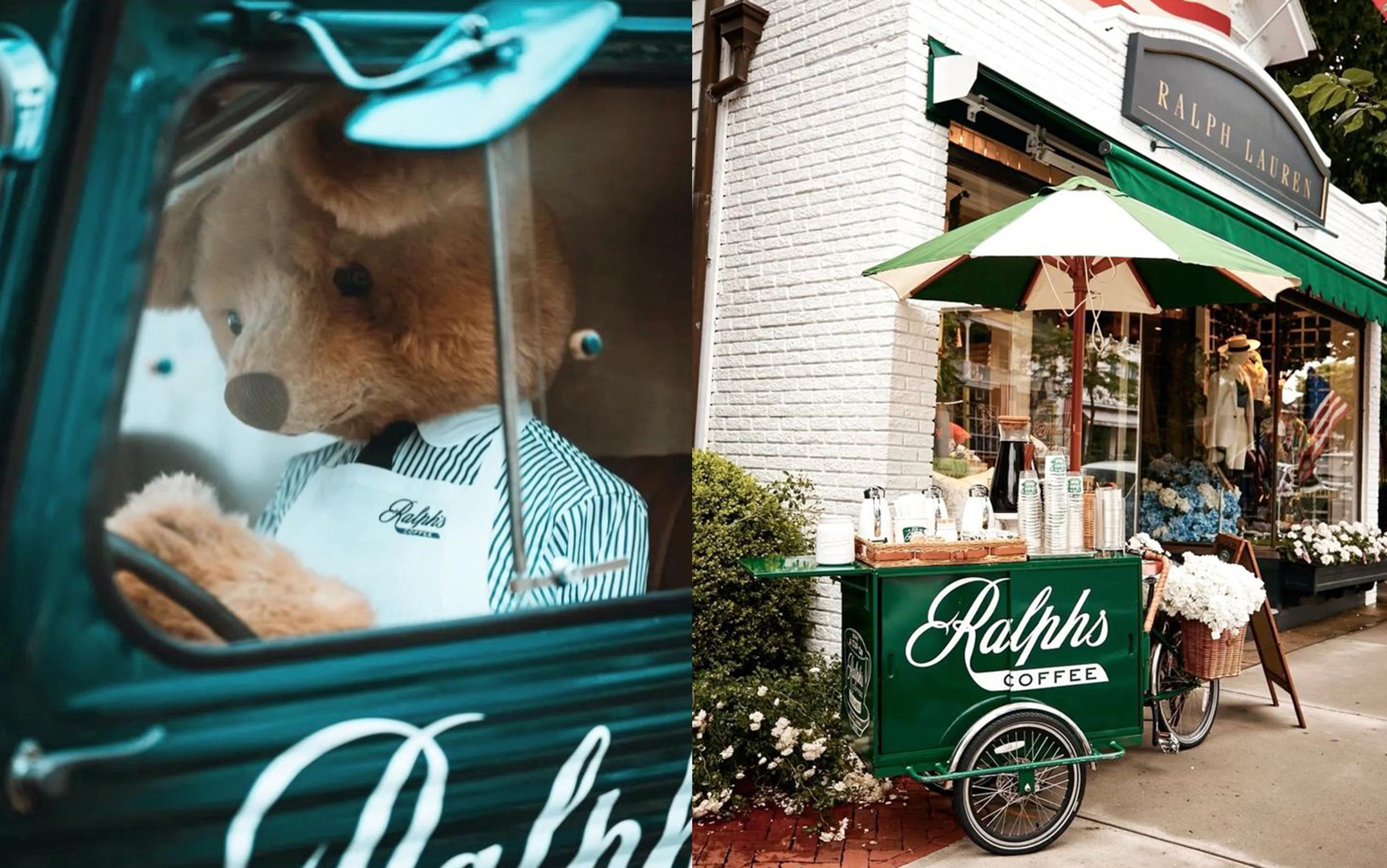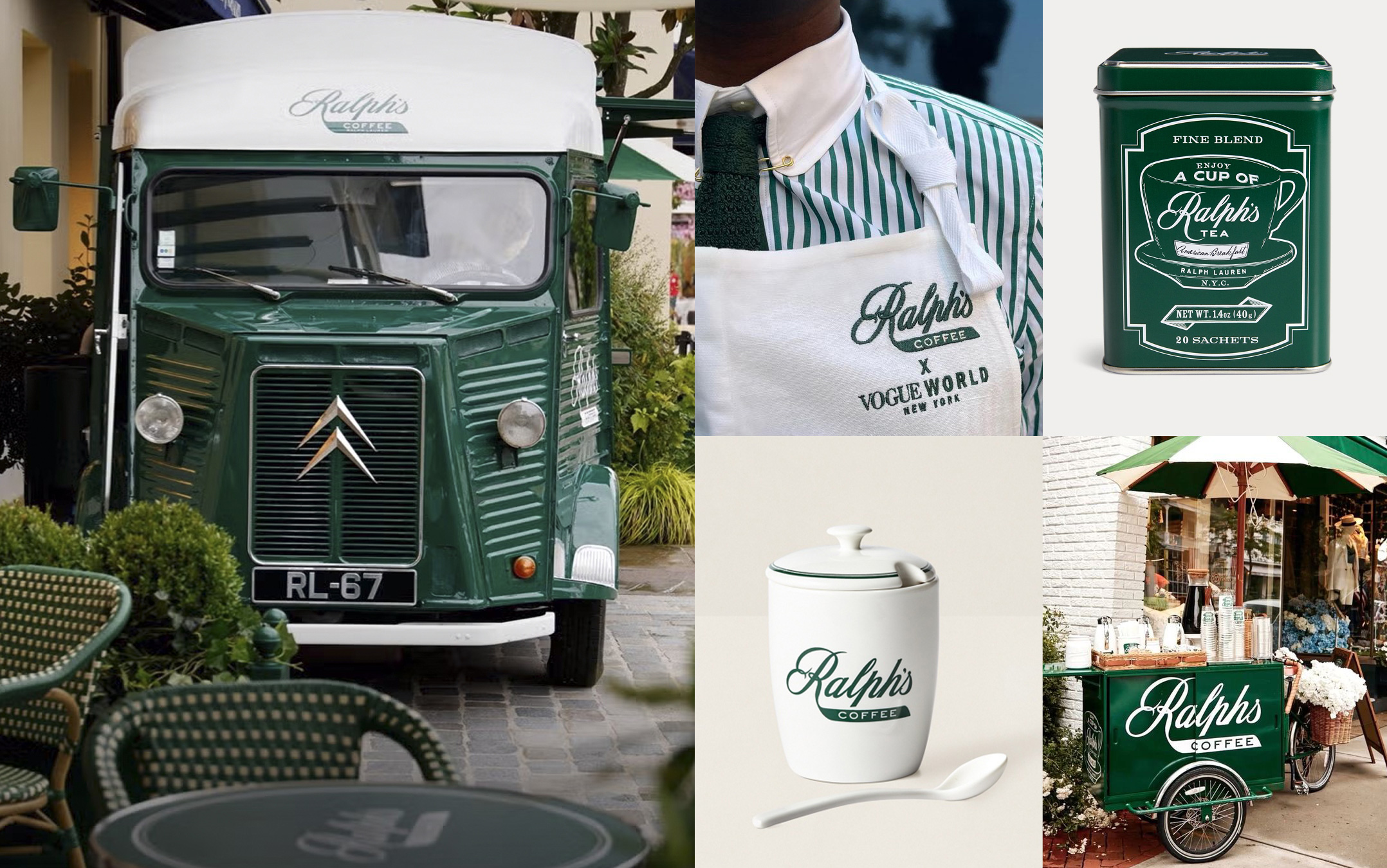 Ralph’s Coffee — это не только логотип и упаковка. Это визуальный нарратив, растянутый по всем точкам контакта. От форменной одежды бариста — с зелёными галстуками и булавками на воротниках, до оформленных вручную велосипедов-кофейнь с эмалированными табличками. Всё это говорит: бренд контролирует каждую деталь, каждую линию и каждую текстуру.