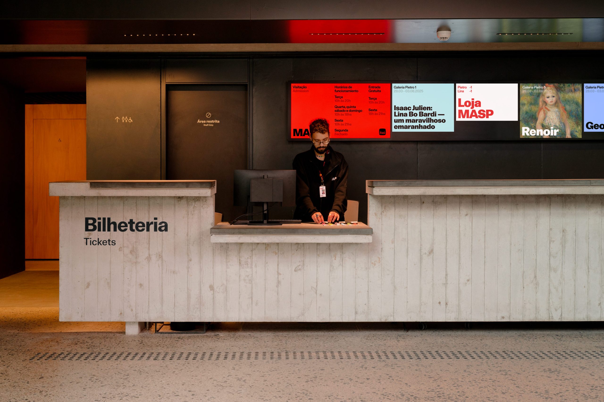 Визуальный стиль вдохновлён модернистским наследием Бразилии и архитектурой Лины Бо Барди — ярким фасадом и бесстенной экспозицией на мольбертах. Эти принципы нашли отражение и в оформлении нового крыла музея, где залы открываются сразу при входе, без перегородок.