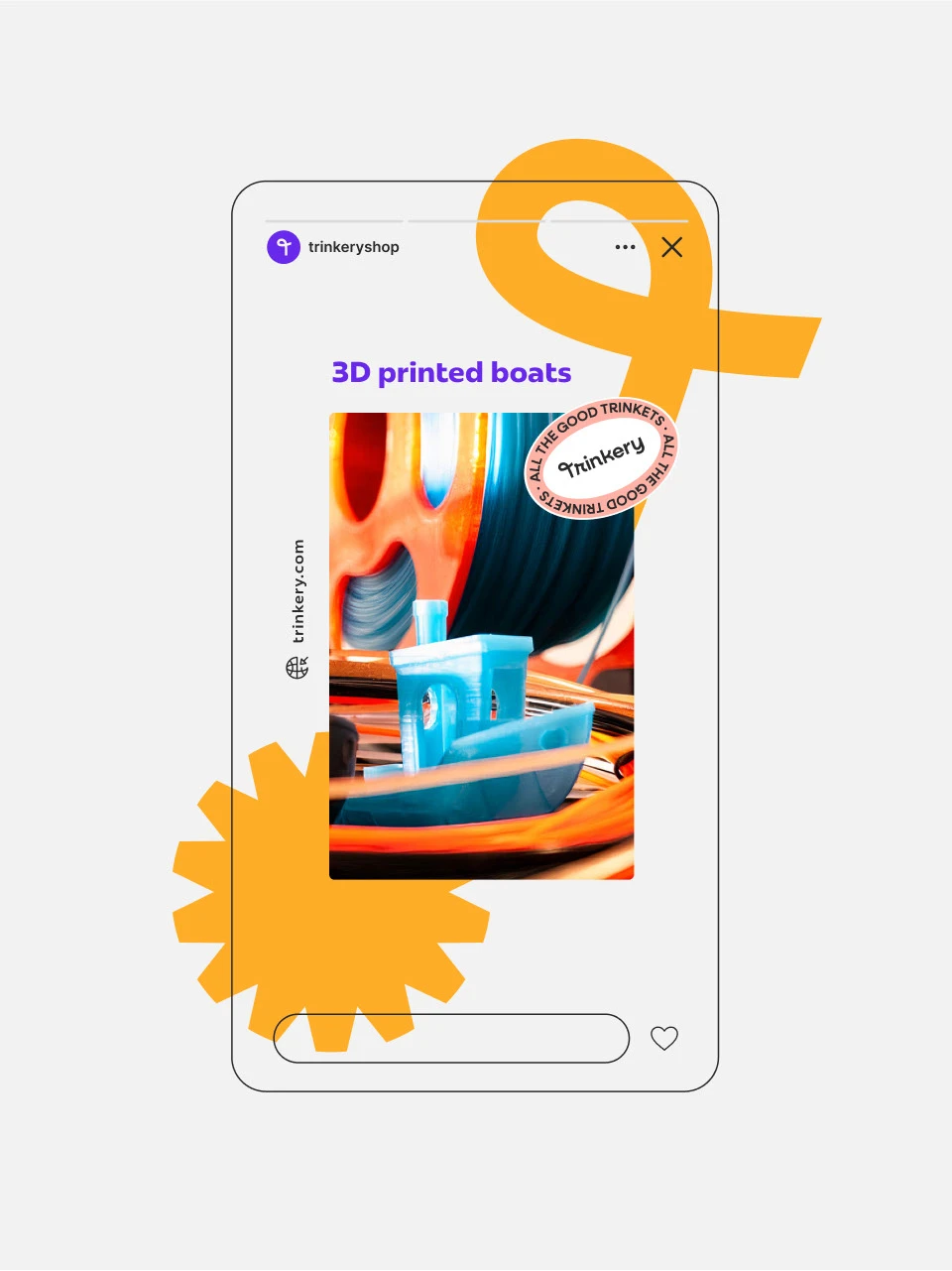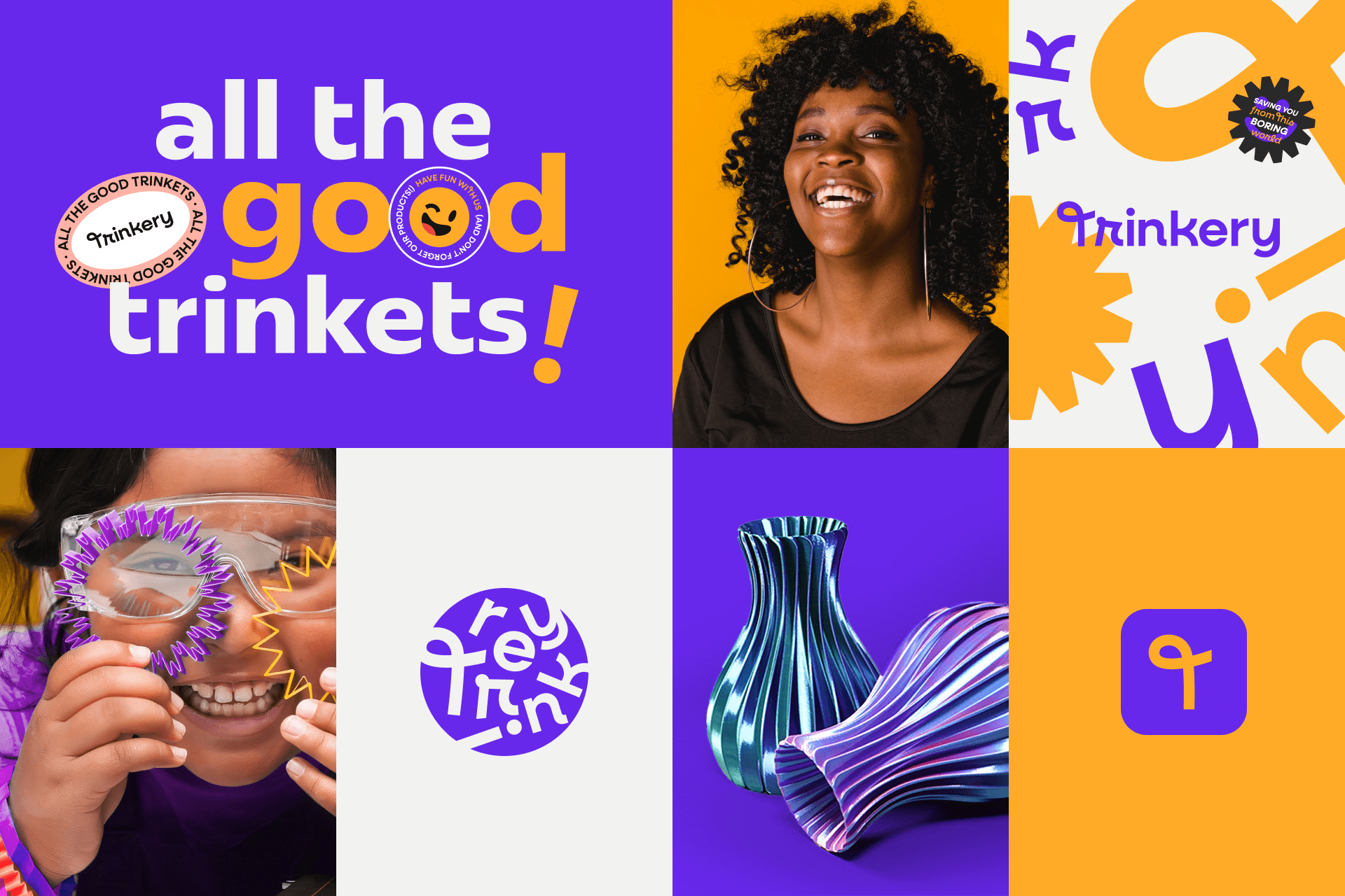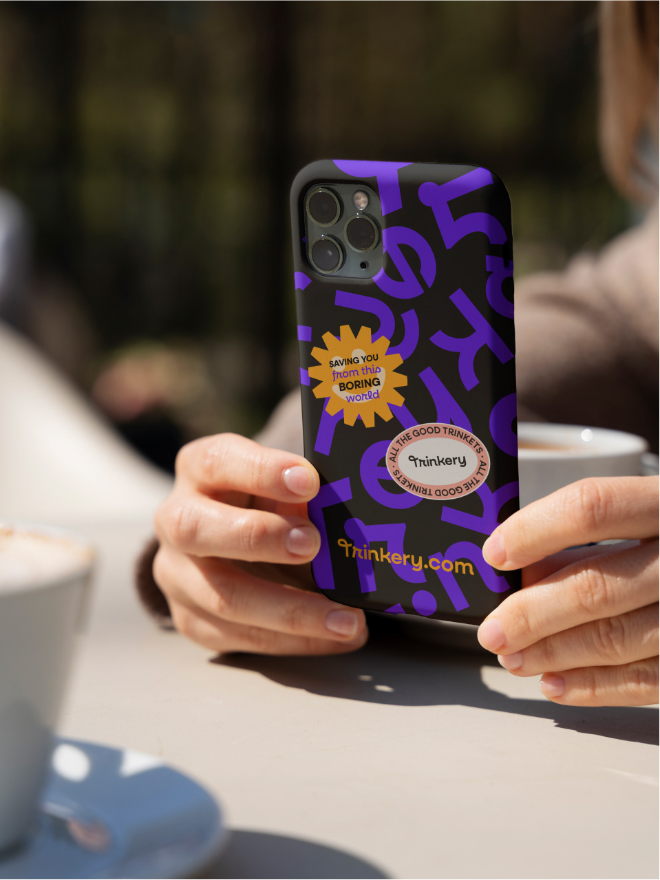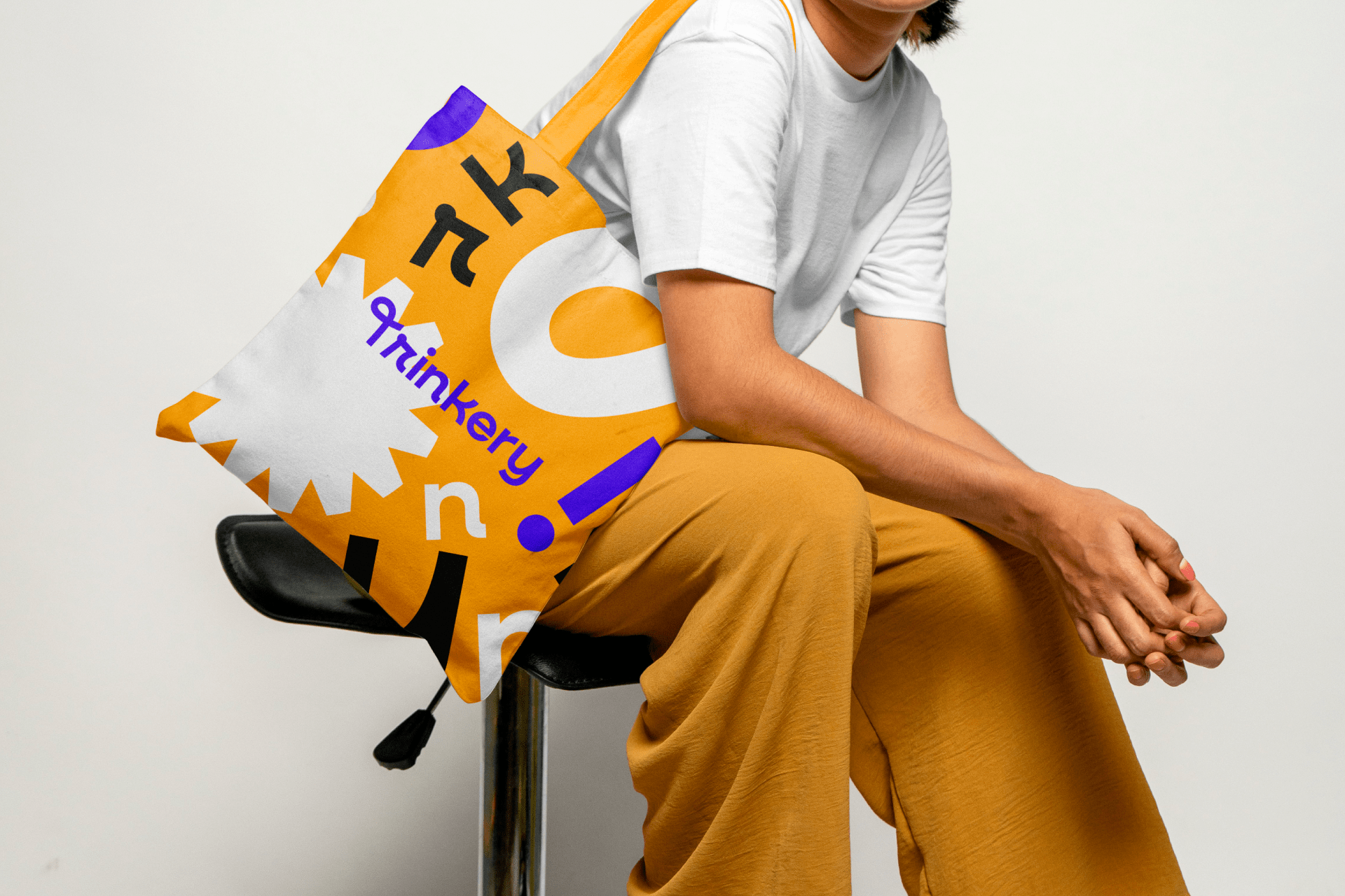 Голос бренда: Непринуждённый, дружелюбный и увлечённый. Язык простой и понятный, создающий атмосферу лёгкости и вовлечения. Trinkery стремится говорить весело и увлекательно, отражая свою суть — бренд уникальных, персонализированных и чуть-чуть беззаботных продуктов.
