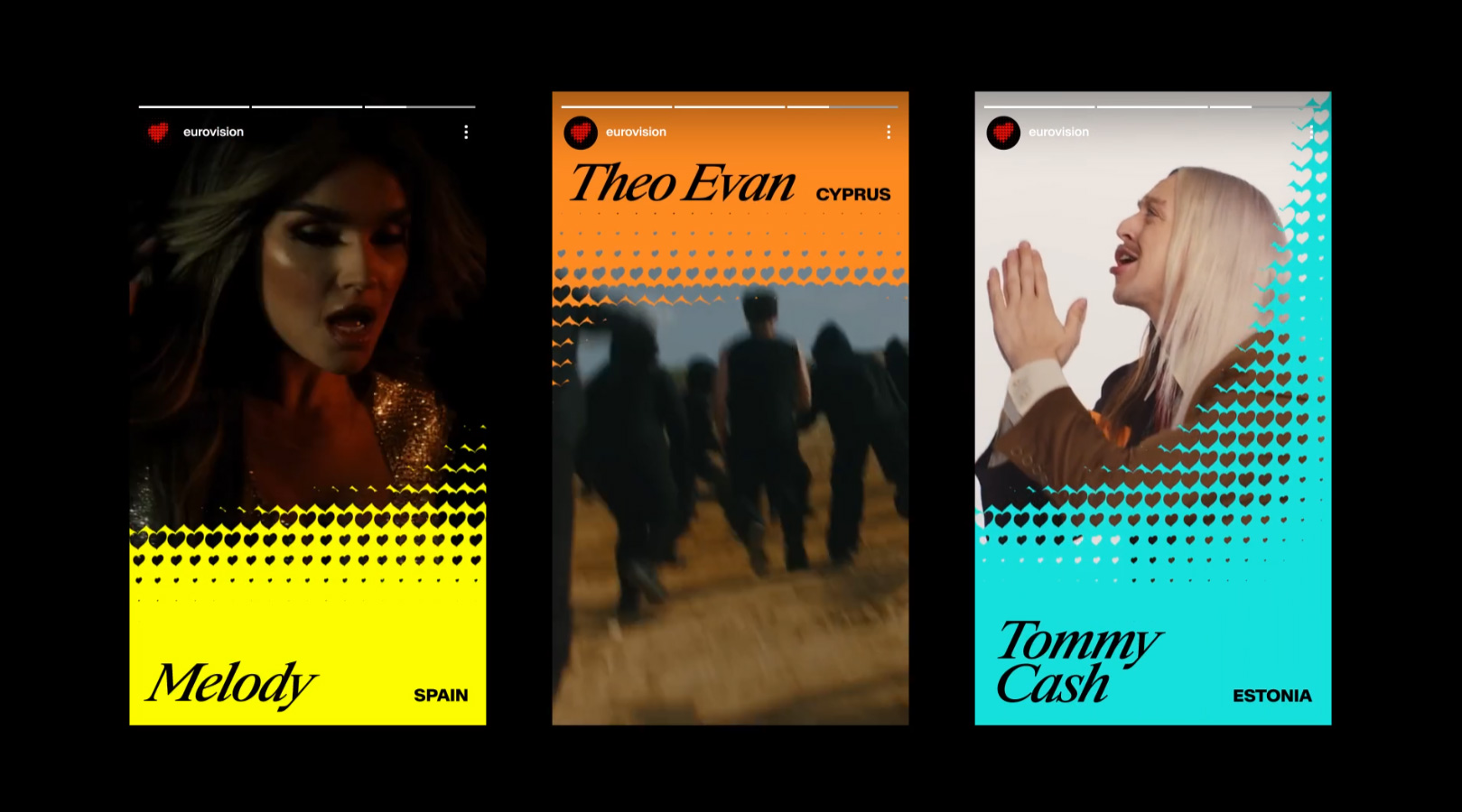 В переработанном виде сетка трансформировалась в систему из сердец — ключевой символики бренда Eurovision. Эти сердечные модули станут основой для паттернов в духе полутоновой печати, которые будут использоваться в графике флагов, видеофрагментов и типографики.
