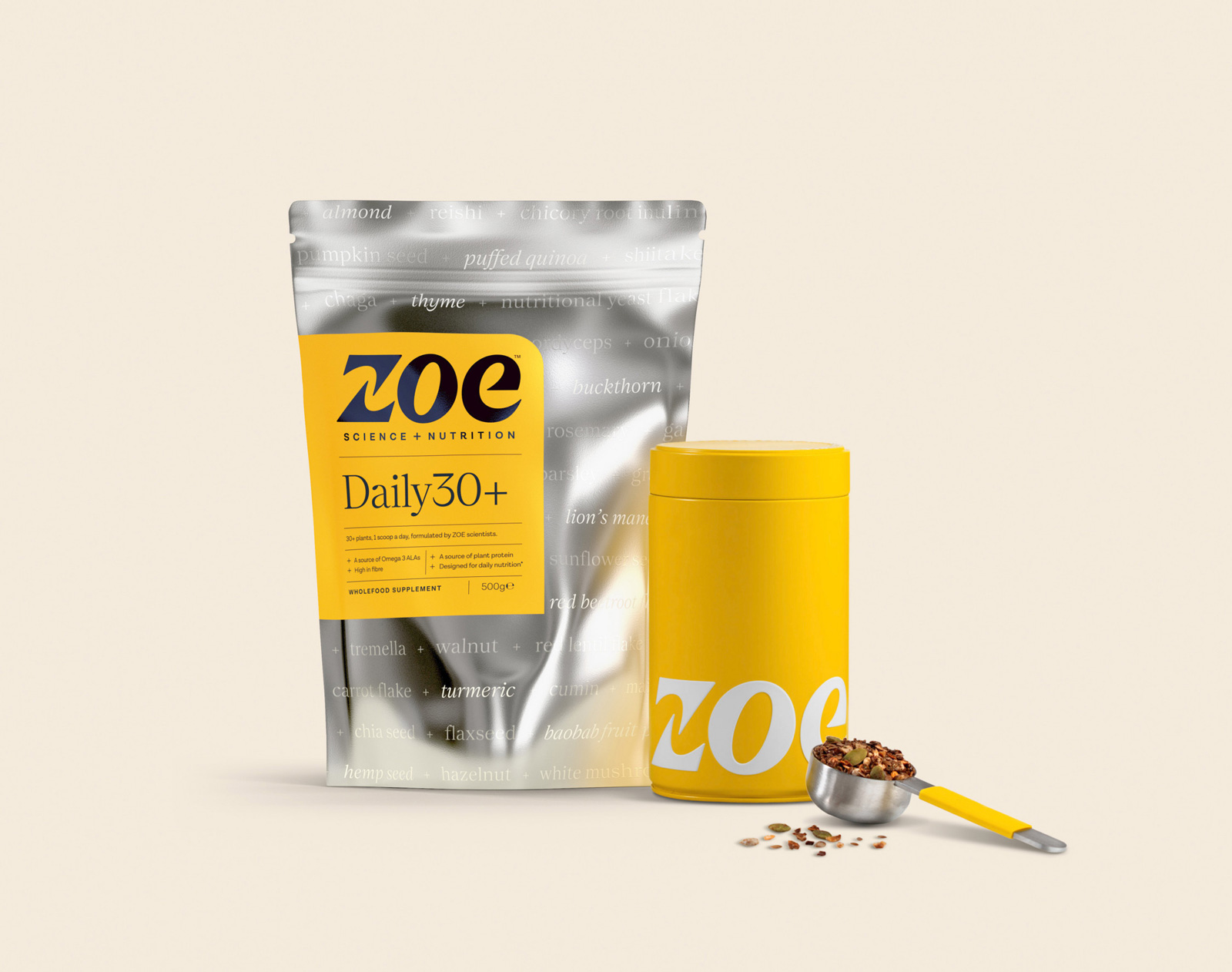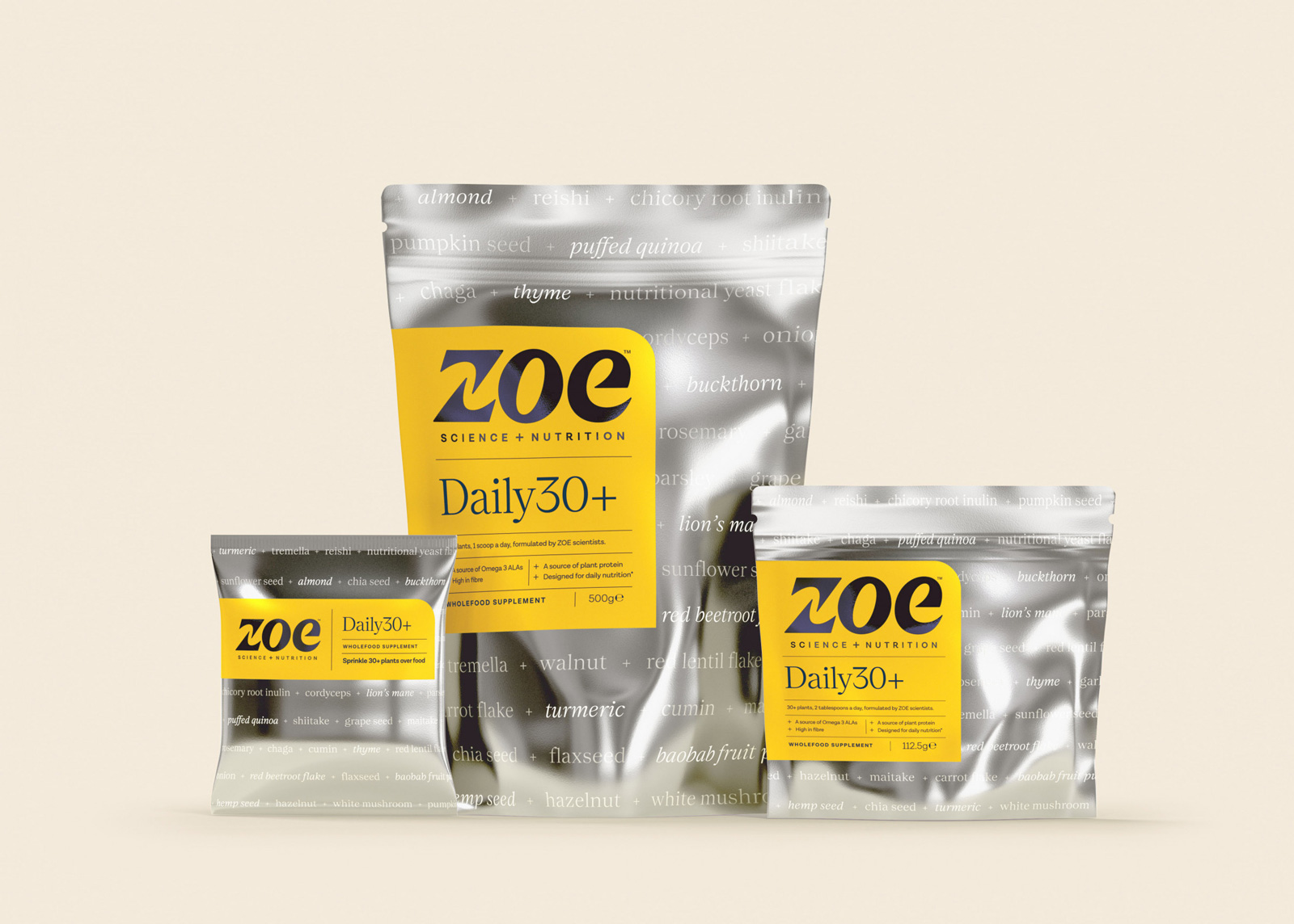 Для выхода на более широкую аудиторию команда ZOE Nutrition обратилась в агентство Butterfly Cannon за обновлением фирменного стиля и разработкой визуального решения для первого продукта под собственной маркой — инновационной растительной добавки Daily30+, объединившей в себе более 30 видов цельных растений.