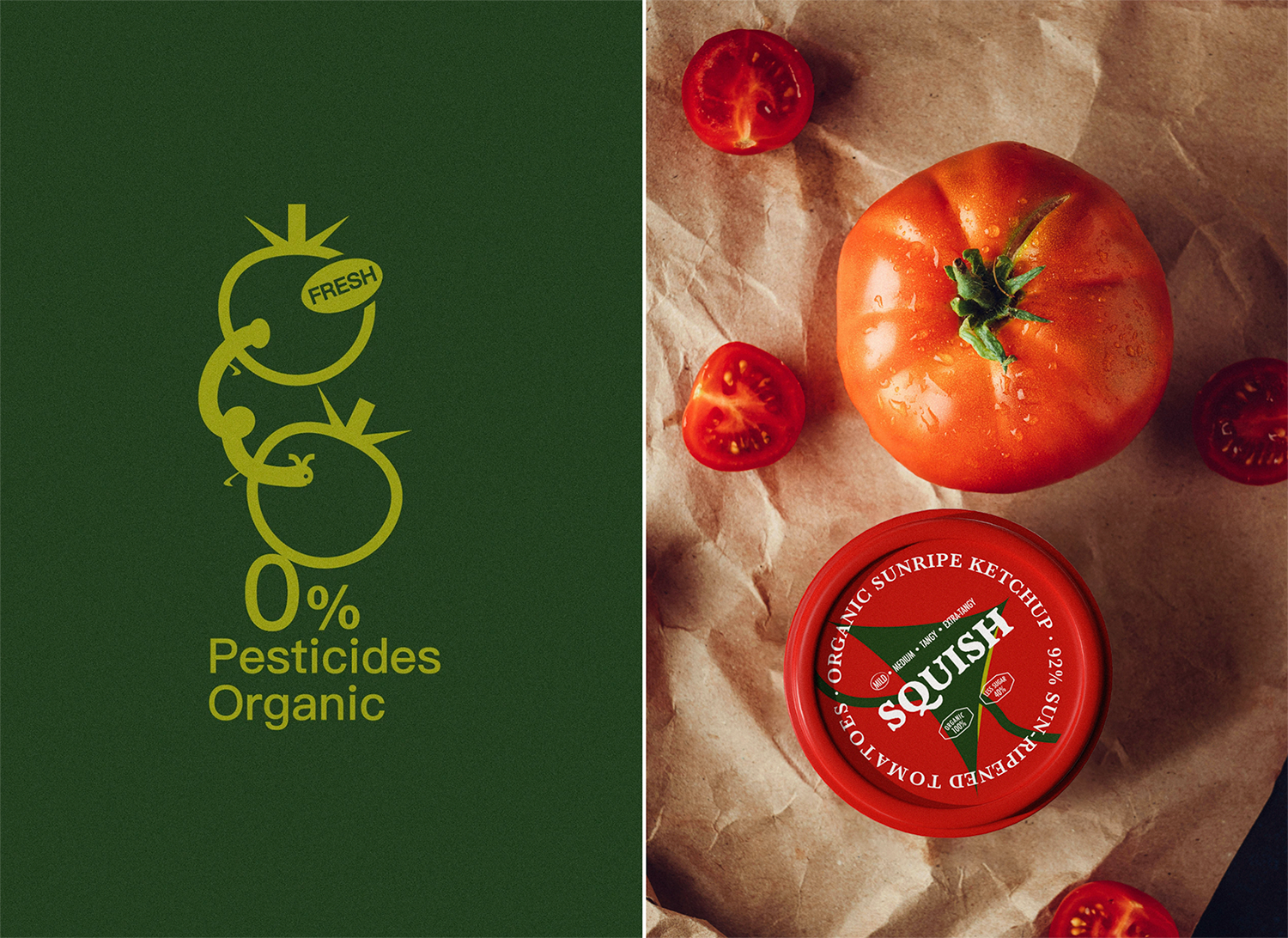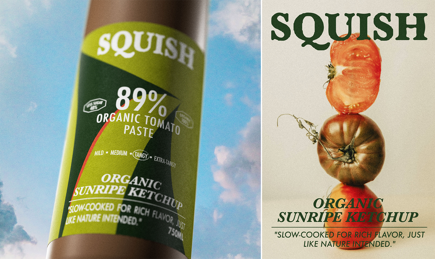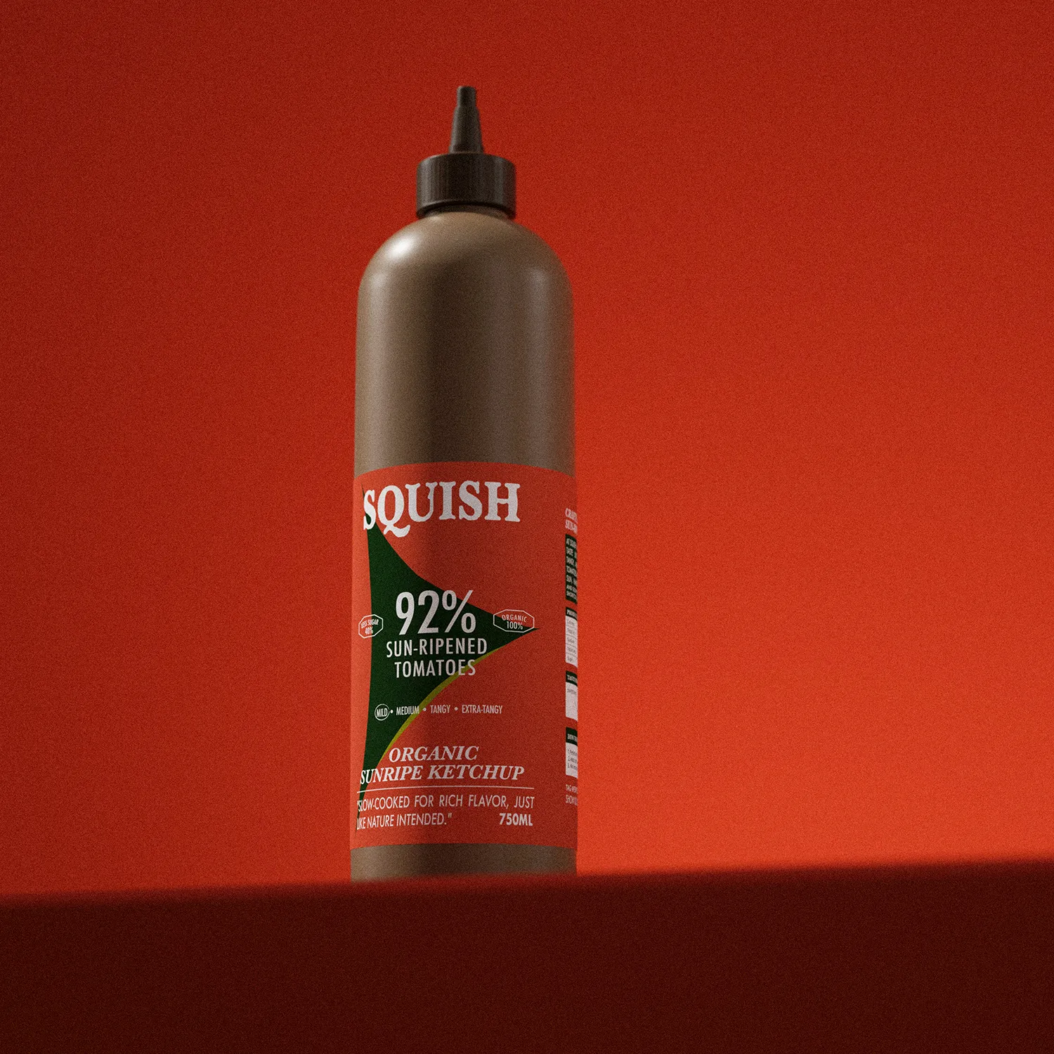 SQUISH выступает за быстрое и интуитивное взаимодействие с продуктом, делая акцент на свежести и органичности. Упаковка оформлена таким образом, чтобы напоминать овощ, готовый к сбору: выбор баночки с полки имитирует жест, знакомый каждому, кто когда-либо срывал спелый плод. Такой подход усиливает тактильную и эмоциональную связь между продуктом и покупателем.