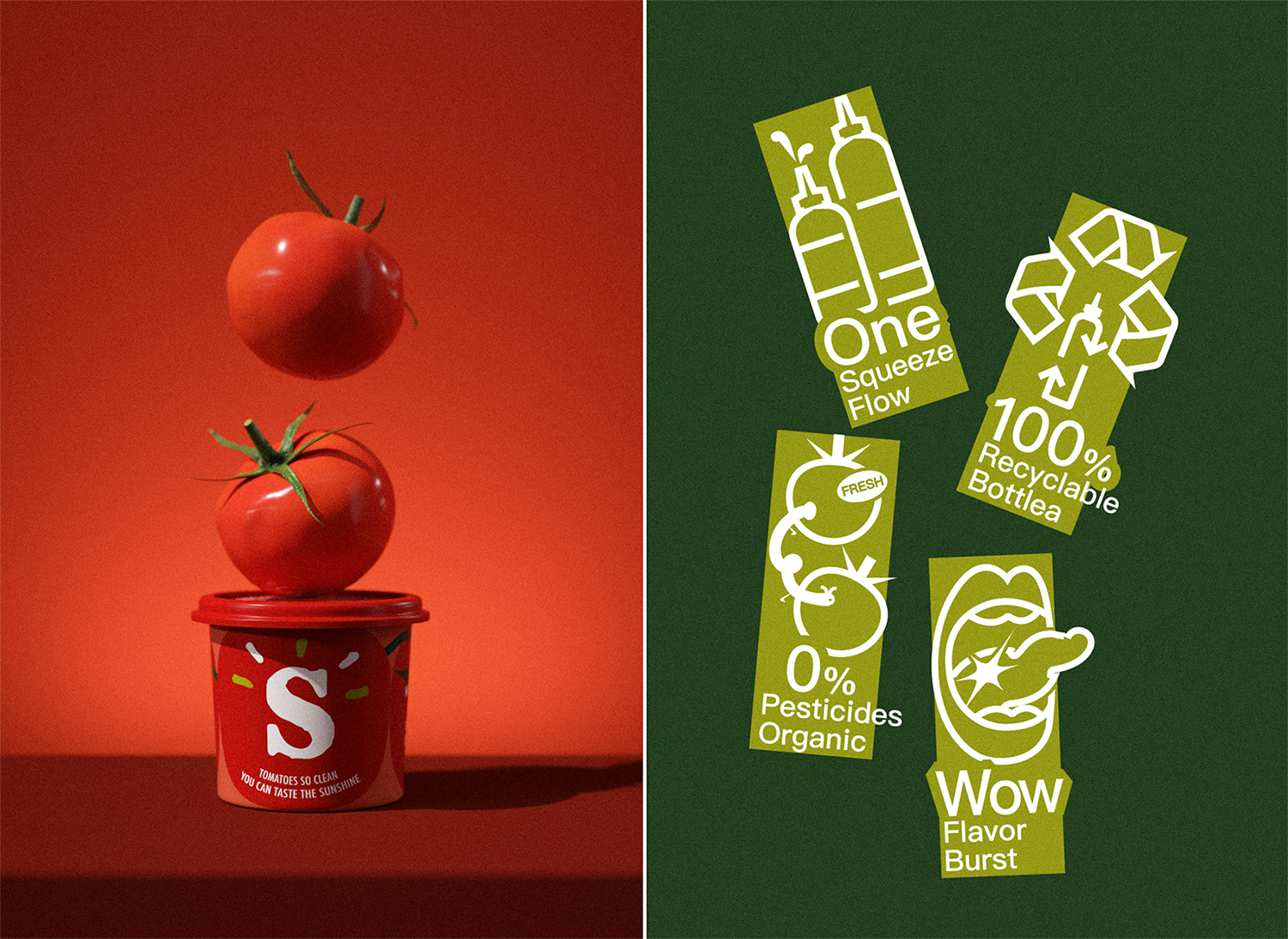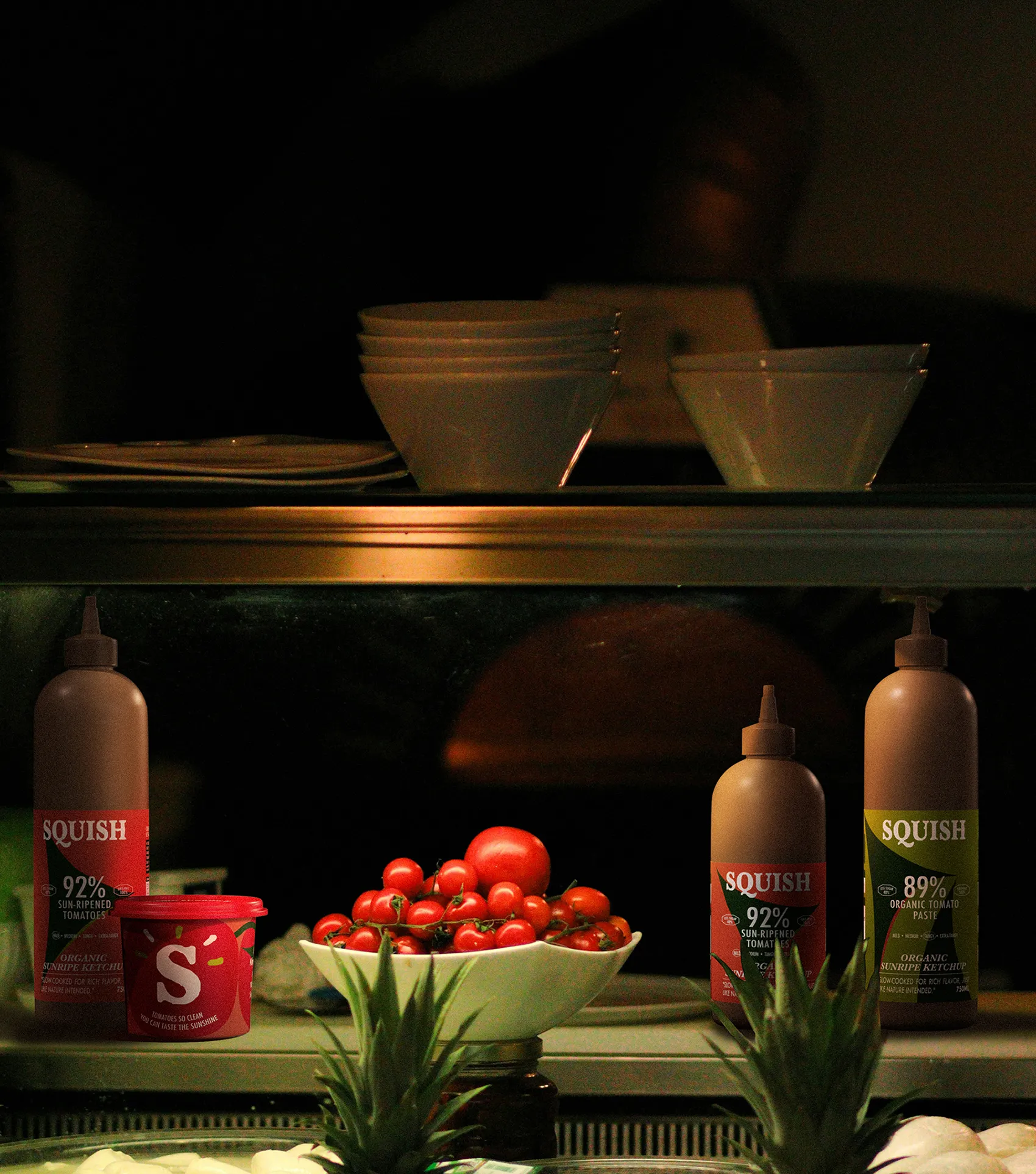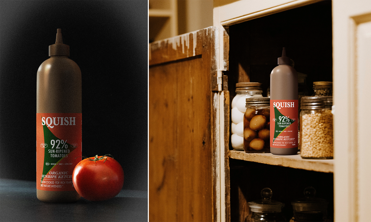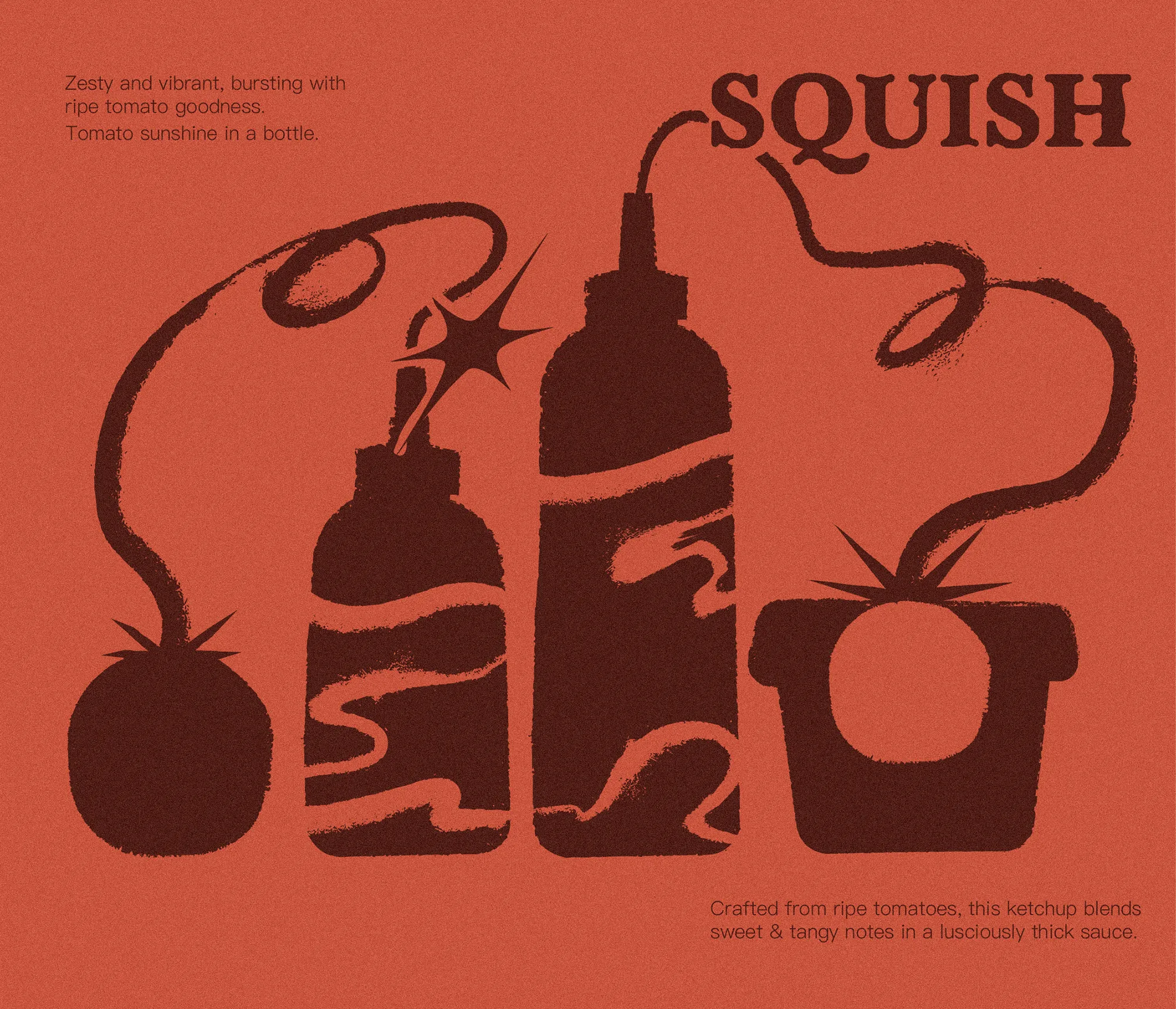 SQUISH выступает за быстрое и интуитивное взаимодействие с продуктом, делая акцент на свежести и органичности. Упаковка оформлена таким образом, чтобы напоминать овощ, готовый к сбору: выбор баночки с полки имитирует жест, знакомый каждому, кто когда-либо срывал спелый плод. Такой подход усиливает тактильную и эмоциональную связь между продуктом и покупателем.