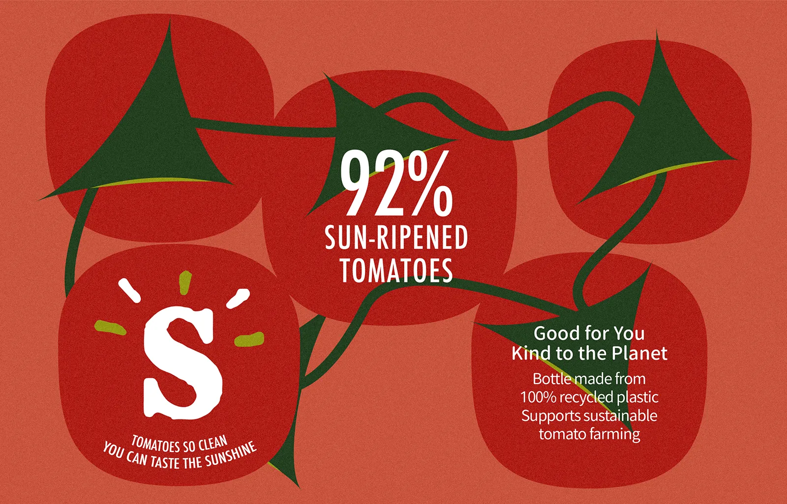 Графически интерпретированный, стебель превращается в живой визуальный код, объединяющий упаковки линейки в цельный повествовательный язык. Изображения корней и стеблей не только структурируют композиции, но и выражают концепцию естественного, беспрерывного процесса — от сбора урожая до потребления.