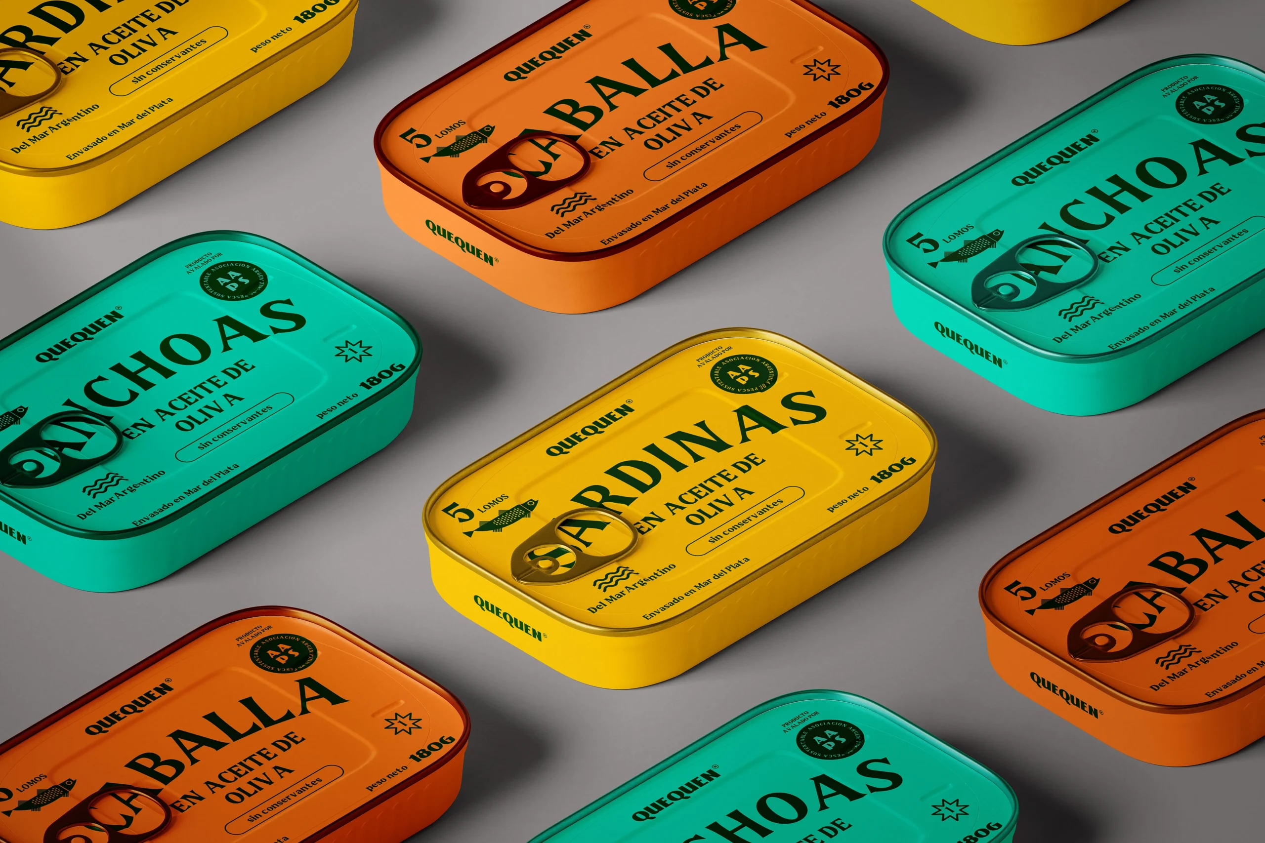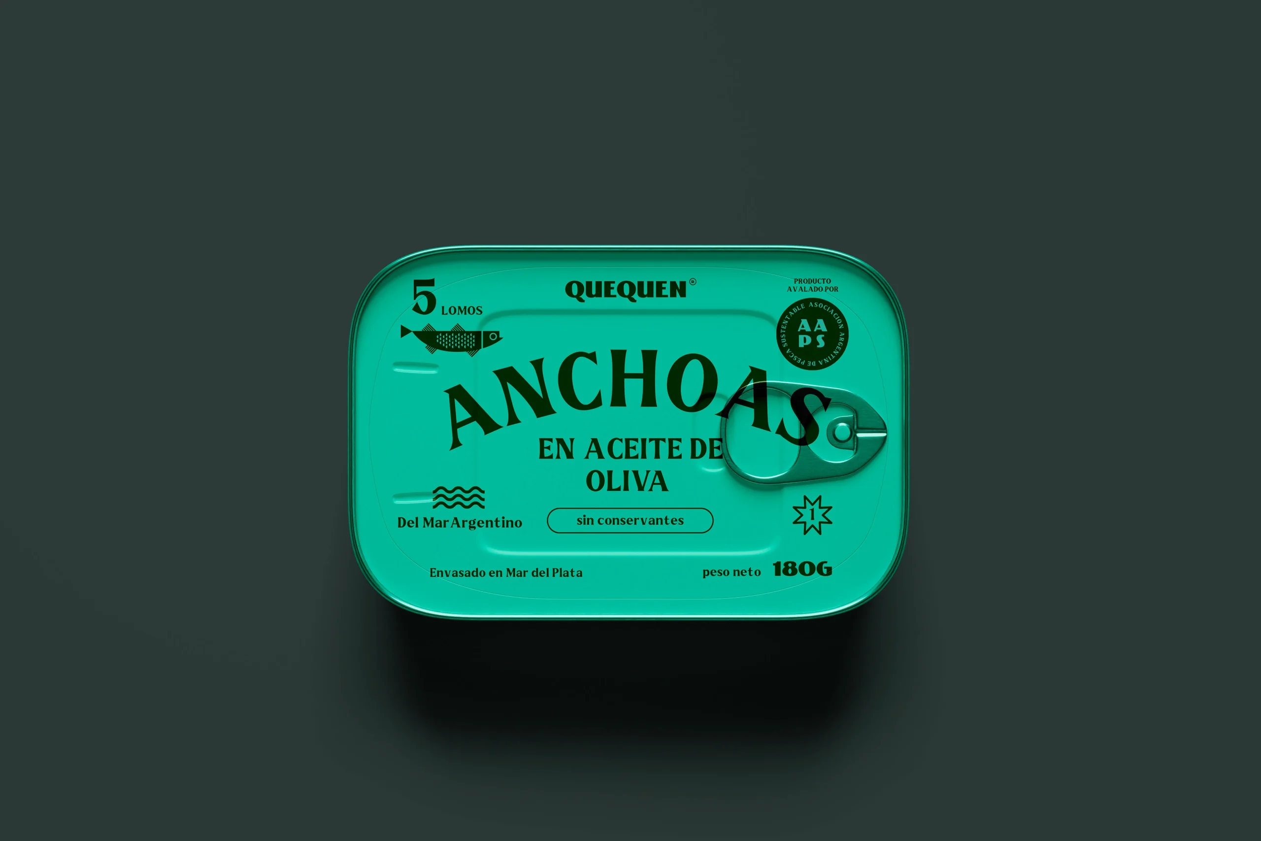 Насыщенный бирюзово-зеленый для анчоусов: Этот оттенок не только мгновенно ассоциируется с морской водой и свежестью, но и придает продукту премиальный, почти драгоценный вид. Он выделяется на фоне привычных банок и вызывает чувство чистоты.
