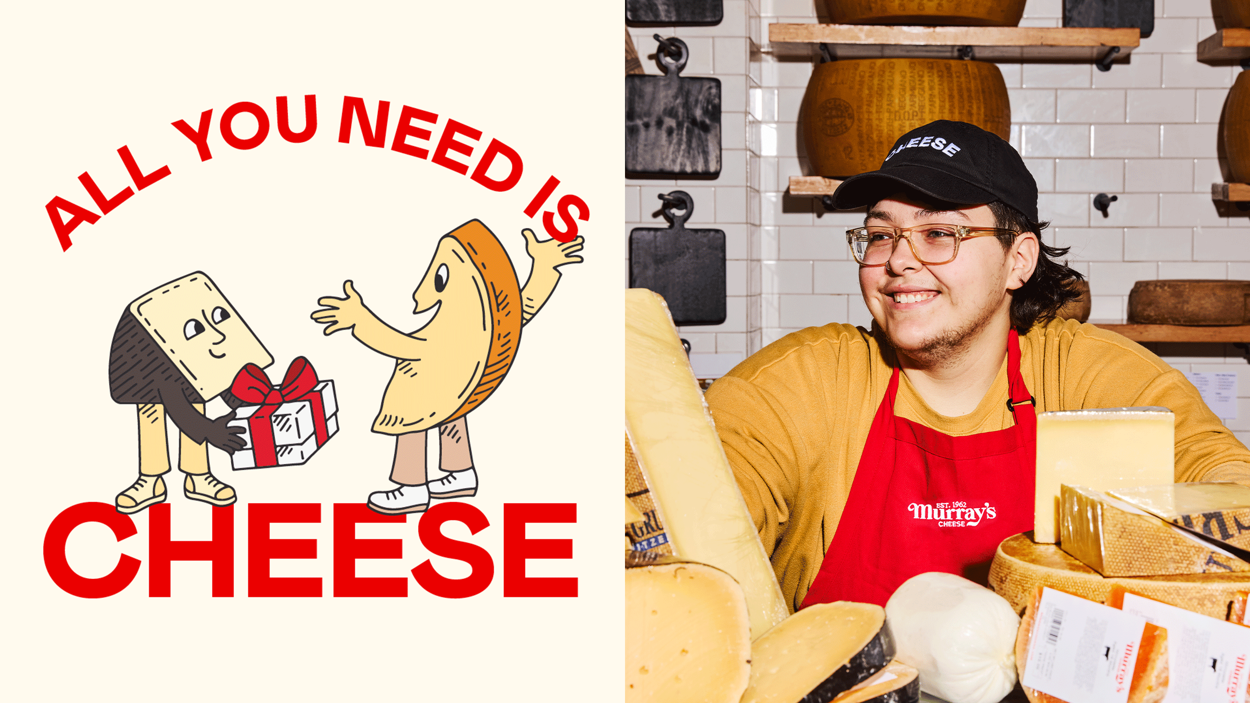 С момента своего появления на Манхэттене в 1960-х Murray’s Cheese стал неотъемлемой частью гастрономической карты Нью-Йорка. И вот теперь, спустя десятилетия, бренд буквально «созрел» — не по прошествии лет, а мгновенно, благодаря новому фирменному стилю, разработанному студией Base Design в рамках масштабного ребрендинга и редизайна веб-сайта.