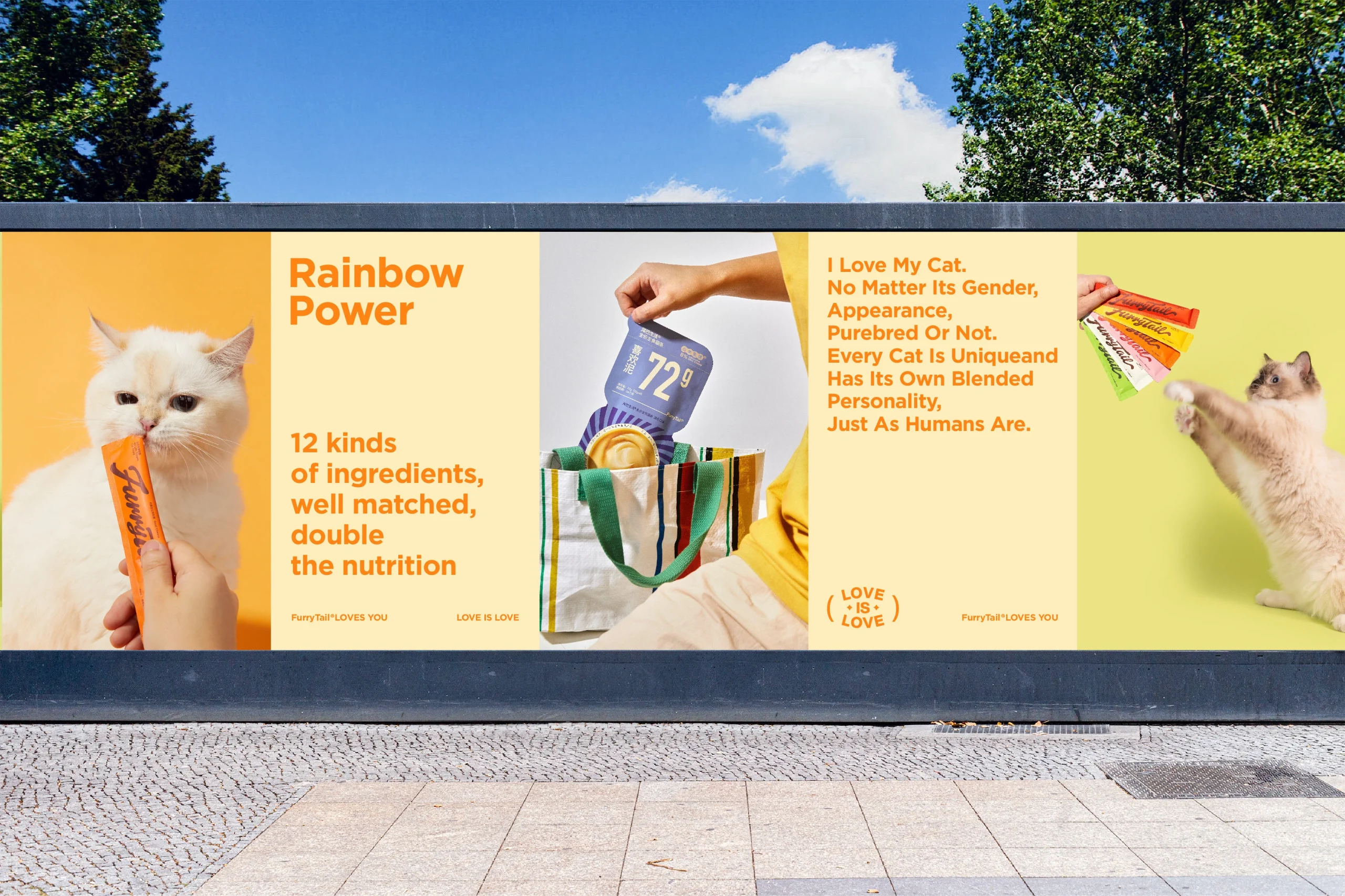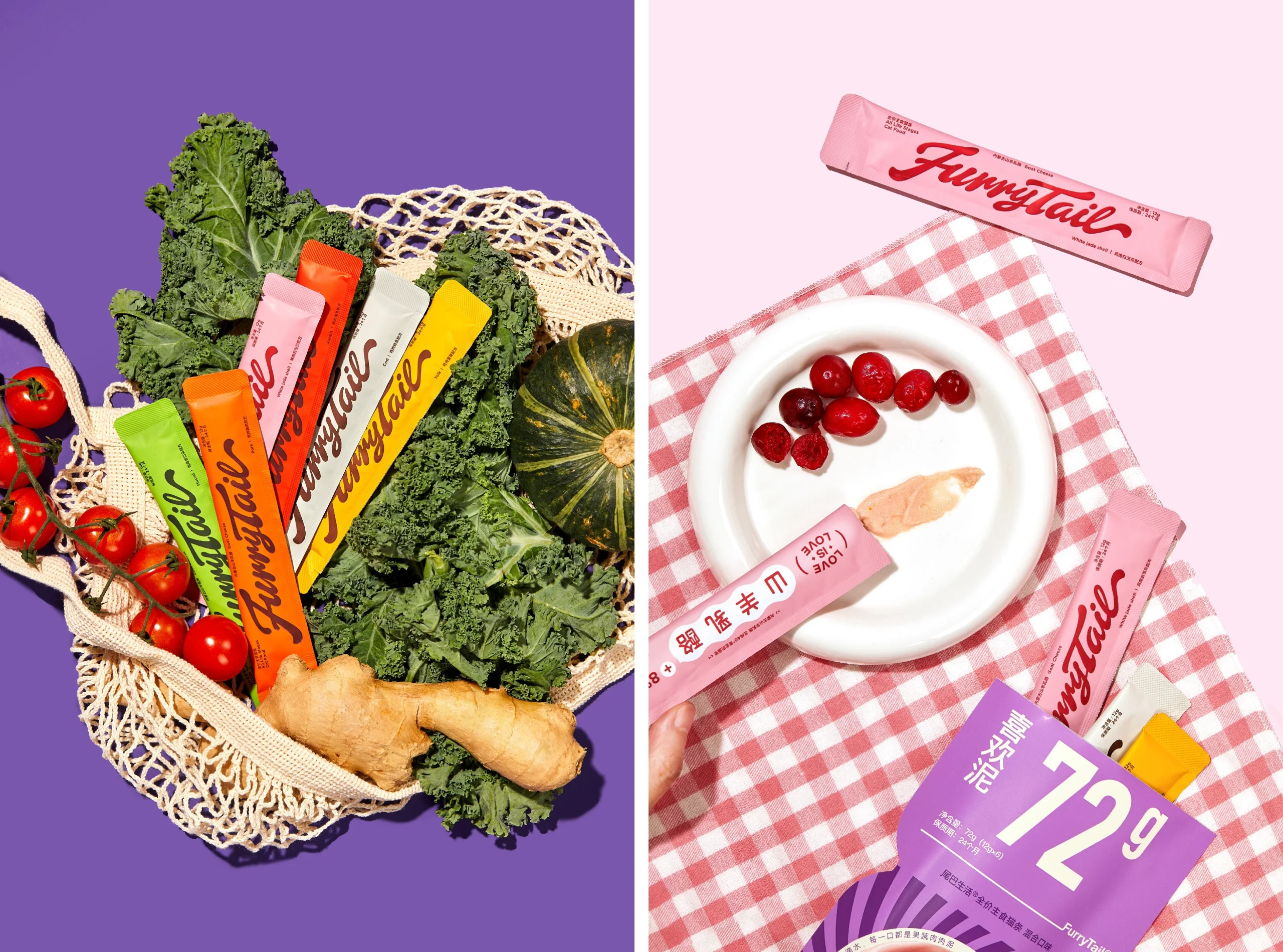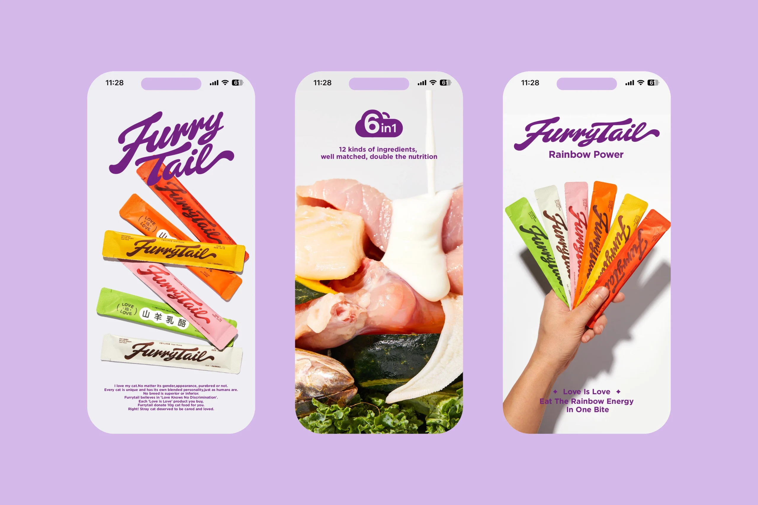 Лакомства FurryTail® Rainbow разработаны на основе «радужной диеты» — концепции, предложенной Американской ассоциацией здравоохранения ACS. Согласно этой системе, шесть цветов радуги символизируют шесть различных типов питательных веществ, необходимых для полноценного рациона. Вдохновившись этой идеей, бренд создал линейку, сочетающую 12 разнообразных ингредиентов в сбалансированных рецептах, чтобы обеспечить кошек не только более вкусным, но и более питательным кормом.