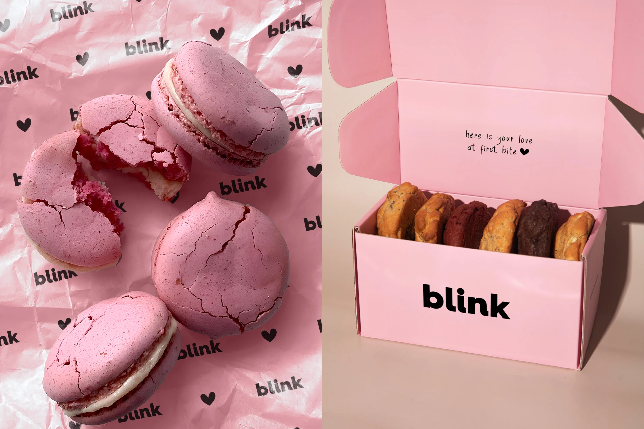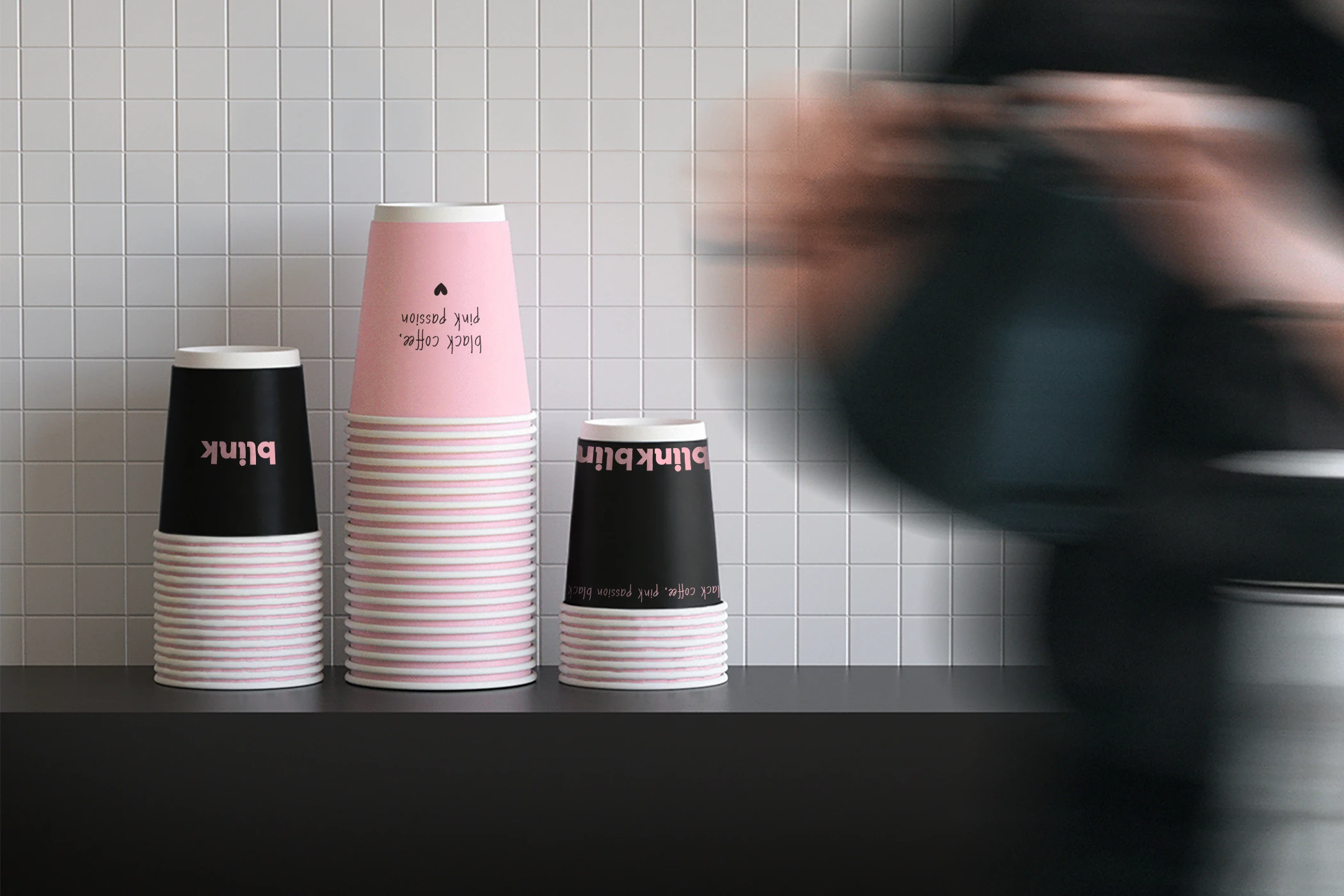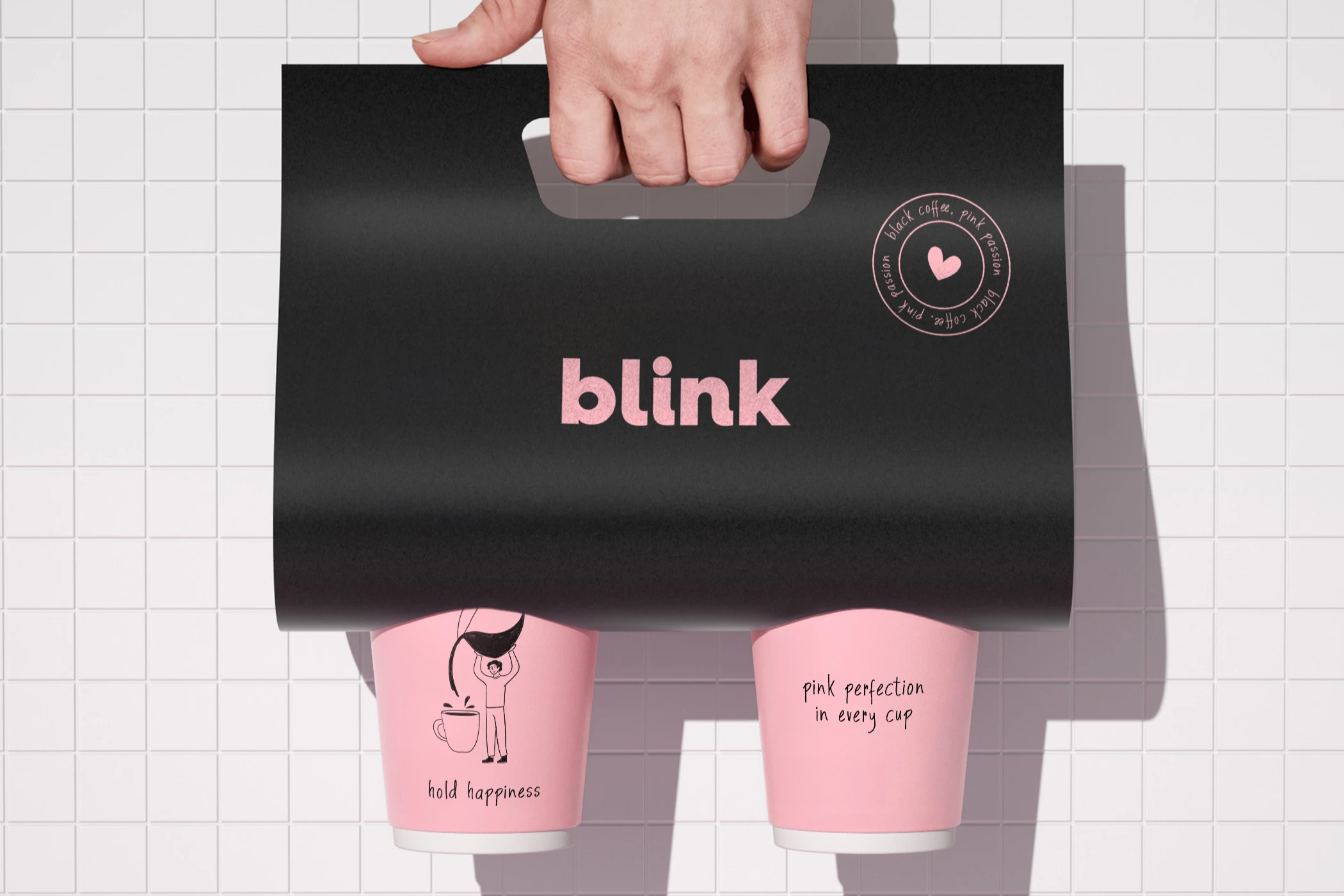 Название образовано от сочетания слов black и pink — черного кофе и розовых десертов, — что отражает ключевую визуальную метафору бренда: black + pink = blink.