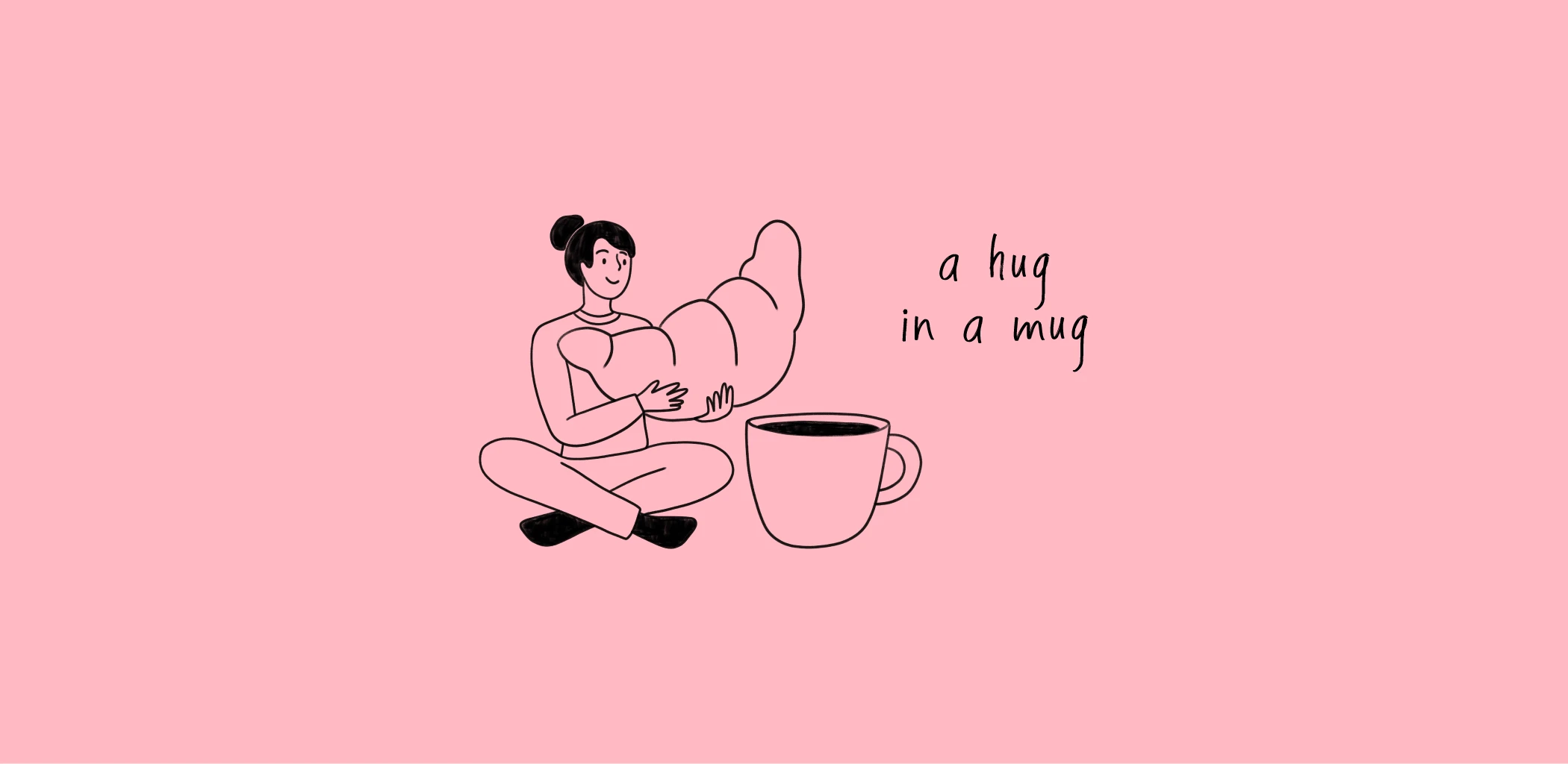 Айдентика кафе строится на изысканном сочетании чёрного и розового цветов, дополненном утончёнными и милыми иллюстрациями. Этот визуальный язык формирует женственную и располагающую атмосферу, где современность сочетается с лёгкой игривостью.
