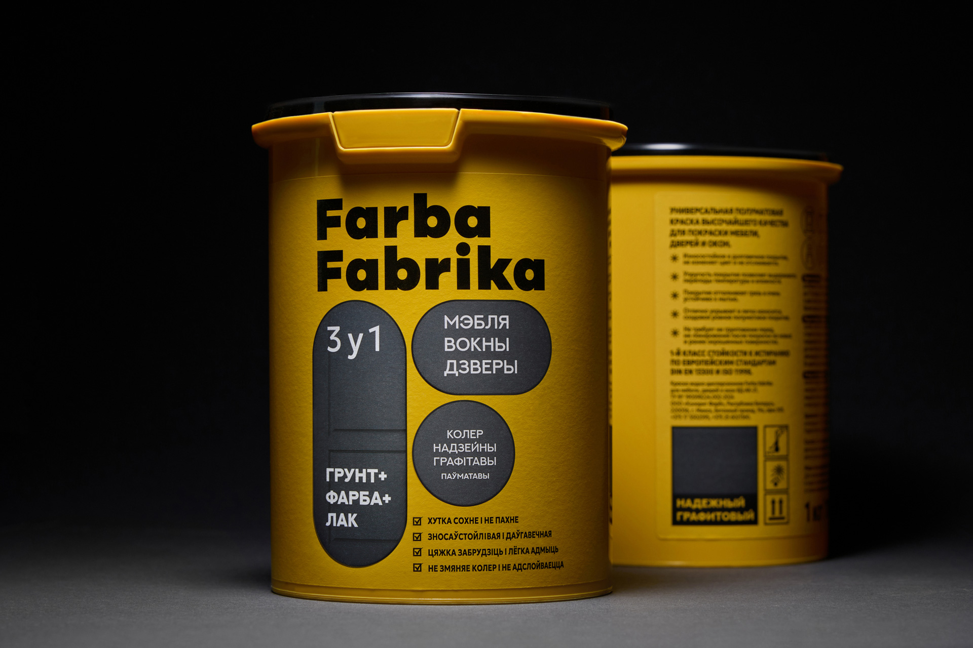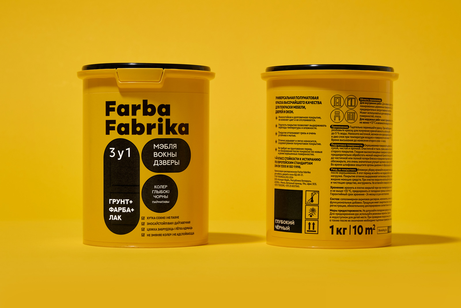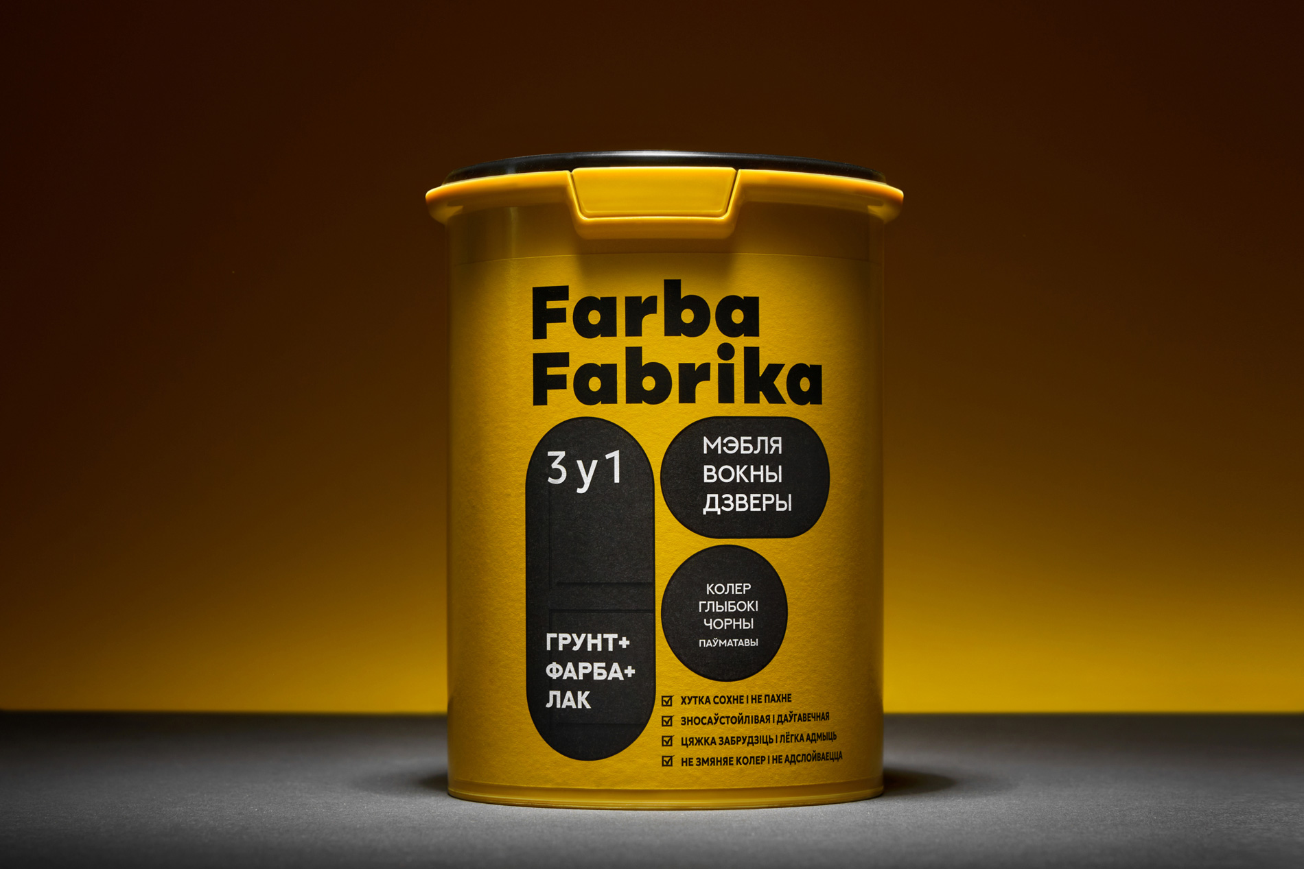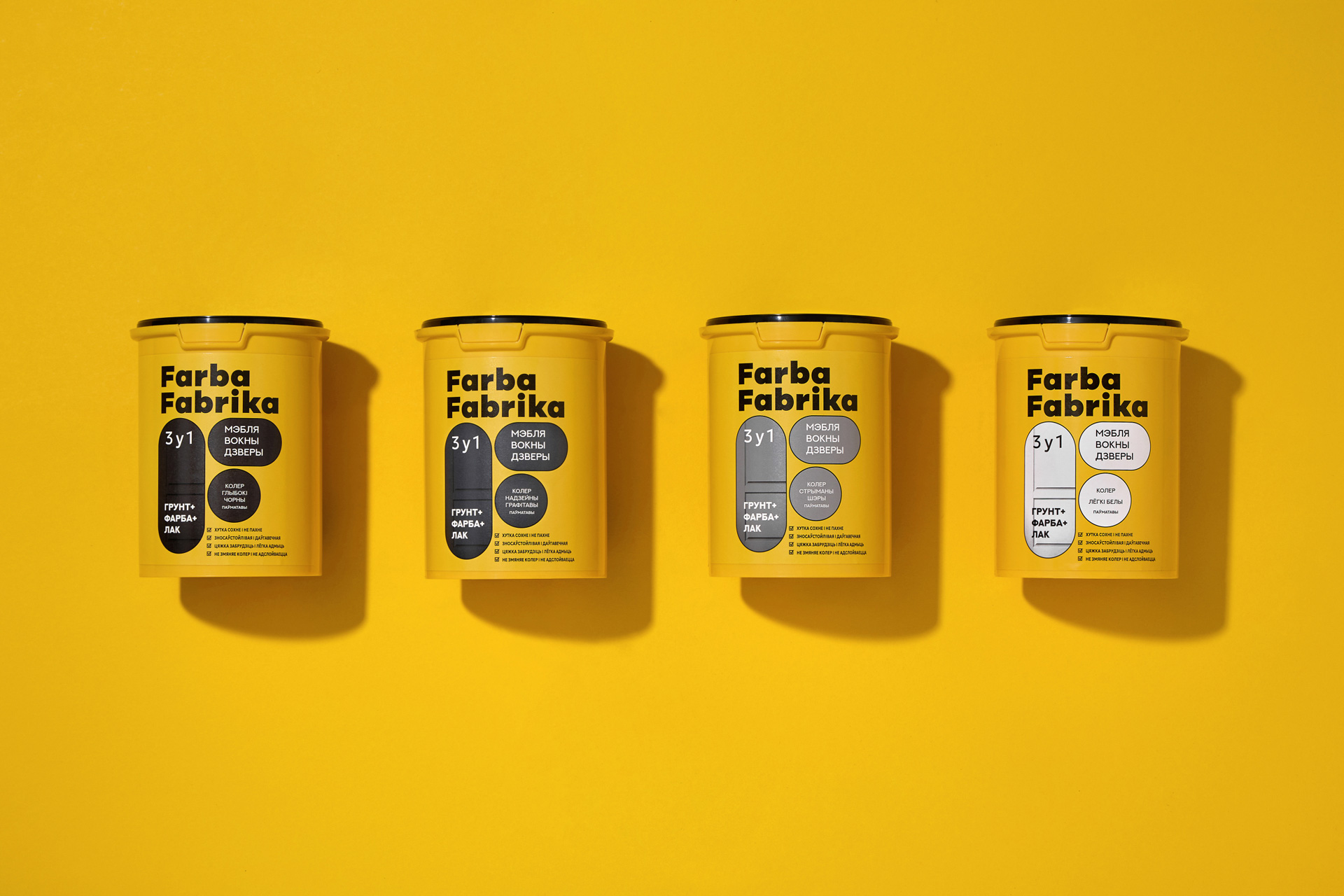 Так з’явіўся нэйм Farba Fabrika — яскравая, энергічная назва, у якой адразу чытаецца і прадукт, і яго карані. Тут — беларускае гучанне, лёгкі індустрыяльны прысмак і адчуванне колеру як дзеяння, працэсу. Гэта фабрыка колеру, дзе нараджаюцца вобразы і ідэі.