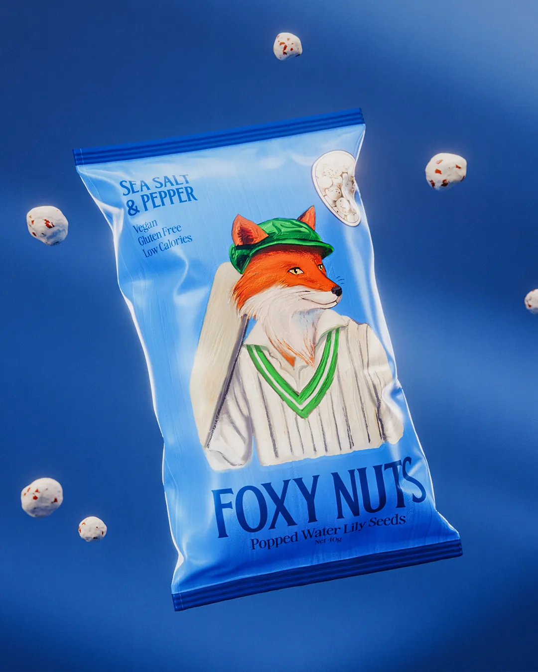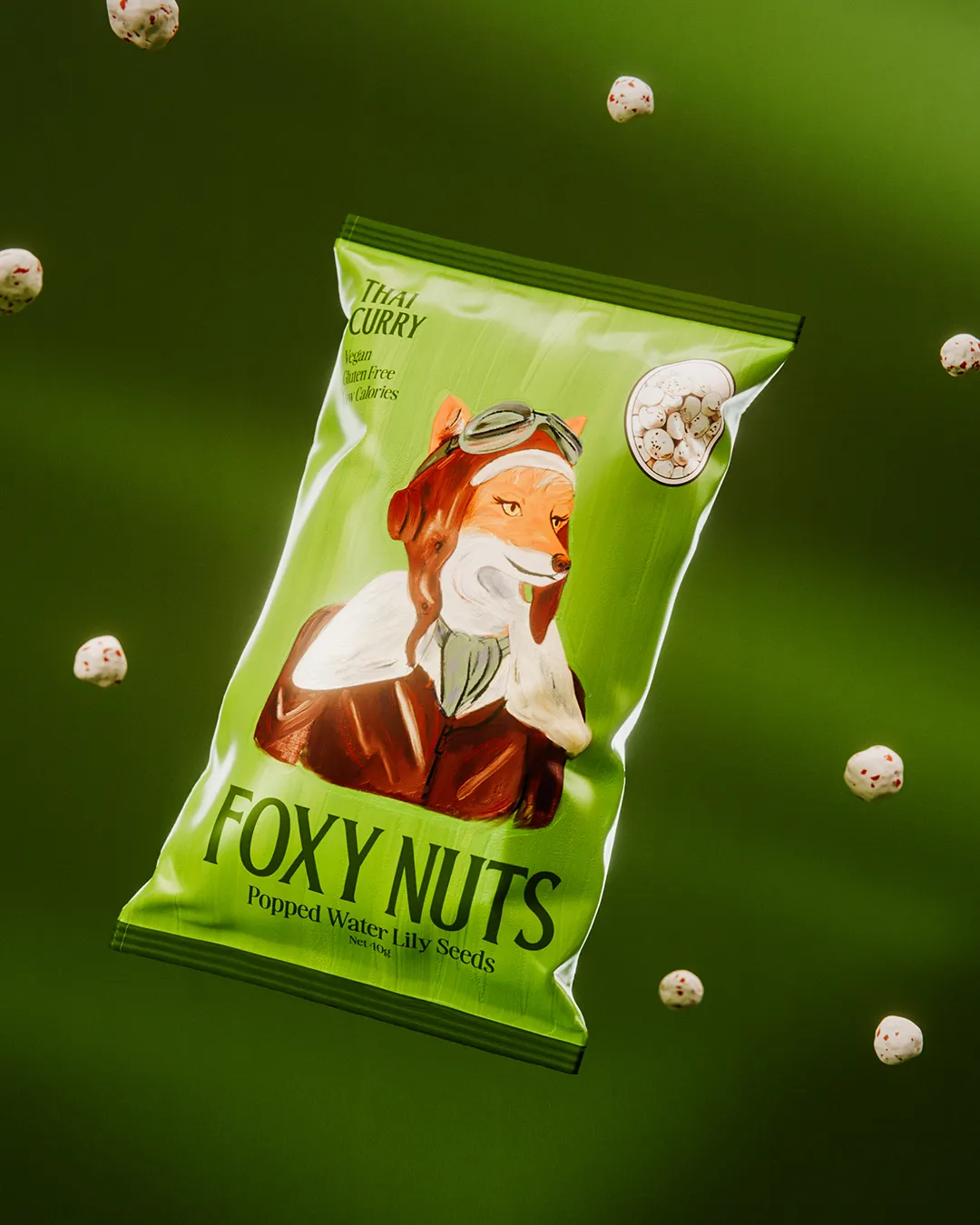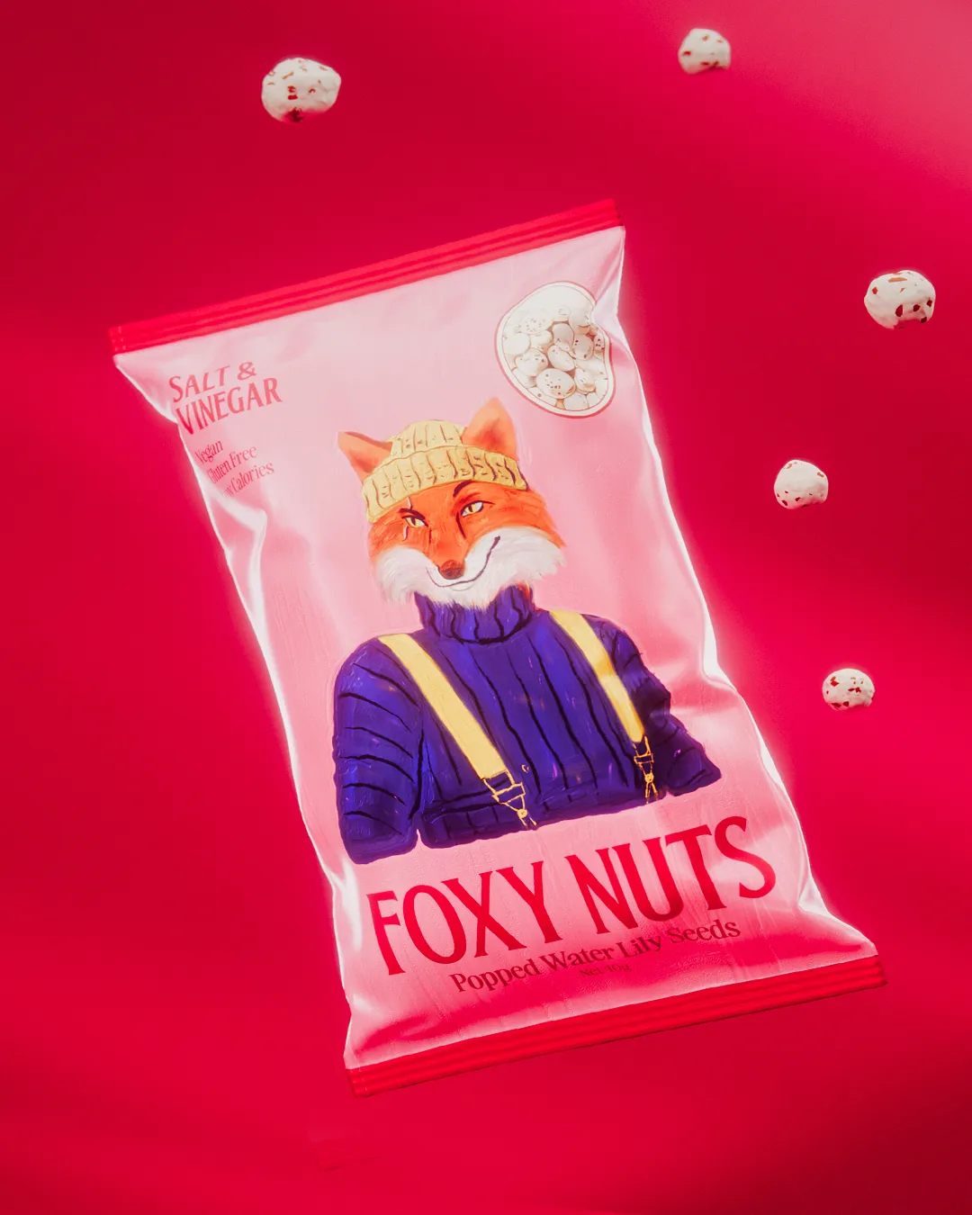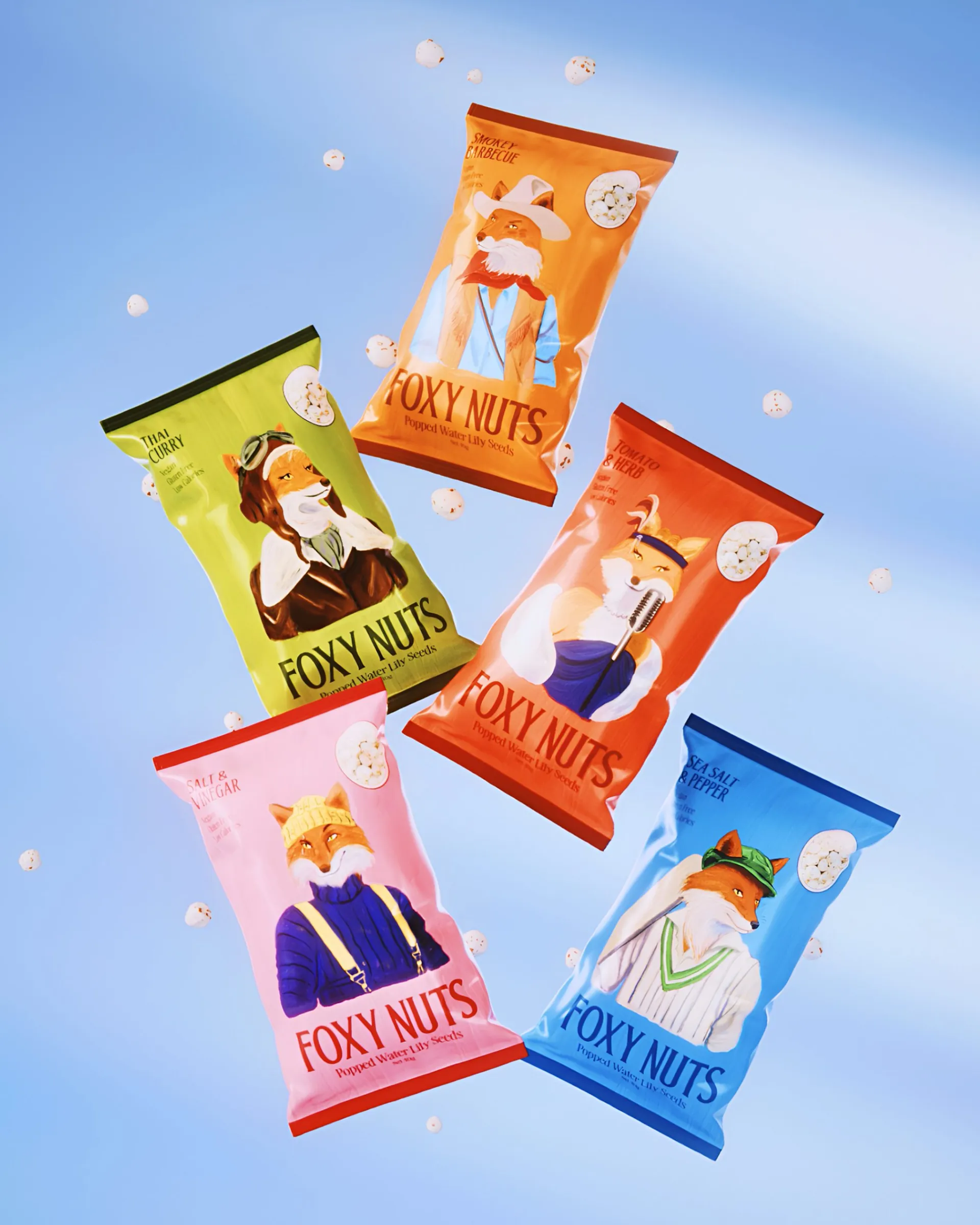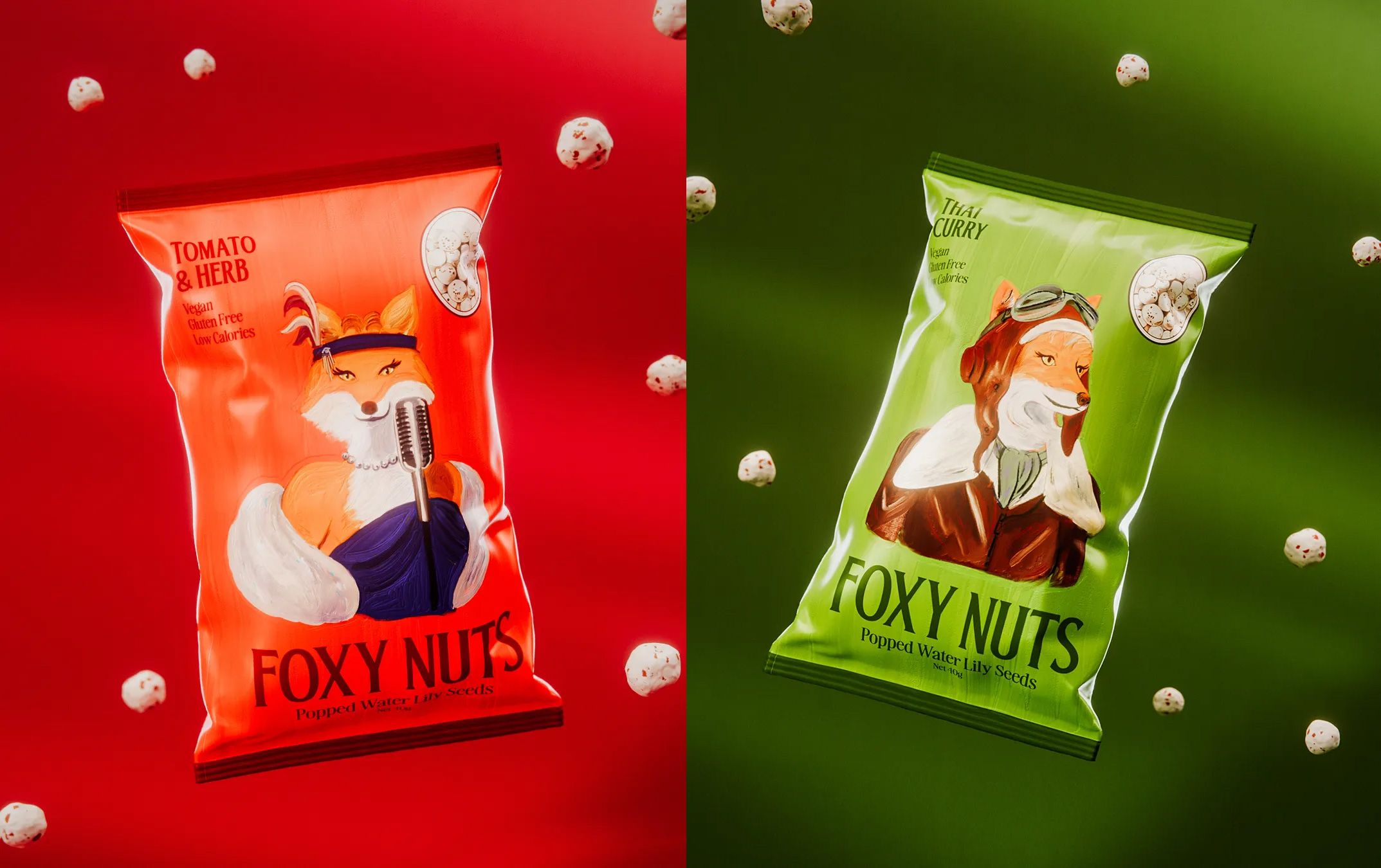 Foxy Nuts — это новый бренд снека из воздушных семян лотоса (махана), также известных как fox nuts. Основанный в Мельбурне, продукт предлагает здоровую альтернативу привычным закускам, а его визуальный облик делает ставку на персонажность, эстетику и тонкий юмор.