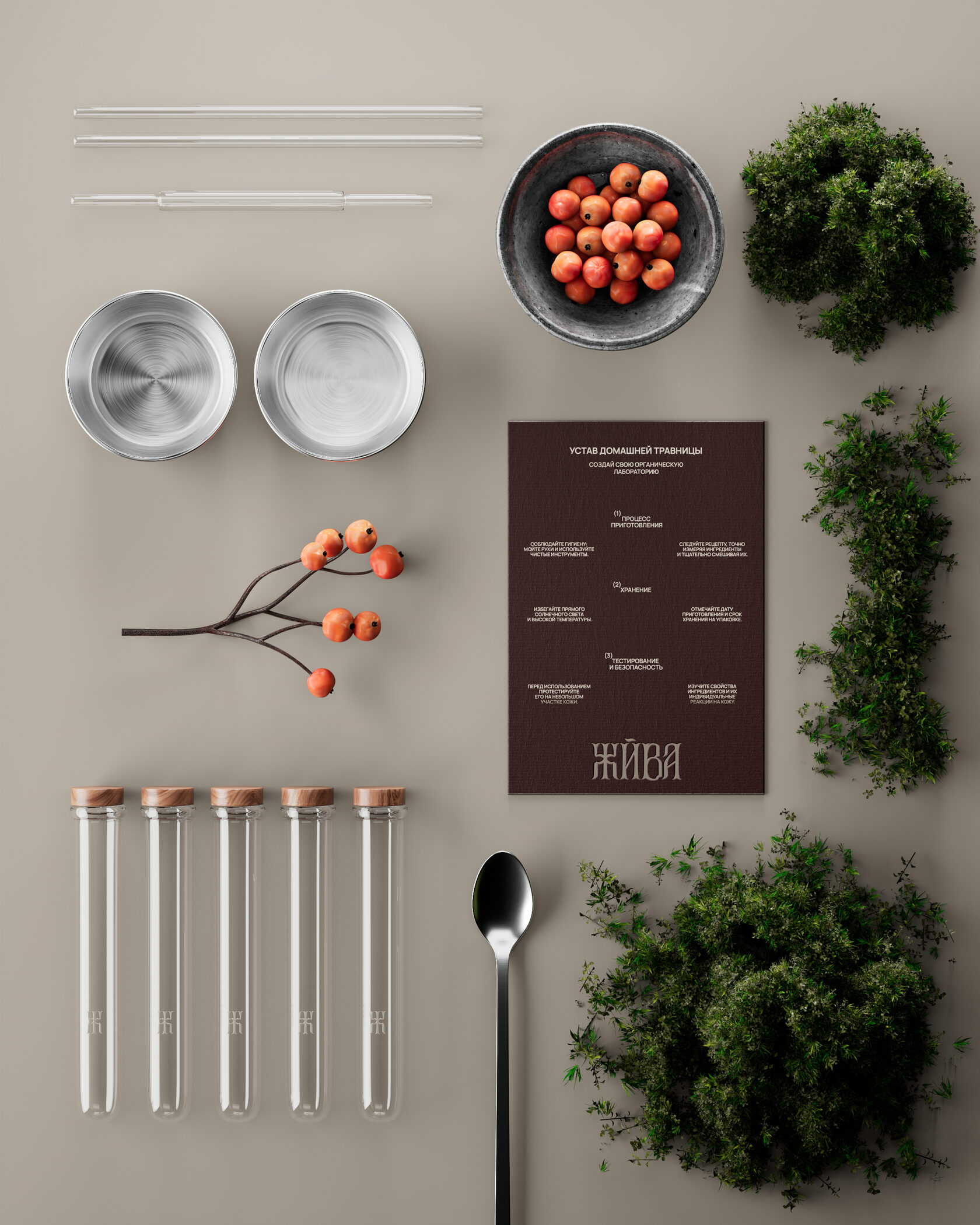 Концепт косметического бренда «Жива», созданный агентством OTVETDESIGN, объединяет стремление к экологичности, интерес к культурным корням и философию осознанного потребления. В основе — образ травницы, хранительницы знаний о растениях и их целительной силе, символа бережного отношения к природе.