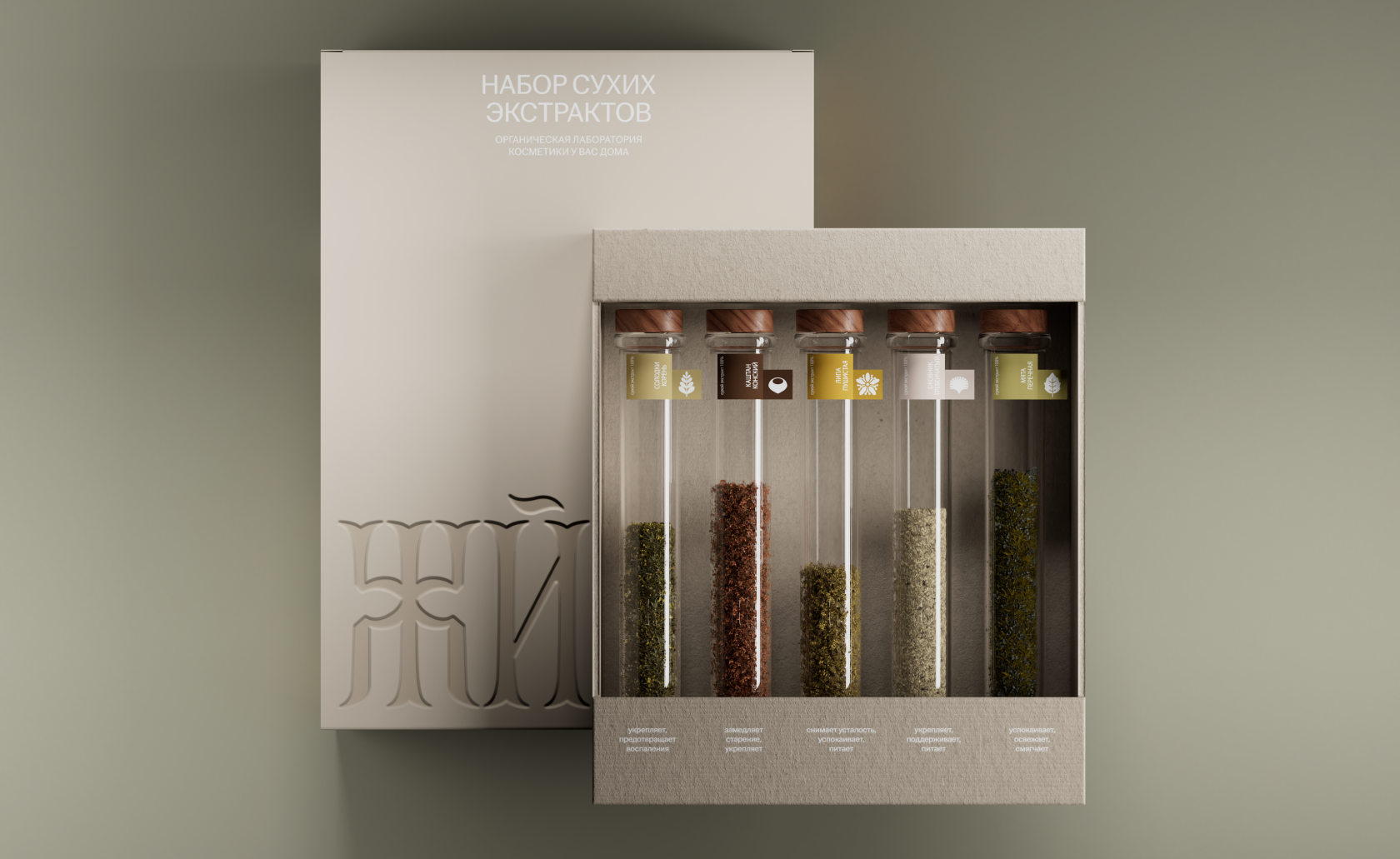 Визуальный язык бренда также отсылает к русским традициям: логотип выполнен в стиле старорусской вязи, а фотостиль с эффектом радиального размытия подчеркивает чистоту и натуральность. Упаковка — многоразовая, стеклянная, соответствующая принципам zero waste.