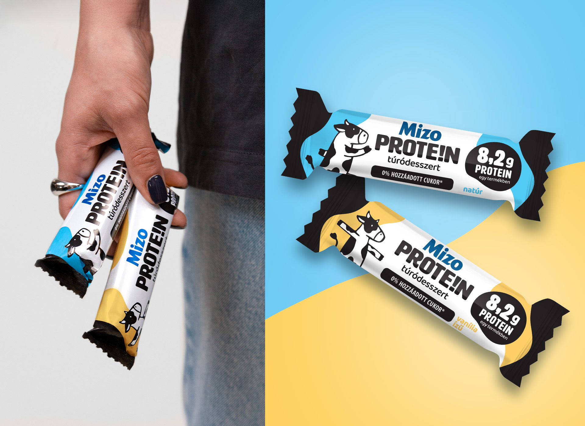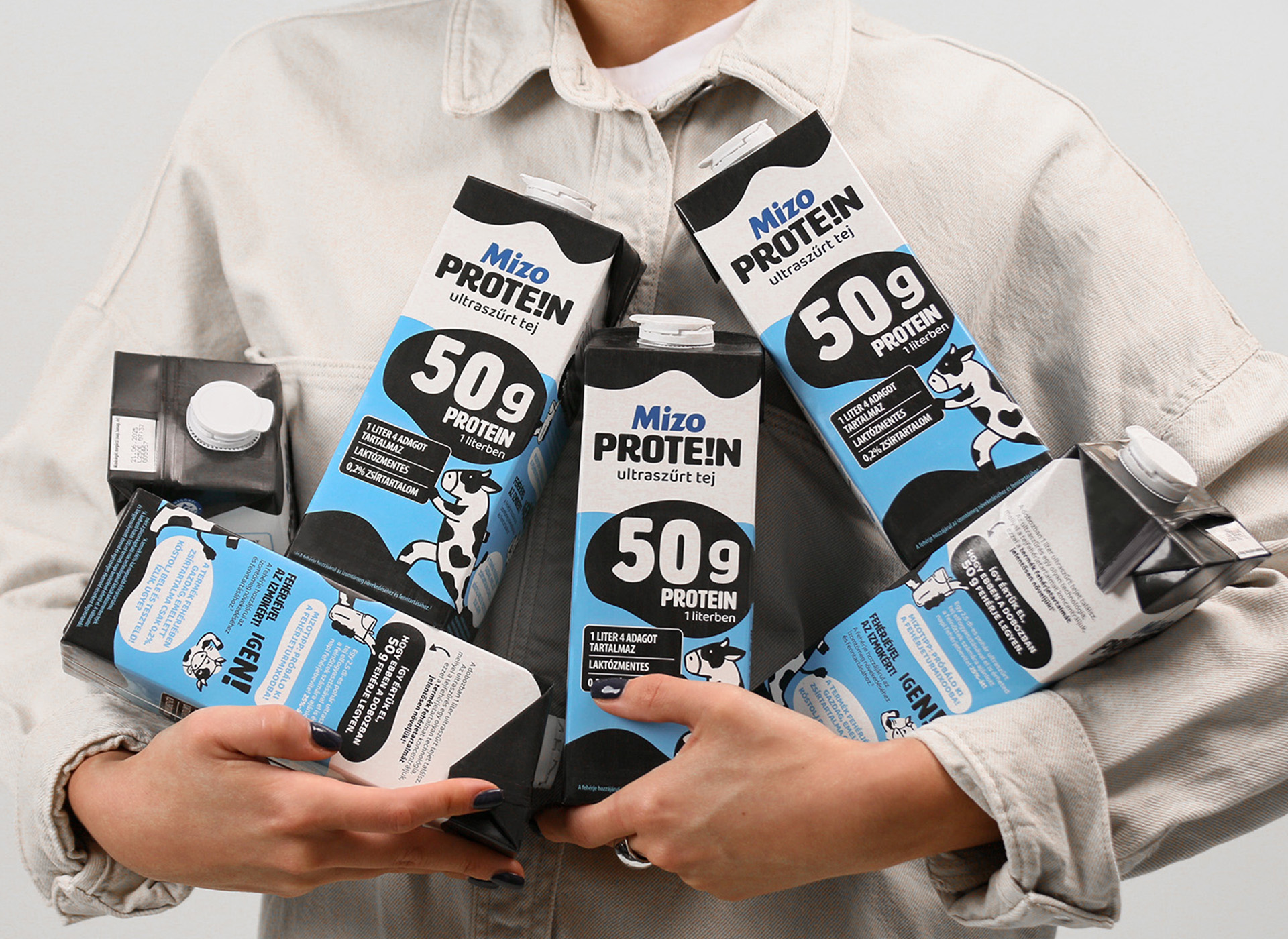 Первыми в серии Mizo Prote!n вышли ультрафильтрованное молоко и творожные десерты с нейтральным и ванильным вкусами. Их отличает дерзкий и уверенный shelf impact, сочетающий чёткую навигацию, спортивный дух и связь с материнским брендом. Все элементы дизайна направлены на то, чтобы Mizo Prote!n стало легкоузнаваемым, запоминающимся и желанным выбором в сегменте функционального питания.