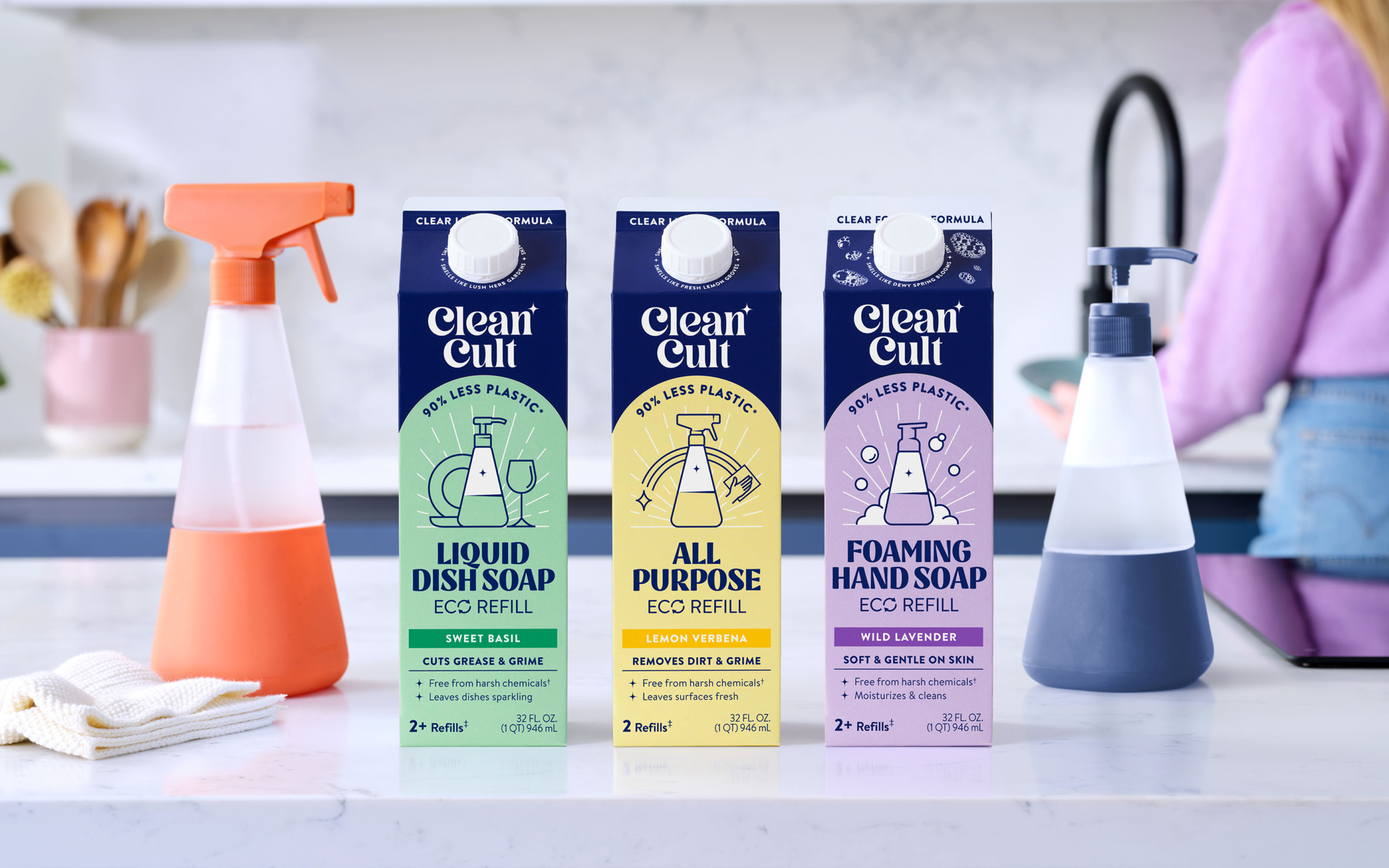 Американский бренд экологичных бытовых чистящих средств Clean Cult снова перезапускает себя визуально — на этот раз с акцентом на алюминий. Предыдущее обновление айдентики в 2023 году совпало с масштабным выходом бренда в Walmart, и тогда студия Robot Food переосмыслила визуальный стиль, упаковку и систему повторного наполнения: были введены картонные рефилы, стеклянные флаконы и распылители.