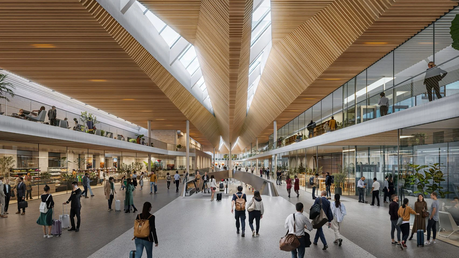 Сам аэропорт будет остеклён во всю высоту. На крыше разместят солнечные панели, а также системы сбора дождевой воды, управления ливневыми стоками и повторного использования сточных вод.
