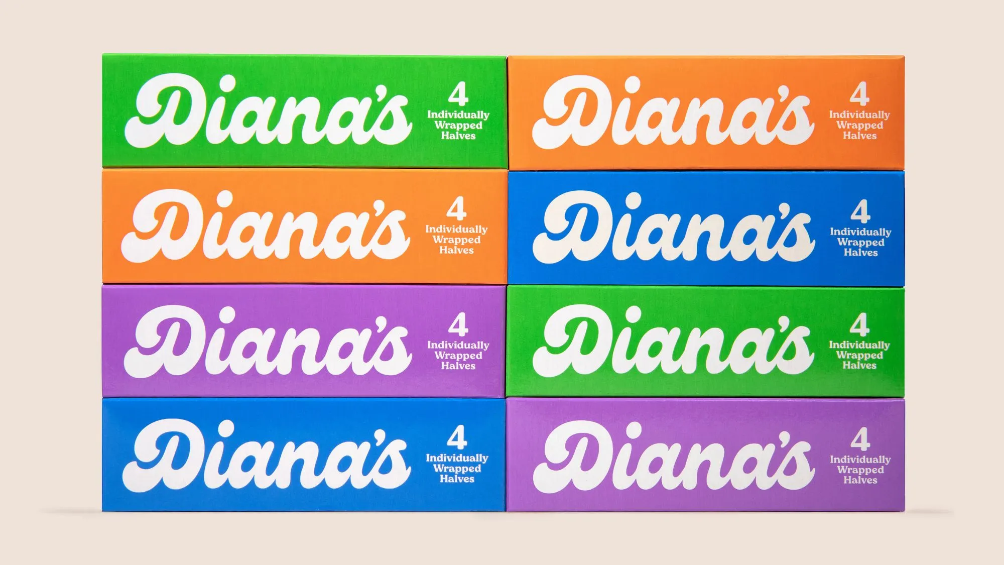 По мере роста компании Diana’s упаковка перестала отражать суть бренда, и команда обратилась за редизайном, чтобы усилить узнаваемость, выстроить единый визуальный стиль для всей линейки и подготовить бренд к расширению продуктового ассортимента.