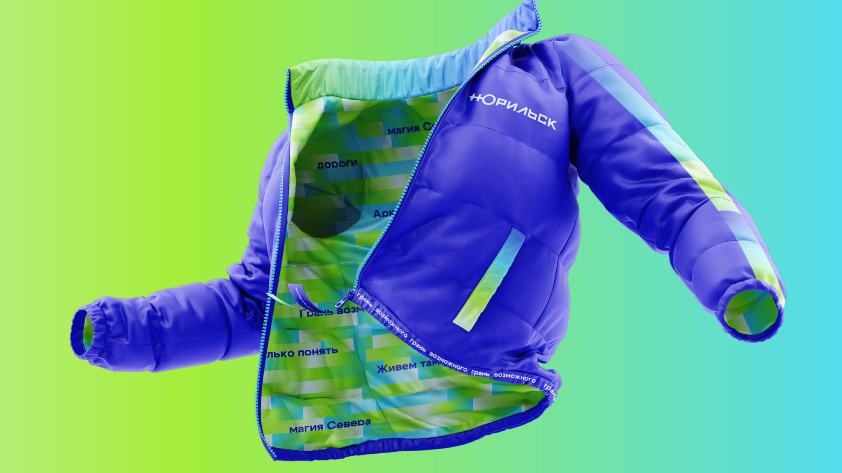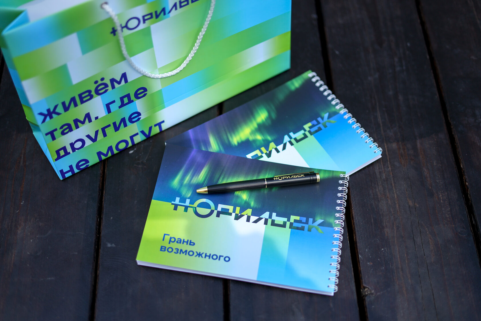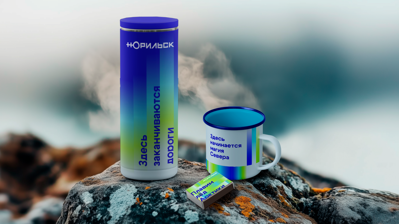 Визуальная система разработана с опорой на региональный контекст: логотип отсылает к элементам городского герба (медведь с ключом от Арктики), цветовая палитра базируется на природных ориентирах региона — тундре, северном сиянии, вечной мерзлоте. Фирменный паттерн визуализирует данные о температуре и ветре в реальном времени, а фотостиль адаптирован под особенности северного освещения.