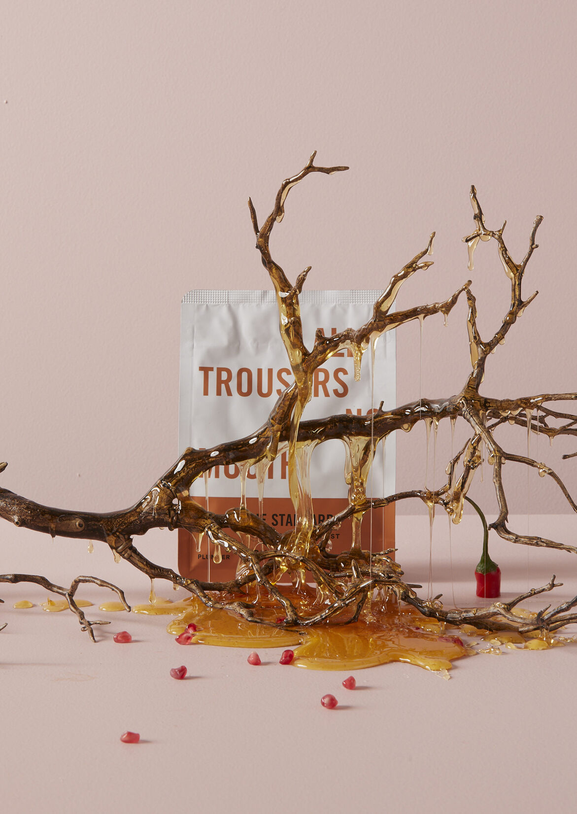 В кадре появляются неожиданные формы и текстуры: от «дерева джеффа» до лунных пейзажей, созданных из камня и корицы. Цветовая палитра вдохновлена ландшафтами Новой Зеландии — от насыщенных красноватых оттенков вулканических ущелий до зелено-синих тонов прибрежных вод. Эти цвета сочетаются с флорой и съедобными деталями, а затем нарушаются случайным движением — ударом по столу, падением объекта или другим неожиданным действием, чтобы результат никогда не выглядел чересчур выверенным.