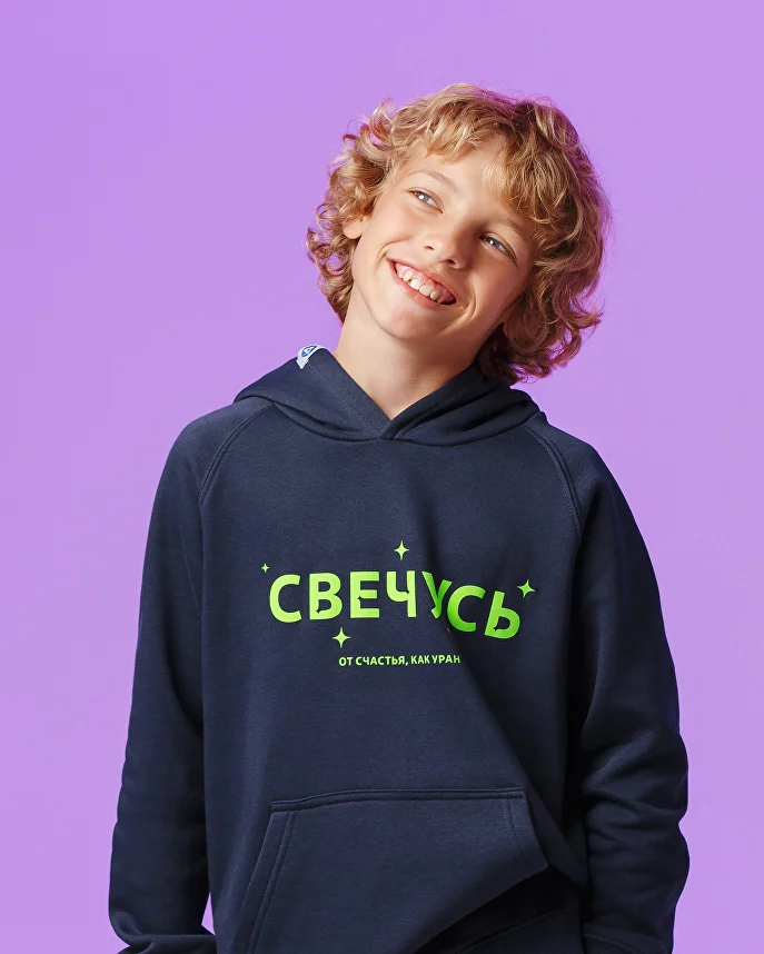 Главную визуальную роль в мерче получила типографика. Слоганы превращают свойства элементов в эмоции или действия. А нанесение усиливает концепцию графически: флуоресцентное «свечусь» передаёт сияние урана, пухлое «летаю» подчёркивает невесомость лития, а неразрывное «дружу» перекликается с соединительной природой водорода.
