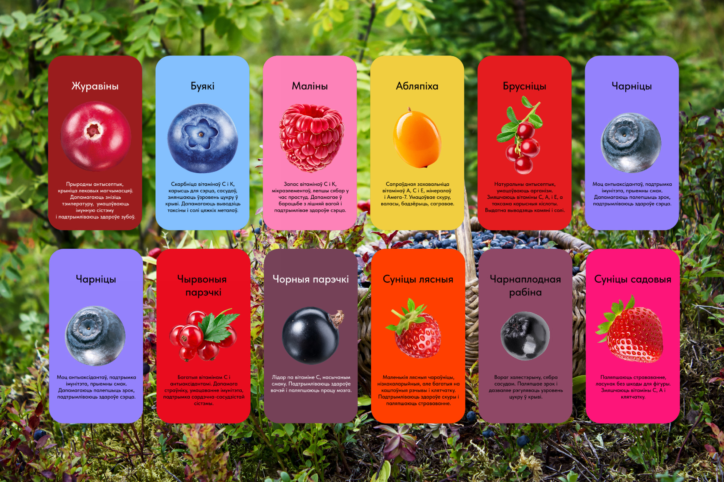 • Знайсці візуальную і вербальную форму, што адлюстроўвае каштоўнасць ягад як сапраўднага беларускага суперфуду.
