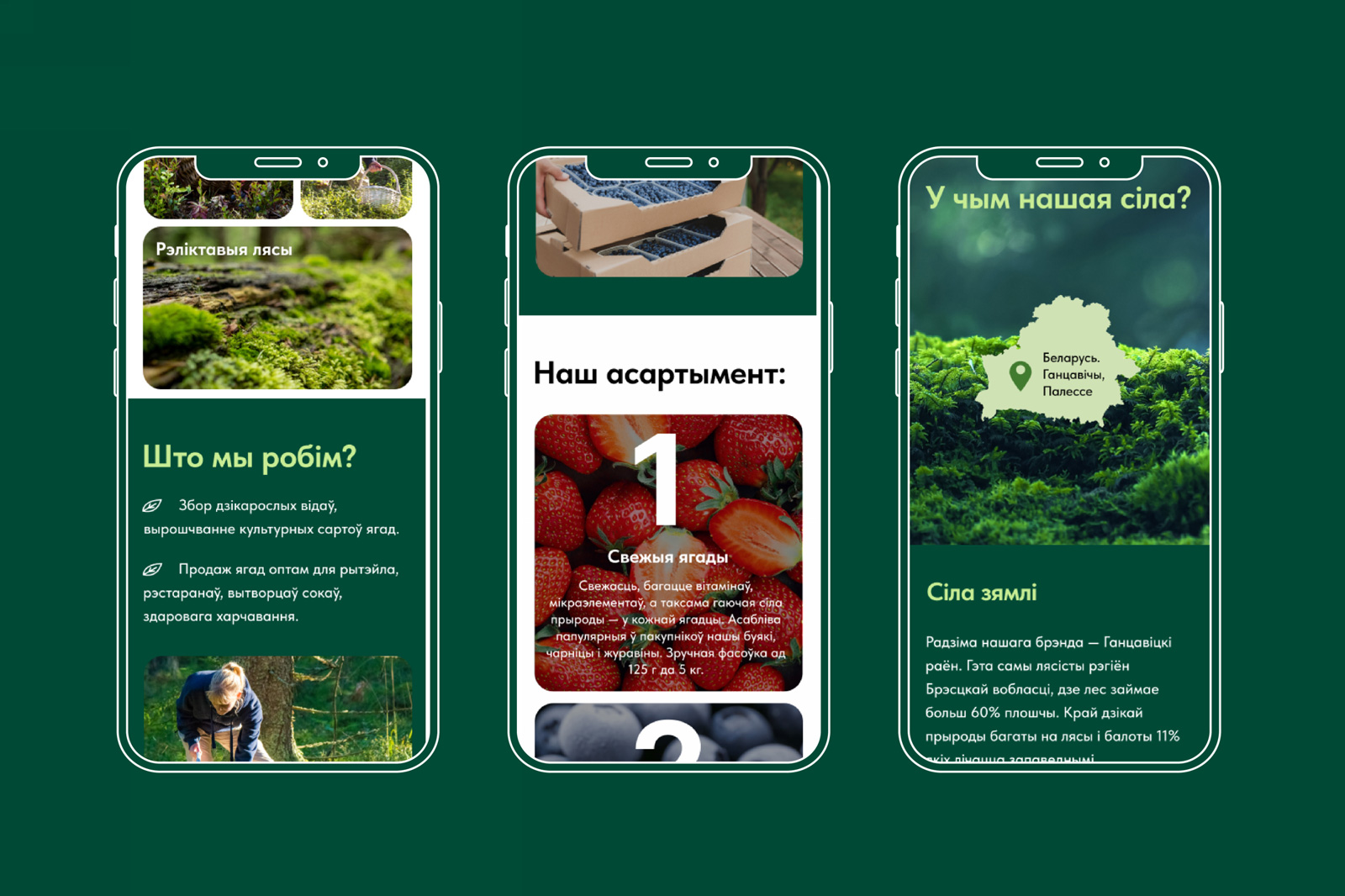 Калі ў Fabula Branding звярнуўся лакальны вытворца з горада Ганцавічы, ён ужо меў паспяховы досвед аптовых продажаў ягад. Але наперадзе чакала новая мэта — запусціць рознічныя продажы і выйсці на прамую сувязь з пакупніком праз сайт. Патрэбна было стварыць паўнавартасны брэнд і візуальную сістэму, якая падкрэслівала б натуральнасць прадукту і яго беларускія карані.