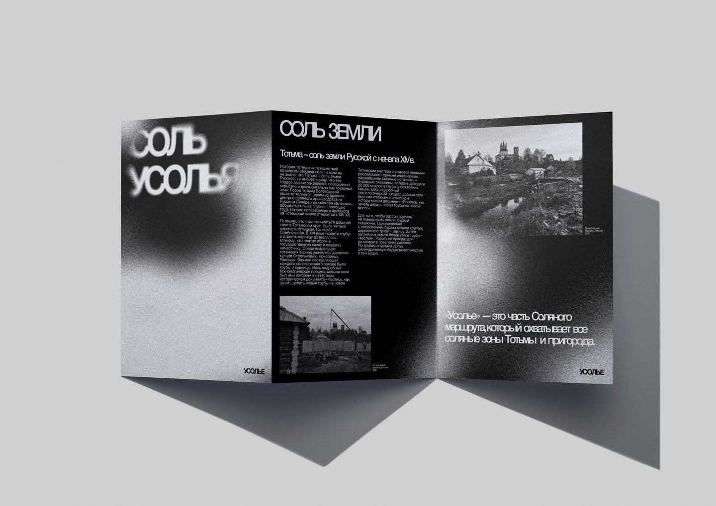 Основой визуальной коммуникации стал процесс вываривания соли. Следы соли, остающиеся после вываривания, собираются в образы, характерные для Русского Севера, отражая богатство региона, в котором добывалась соль.