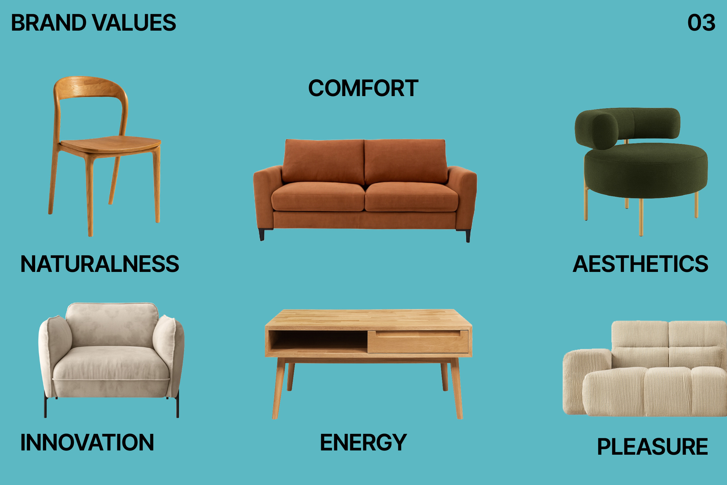 Работа началась с комплексного анализа: команда Fabula Branding изучила рынок мебели, ключевые тренды категории, поведение конкурентов и ожидания аудитории. Также был проведен внутренний аудит: эксперты выяснили, как бренд воспринимают его клиенты и сотрудники, и где есть зоны роста.