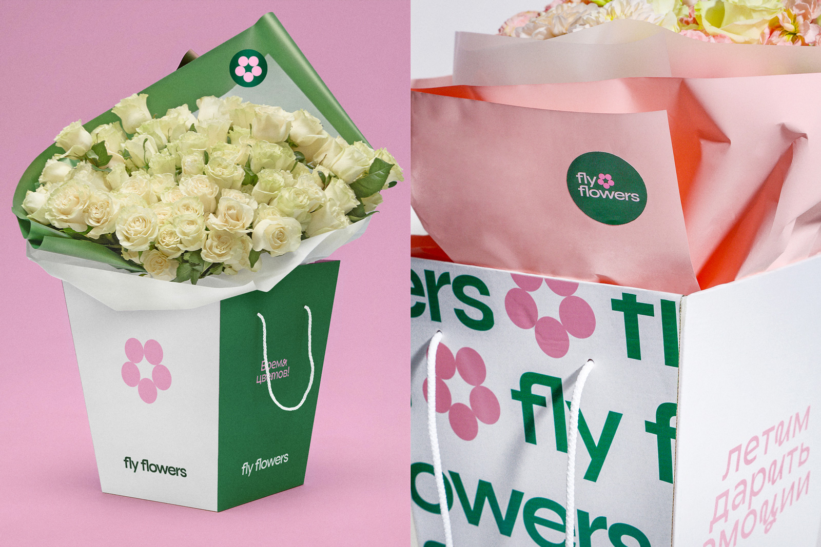 Визуальная система Fly Flowers отражает легкость, динамику и весеннюю энергию.