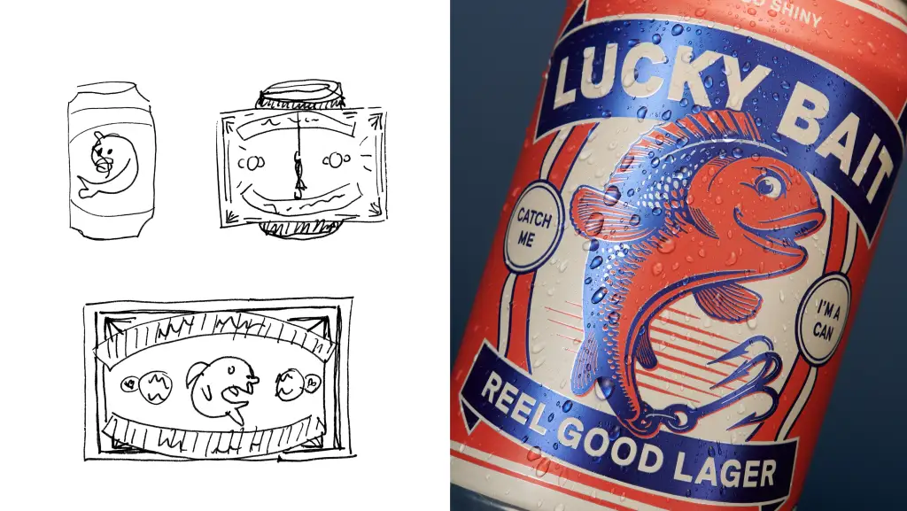 В условиях шведского рынка, где реклама алкоголя строго ограничена, дизайн стал ключевым инструментом конкуренции. Агентство сделало ставку на сильный визуальный якорь — персонажа-талисмана в виде рыбы. Маскот отсылает к классическим иллюстрациям на старых приманках, которые обещали удачу и запоминались характером. В контексте Lucky Bait он работает как масштабируемый бренд-актив, мгновенно считываемый на полке и легко адаптируемый к разным носителям.