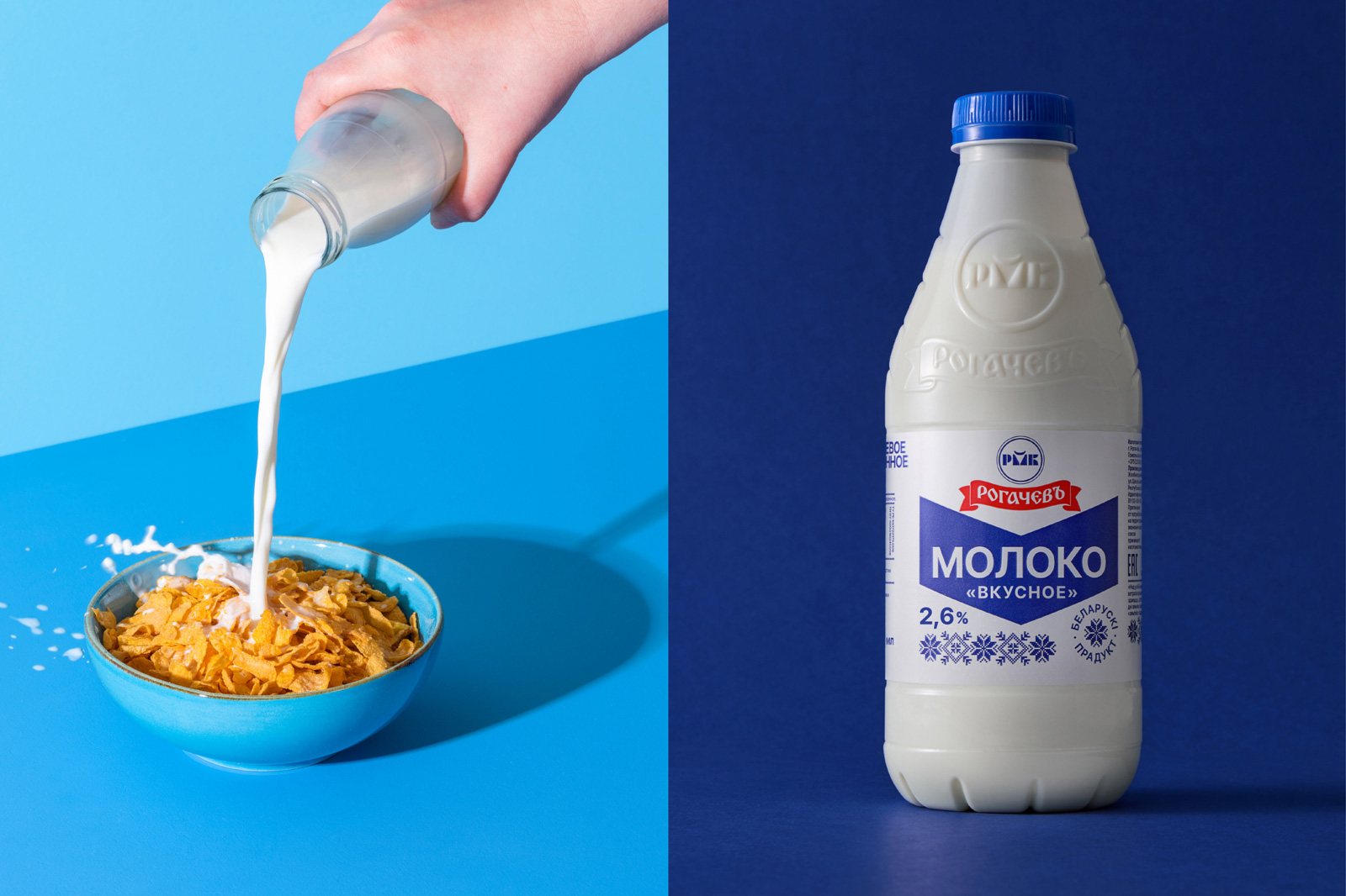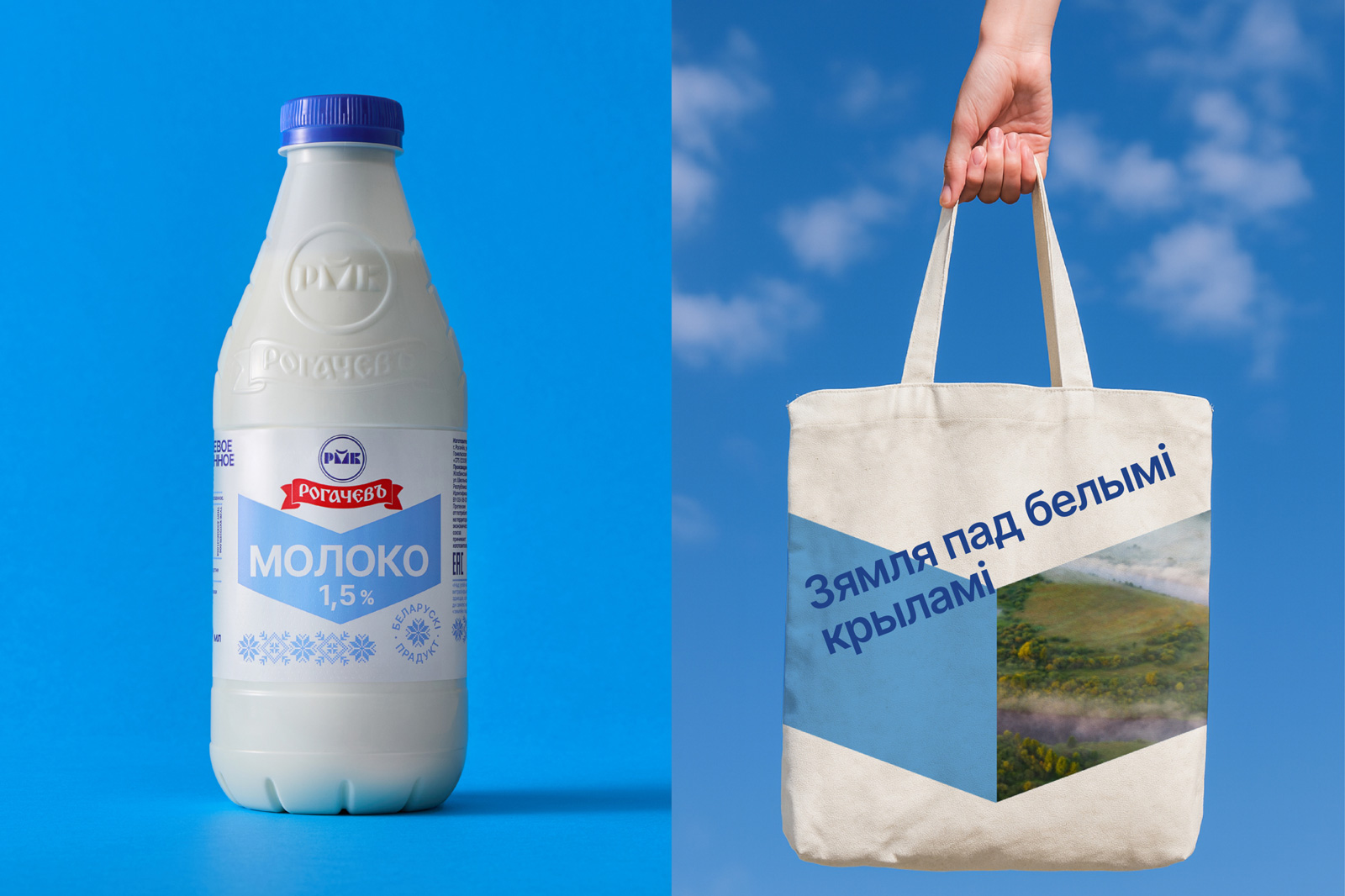Так родилось позиционирование «Зямля пад белымі крыламі» — прямая отсылка к одноименному произведению Владимира Короткевича, чья семья была связана с Рогачевом. Это решение позволило создать мощную смысловую связку: родная земля — молоко — жизнь.