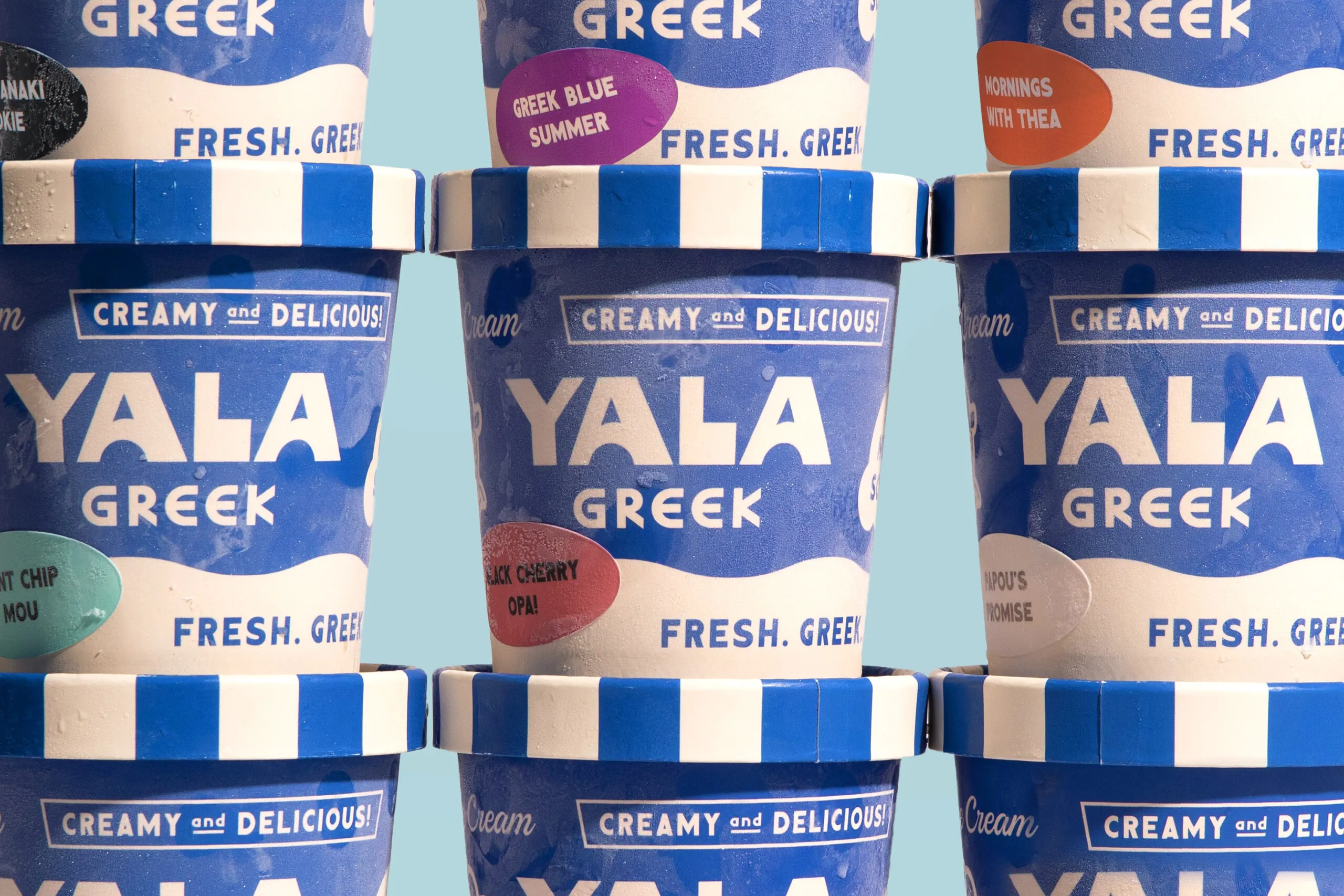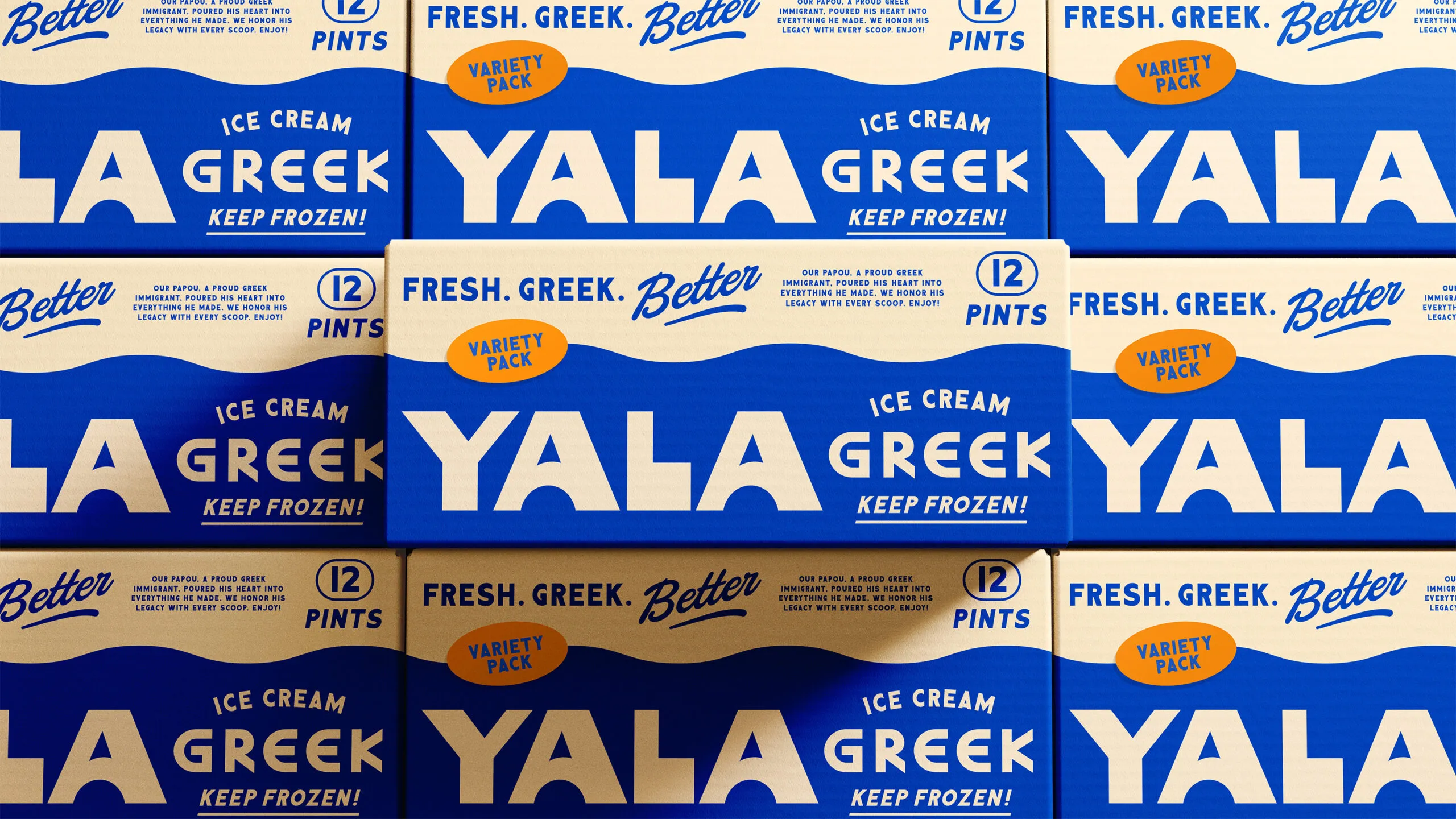 Дизайн упаковки Yala, созданный студией Herefor, доказывает, что мороженое может уверенно выделяться в морозильной зоне, не прибегая к визуальным клише. Вместо прямых отсылок к греческой символике система построена на ясности, сдержанности и сильных графических принципах, которые считываются мгновенно даже сквозь матовое стекло.