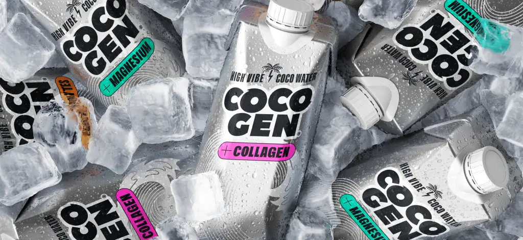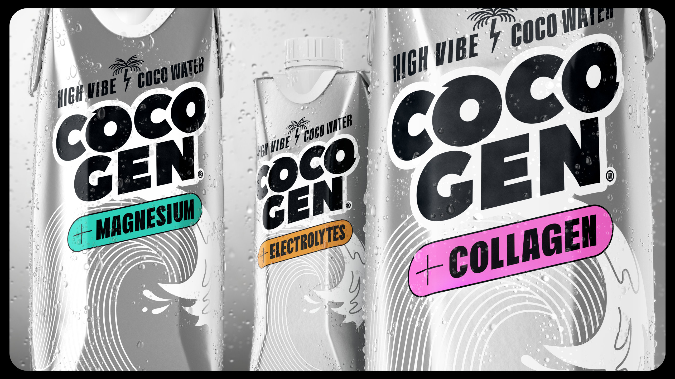 Визуальный язык бренда выстроен вокруг ощущения яркого, «bling-bling» освежения — с лёгким диско-сафари настроением. Логотип получил округлую, приподнятую энергетику, напрямую отсылающую к форме кокоса. В нём достаточно стилистической выразительности, чтобы считываться молодёжно и свежо — ровно так, как должно ощущаться употребление напитка.