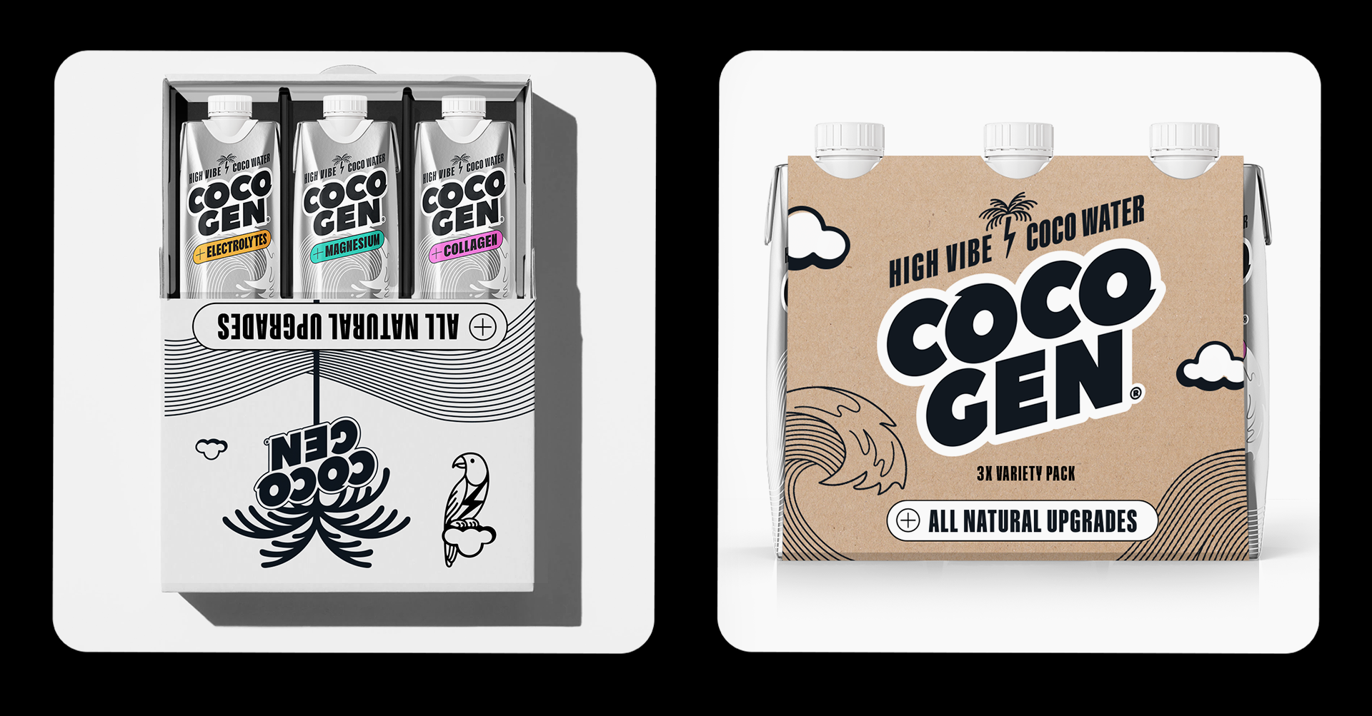 Маскот бренда — попугай по имени Коко, который любит висеть вниз головой на кокосовых пальмах, — добавляет характер и игривость. Центральный графический символ, «электро-кокосовая пальма», подчёркивает функциональные свойства каждого SKU и помогает визуально дифференцировать линейку.