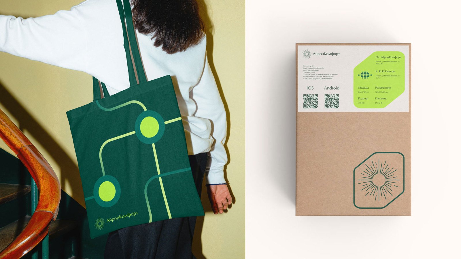 Ключевой особенностью айдентики стала её модульность: графические формы могут образовывать соединения и комбинироваться между собой, выстраиваясь в стилизованные внутренние схемы. Этот же принцип был масштабирован и на другие направления работы Айронкомфорт. Сферы обслуживания парковок, элементы санитарного содержания, домофония и служба клиентской поддержки получили собственные уникальные маркеры.
