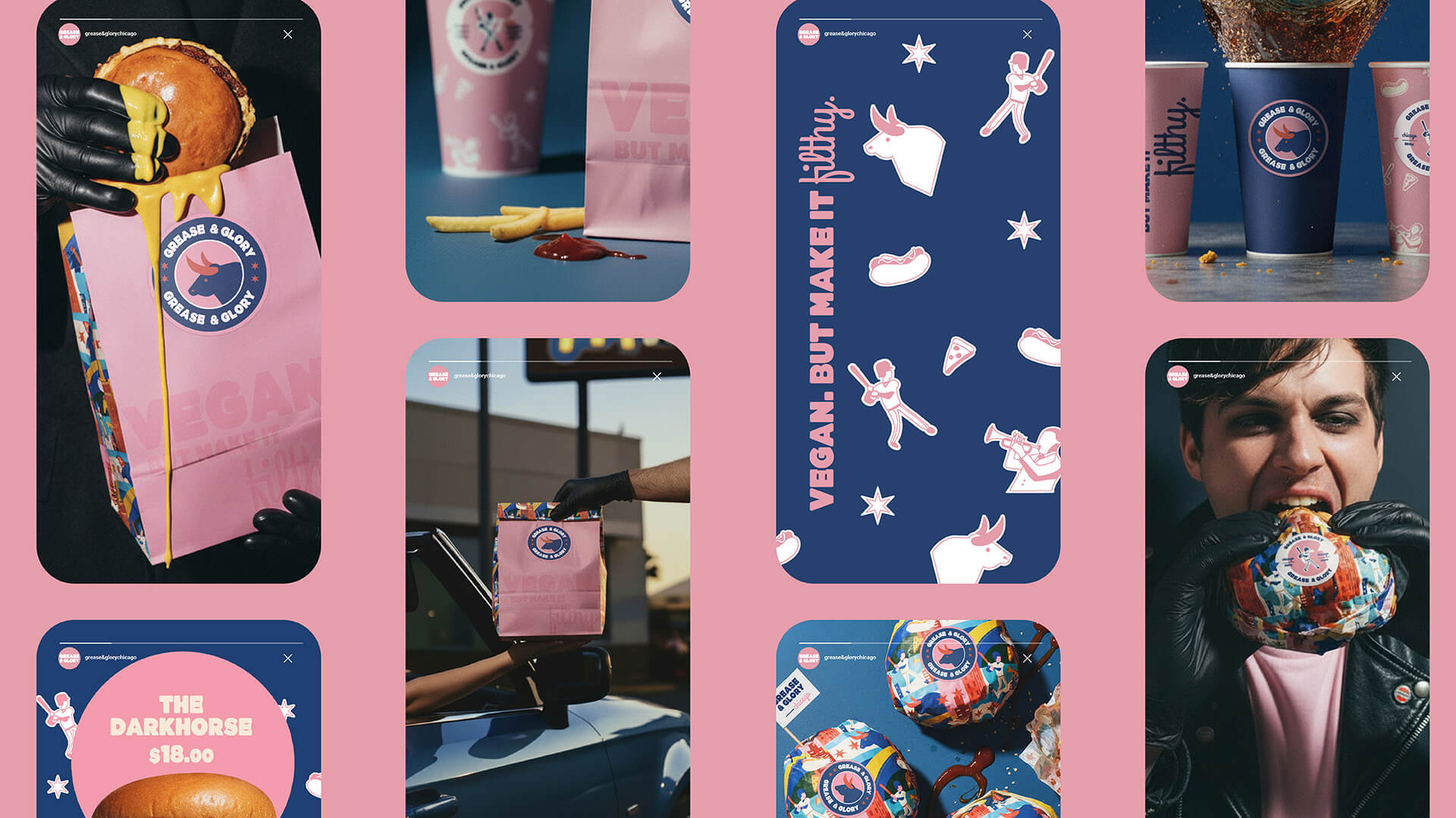 Проект строится на идее нонконформизма. Бунтарская образность сочетается с прямолинейными, дерзкими сообщениями, которые не стремятся понравиться всем. Напротив, коммуникация адресована нишевой, но влиятельной группе — искателям вкусовых крайностей, открытым к экспериментам и визуальному шуму. Grease and Glory не смягчает углы и не оправдывается: бренд с удовольствием подчёркивает избыточность, удовольствие и «греховность» фастфуда, оставаясь при этом полностью веганским.