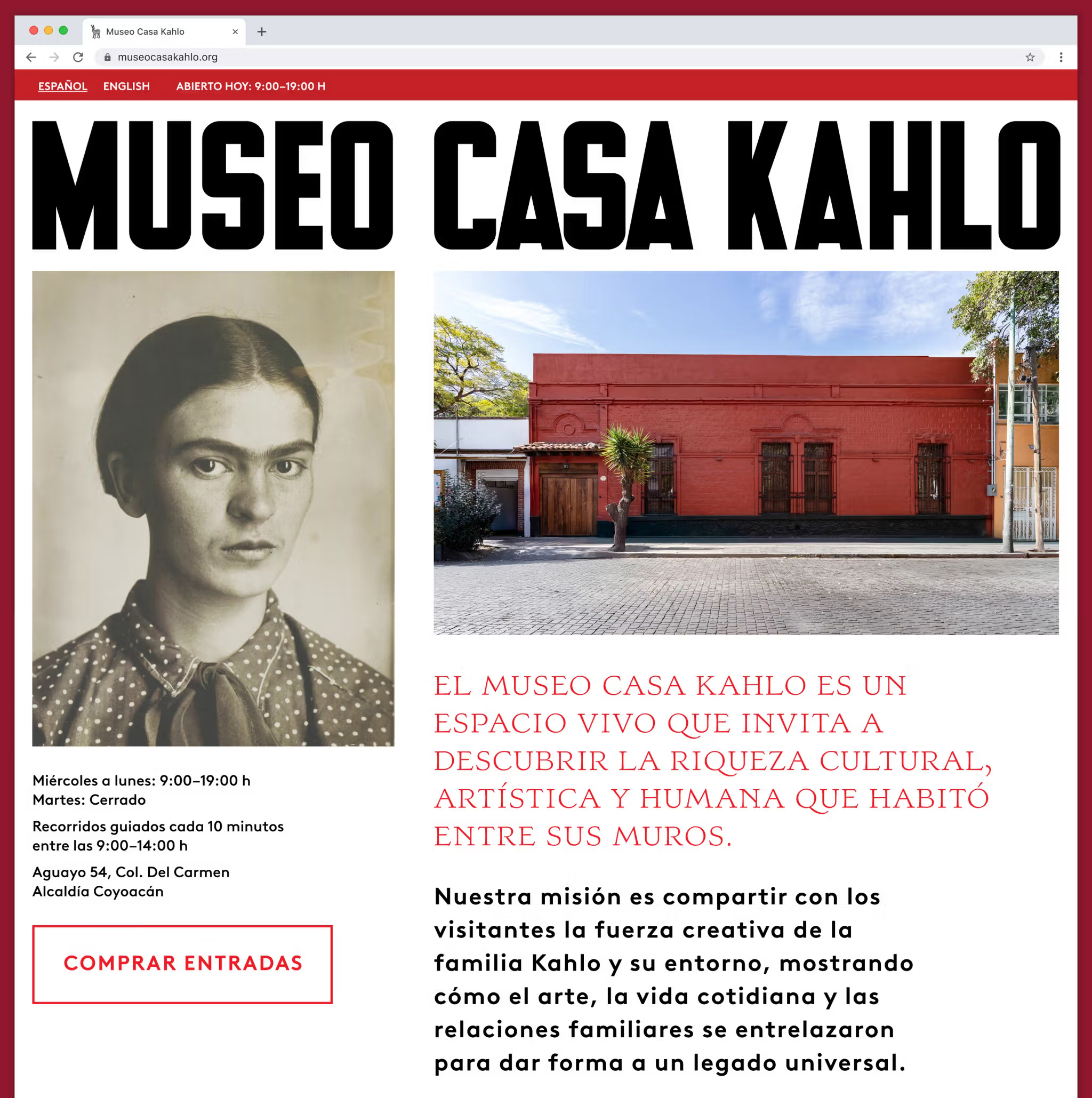 Новый Museo Casa Kahlo в Casa Roja — доме родителей Фриды Кало — смещает фокус с мифа на происхождение. Айдентику, навигацию и экспозиционную графику разработало Pentagram, выстроив систему, основанную на спектре красных оттенков и типографике, вдохновленной рукописным леттерингом художницы (в сотрудничестве с Коннором Дэвенпортом).