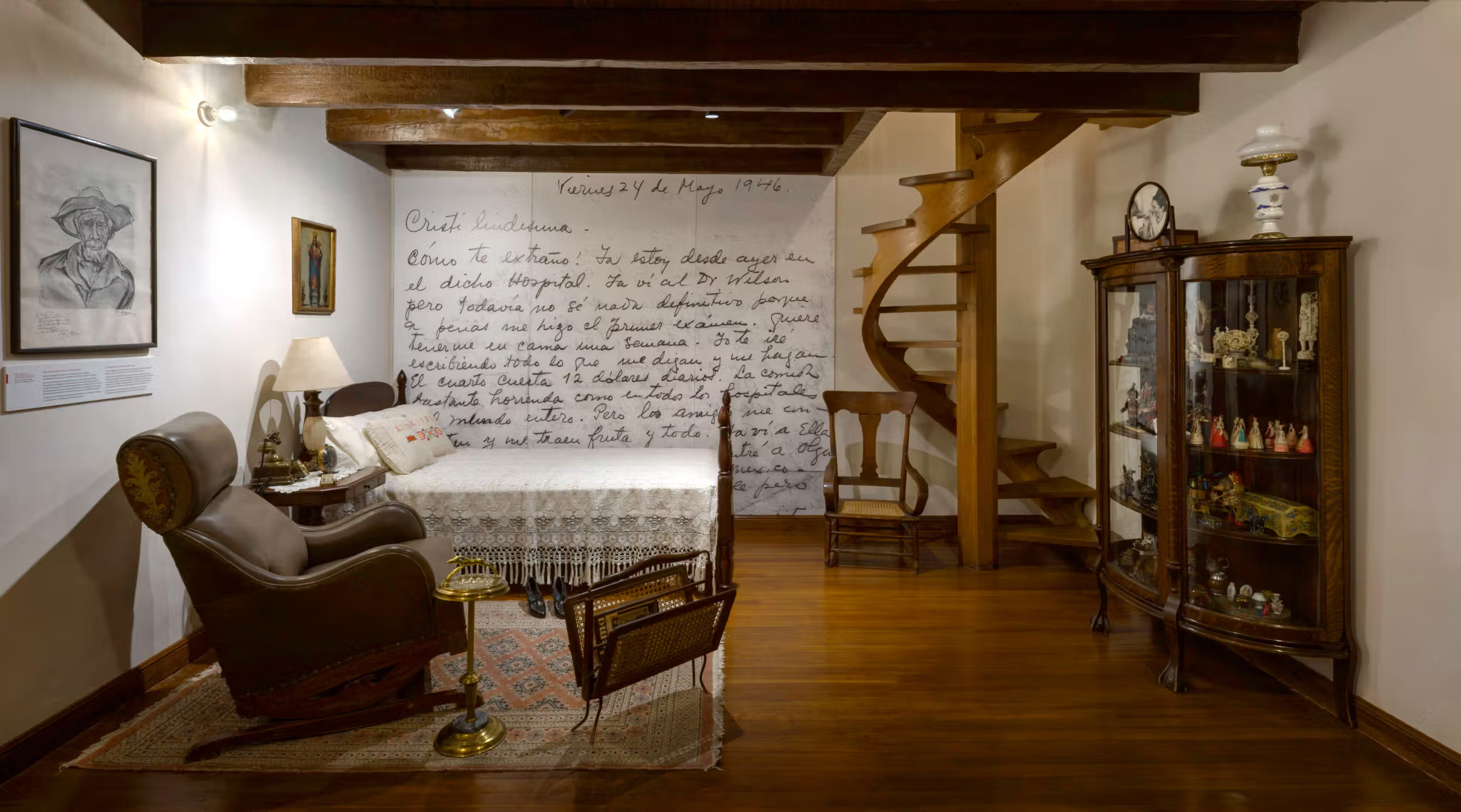 Графика интегрирована в интерьеры деликатно: цитаты вышиты на шторах, визуальные элементы встроены в пространство, не нарушая аутентичность дома, где сохранились подлинные предметы семьи. Айдентика избегает фольклорной романтизации, предлагая точный, исследовательский взгляд на среду, сформировавшую Кало.