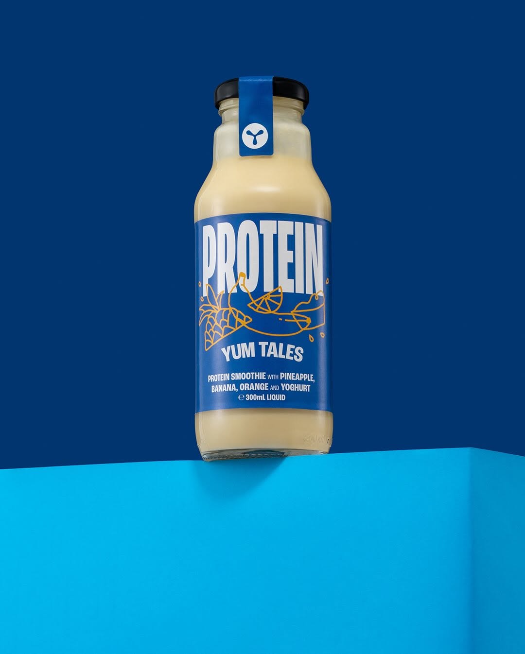 Стеклянная бутылка и лаконичная композиция подчеркивают честность и функциональность. PROTEIN от Yum Tales — пример того, как сдержанный дизайн может транслировать силу без визуального давления.